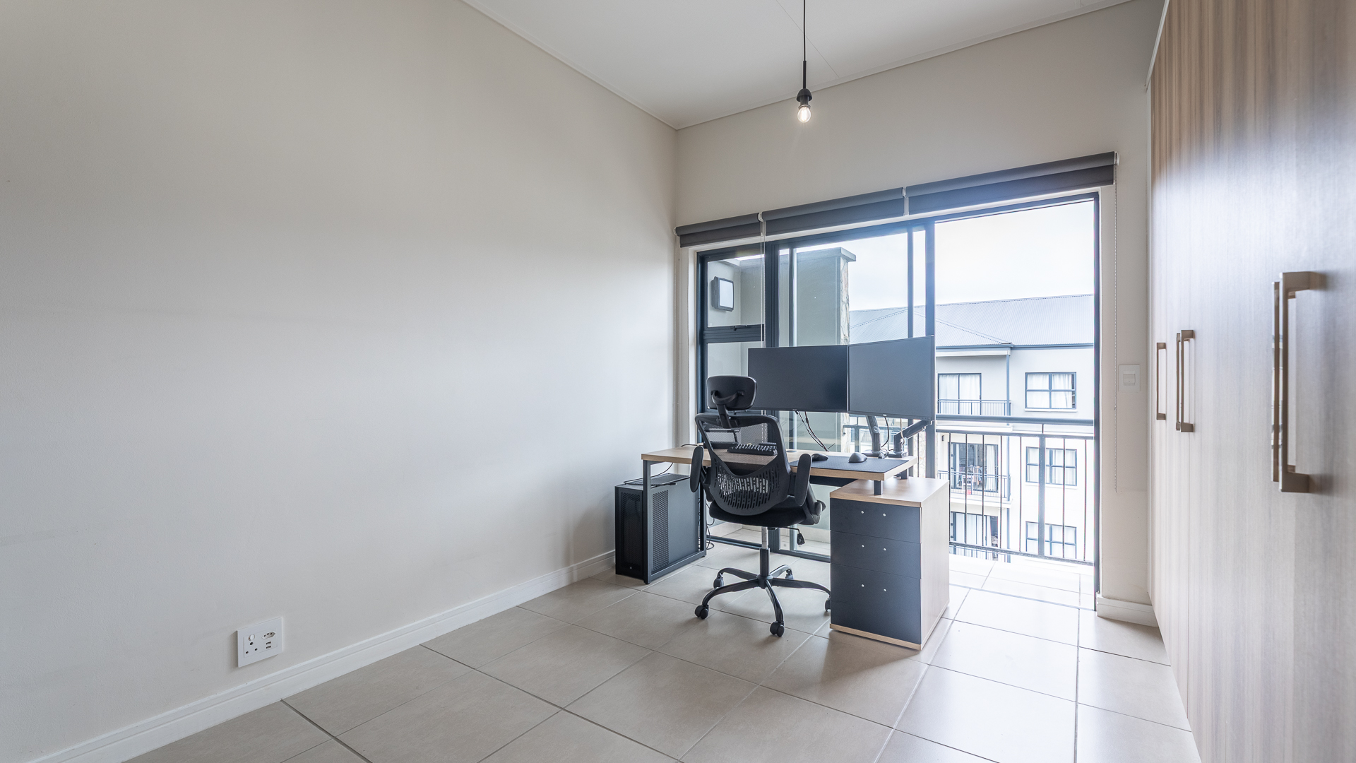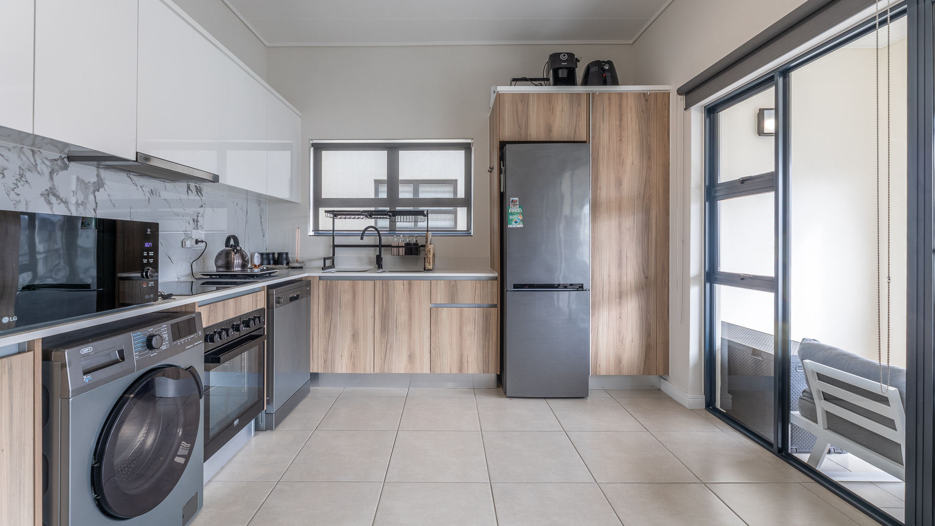 This stylish 2-bedroom, 2-bathroom penthouse in the highly sought-after Fynbos Estate offers the perfect balance of modern design and secure living. The open-plan layout features a fully fitted kitchen with a washing machine, dishwasher, and fridge included in the sale, seamlessly flowing into a bright lounge. Sliding doors open onto your private enclosed balcony with a built-in braai, ideal for entertaining.
