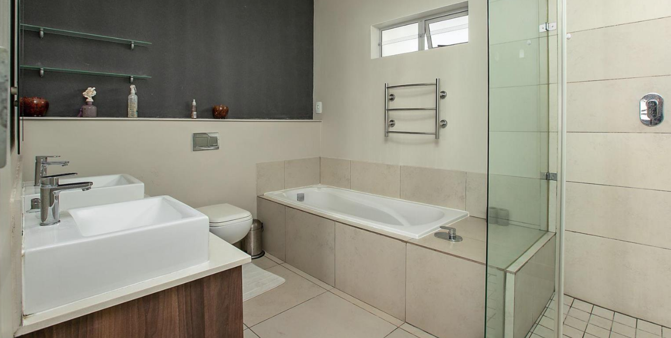 The generously sized bedrooms are equal in size and have ample cupboard space. Each bedroom features an en-suite bathroom equipped with double basins, a shower, a bath, and a toilet. Not often does one find this!