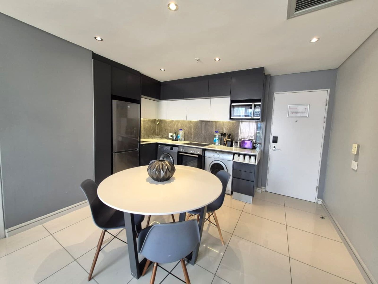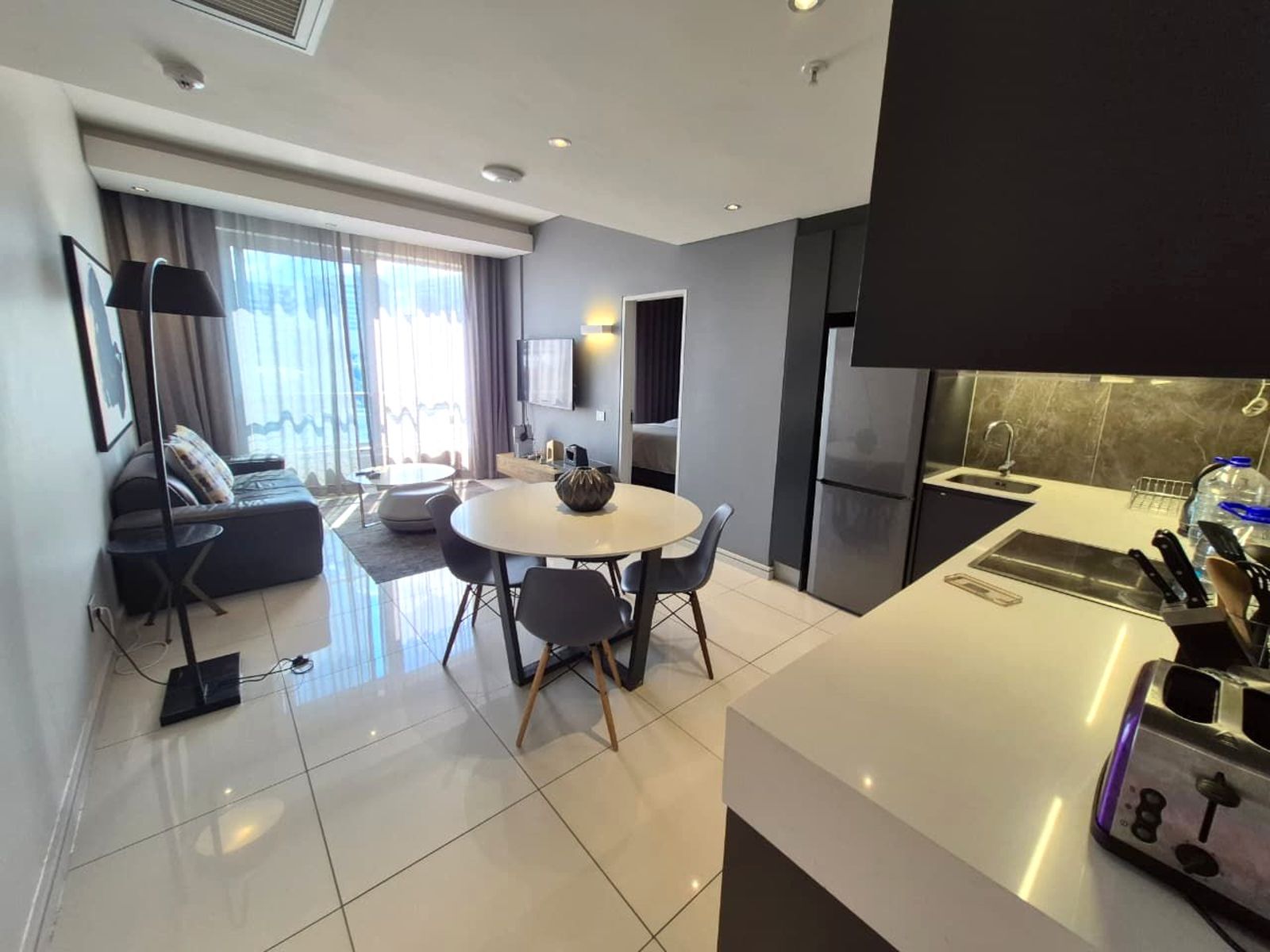 The apartment features a spacious open-plan layout with a modern lounge and dining area, tastefully furnished with high-quality finishes throughout. The fully equipped kitchen includes premium appliances, ample cupboard space, and everything required for effortless day-to-day living. The generously sized bedroom is elegantly furnished and complemented by a sleek, contemporary bathroom, creating a calm and private retreat.