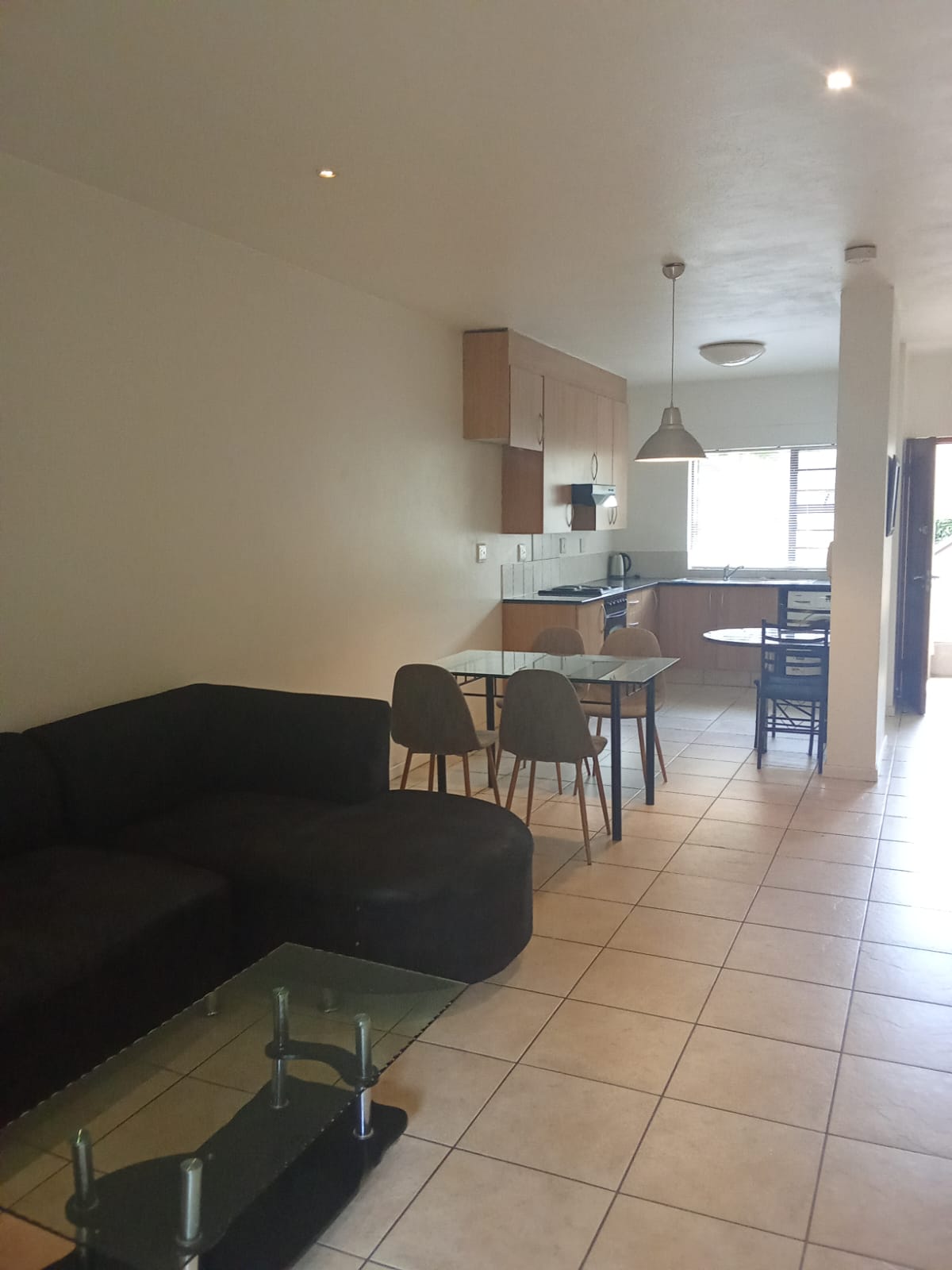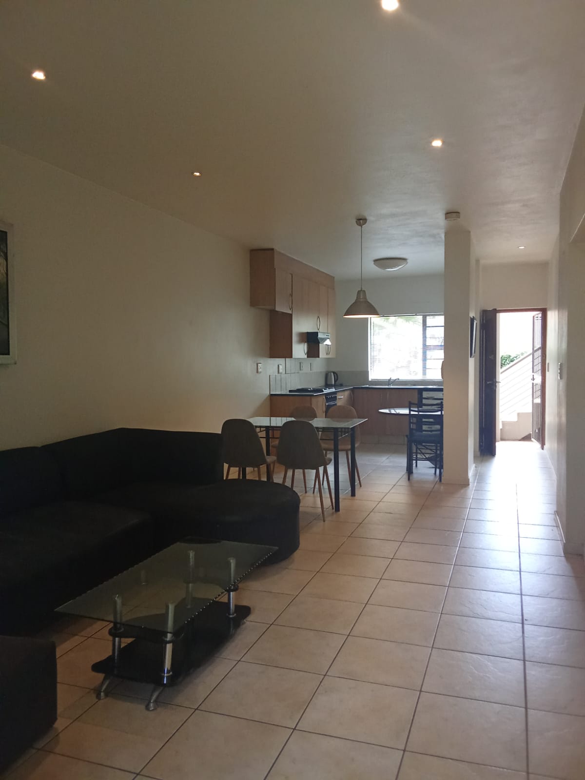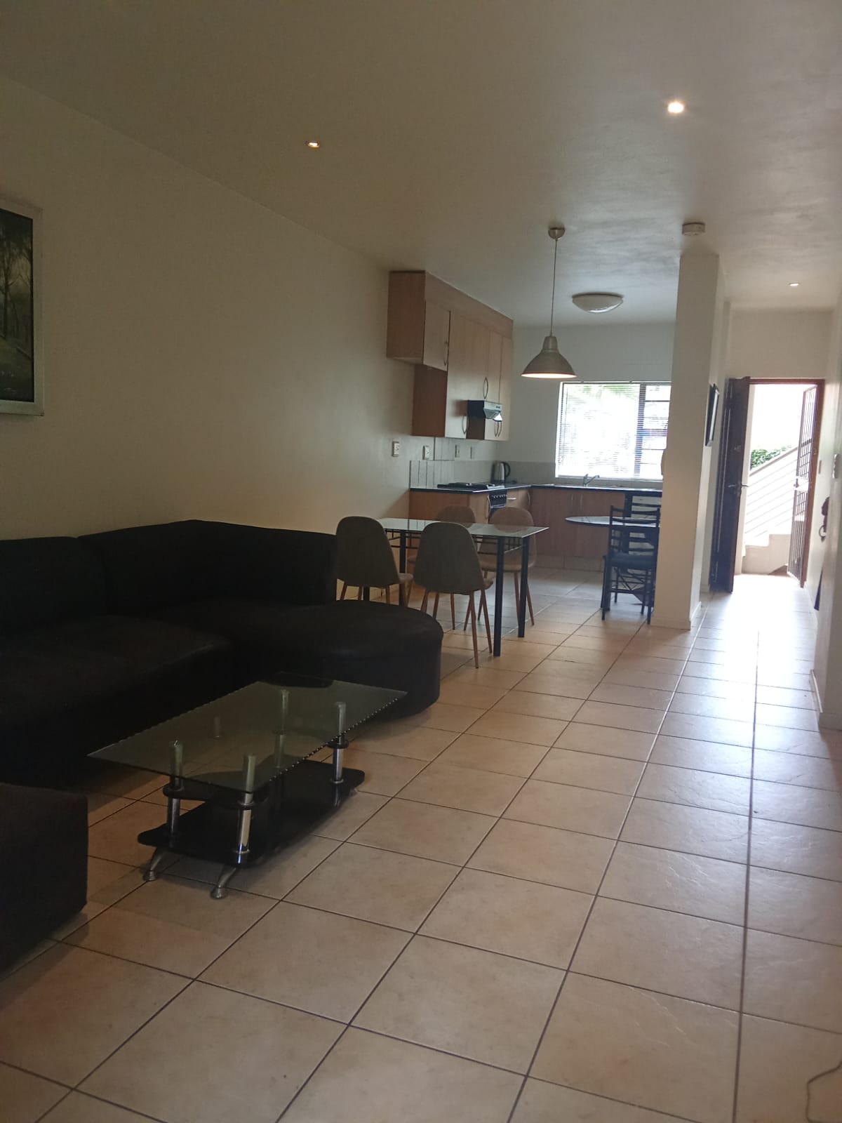 The apartment is set in a quiet street, offering privacy while remaining central. Open-plan living area leads out to a private garden with a built-in braai, ideal for low-maintenance outdoor living.