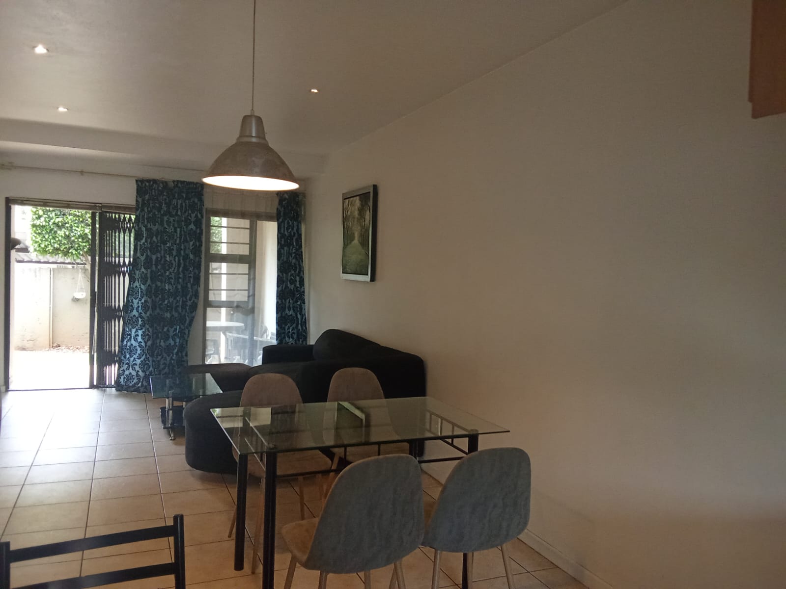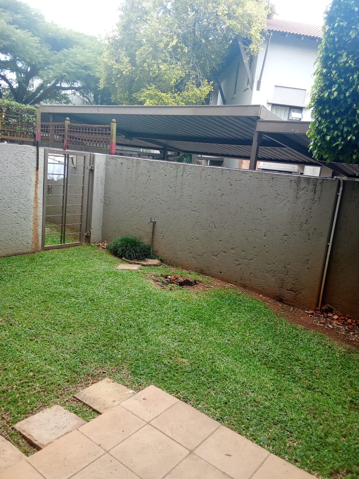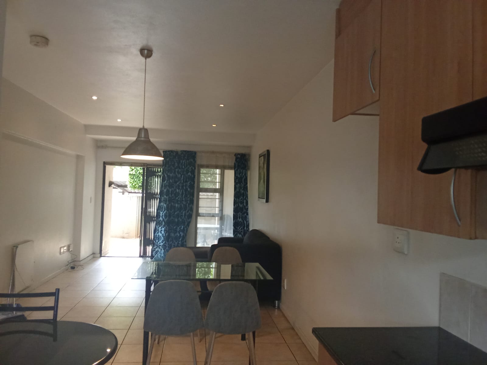 The apartment is set in a quiet street, offering privacy while remaining central. Open-plan living area leads out to a private garden with a built-in braai, ideal for low-maintenance outdoor living.