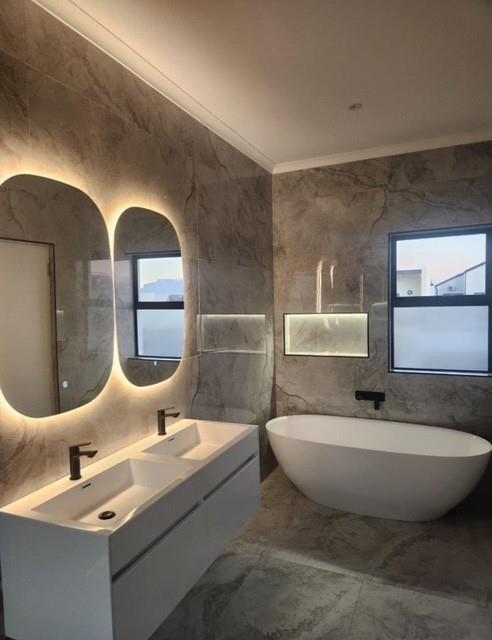 This breathtaking double-story home features four spacious bedrooms, three elegant bathrooms, and a cozy PJ lounge, offering ample space for relaxation and entertainment. Designed for modern living, the home also includes a stylish indoor braai area and a covered patio, perfect for hosting gatherings with family and friends.