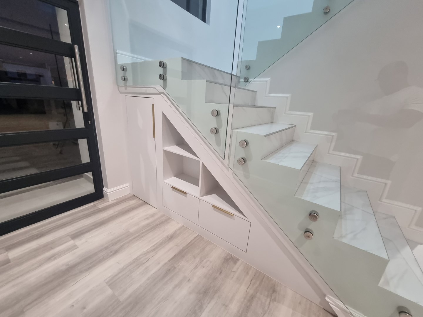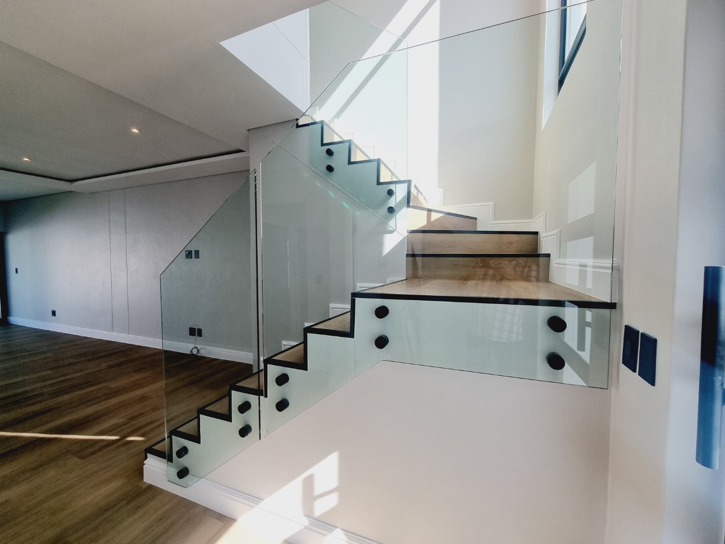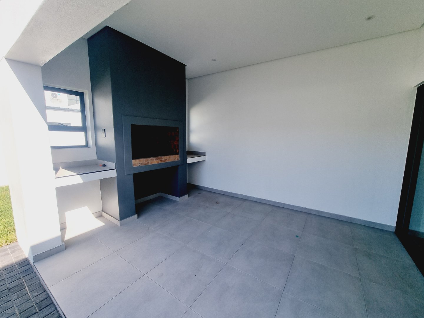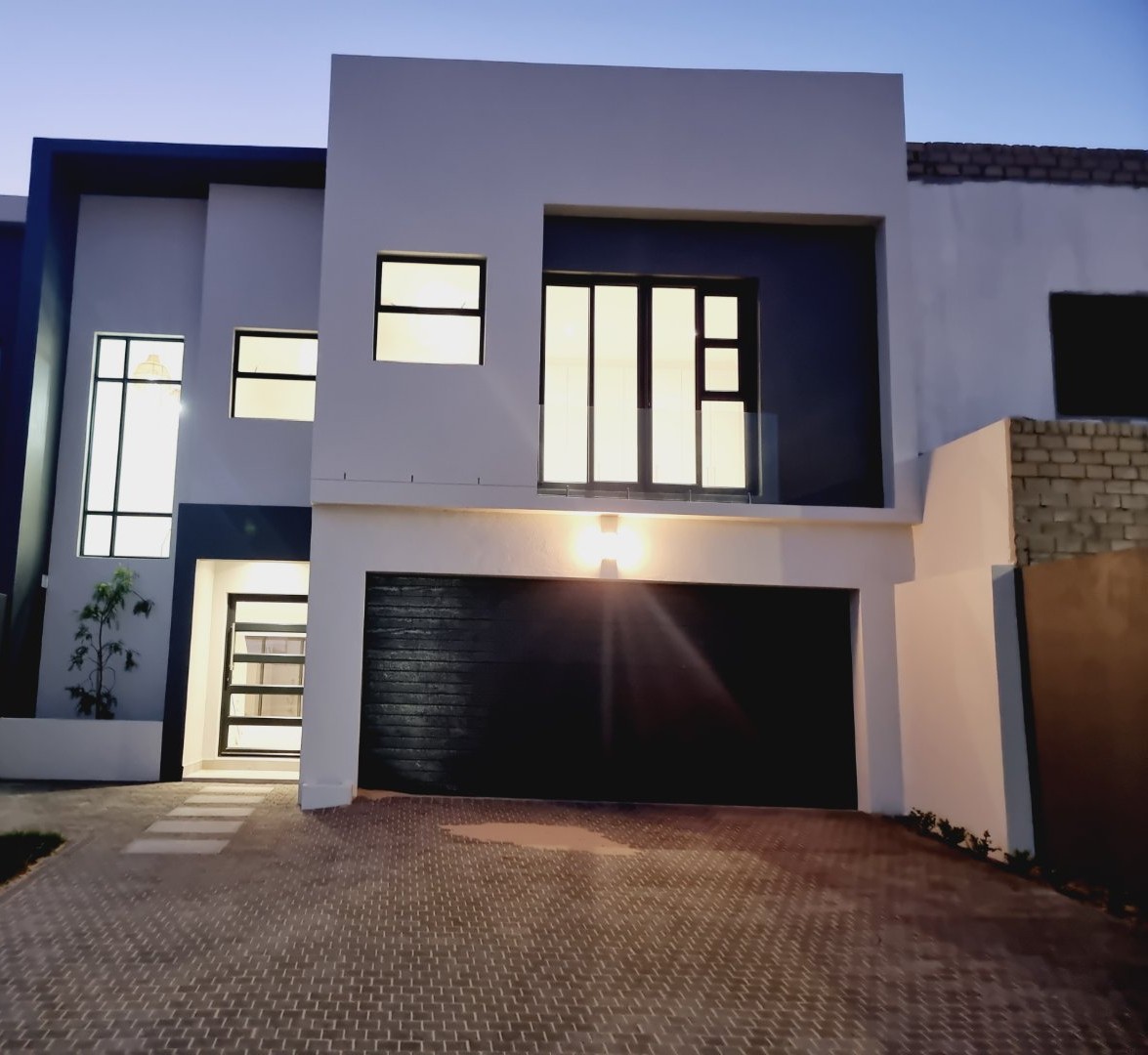 The ground floor features a welcoming foyer, a guest loo, and one of the four bedrooms with its own private bathroom, offering flexibility for guests or family members. Open-plan living and dining areas flow effortlessly into a modern kitchen with centre island, scullery, pantry, and convenient outdoor drying yard. Step outside to a covered patio with built-in braai – ideal for entertaining or relaxing in the large yard.