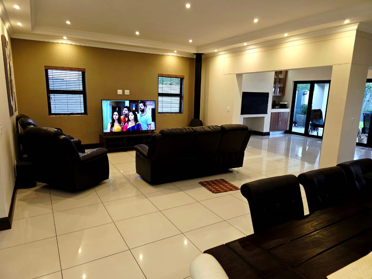 Step inside and be instantly swept up by the natural flow, soaring ceilings, and radiant white tiled flooring that gives the home its grand, light-filled ambiance. The open-plan living and dining spaces are designed for effortless entertaining, while a stunning indoor braai room with its own built-in bar invites next-level get-togethers — rain or shine.