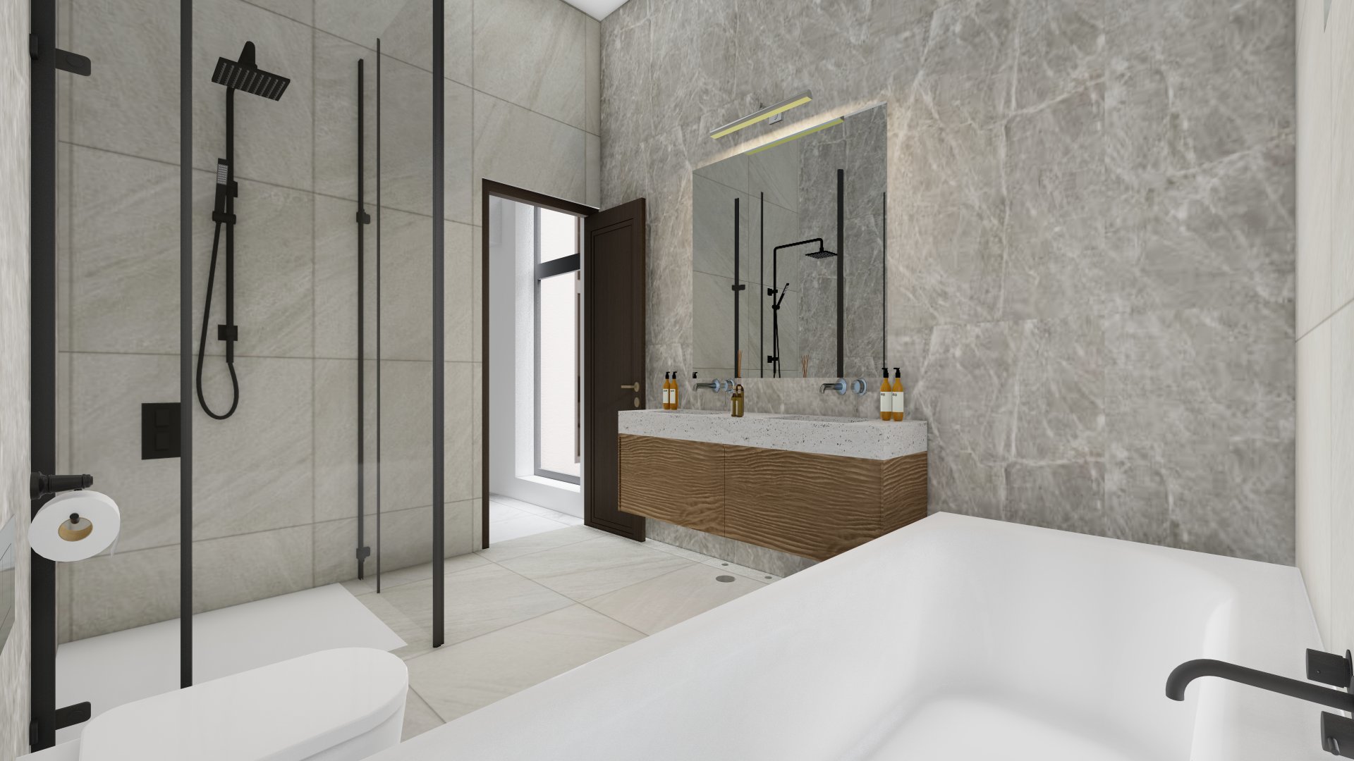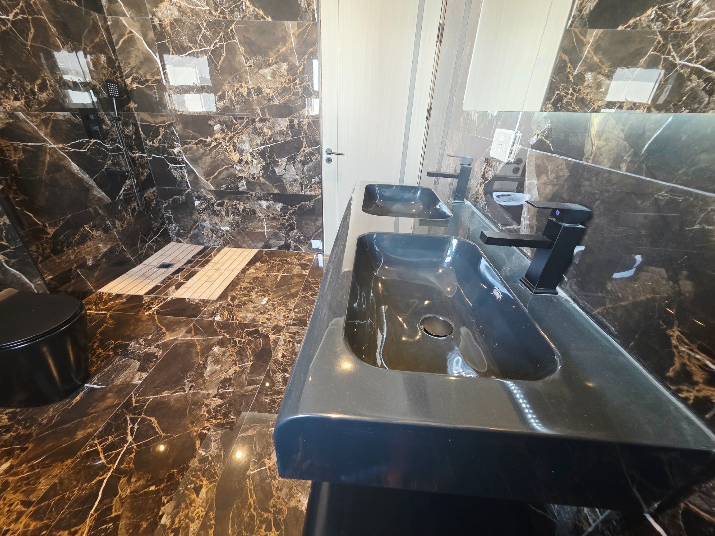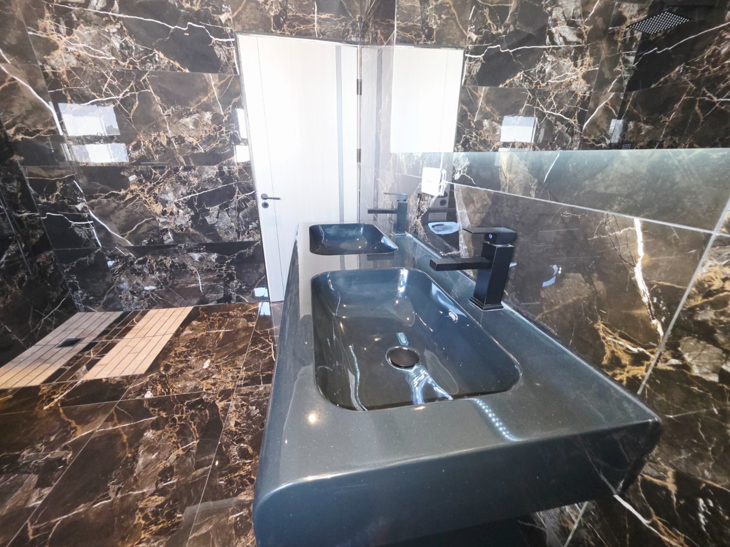 Anti-fog LED mirrors in the imported bathrooms for a sleek, modern finish