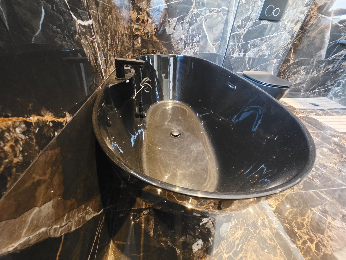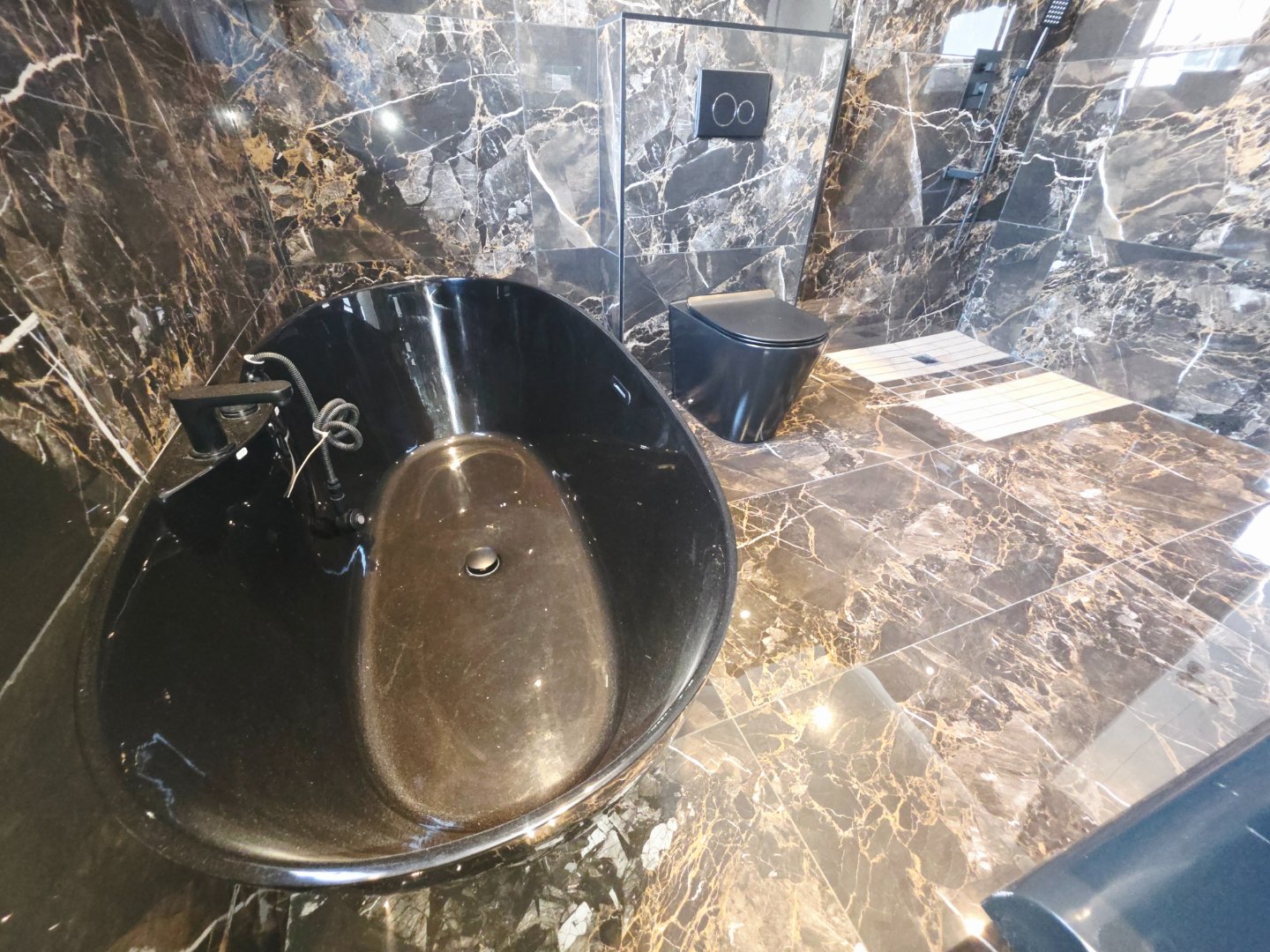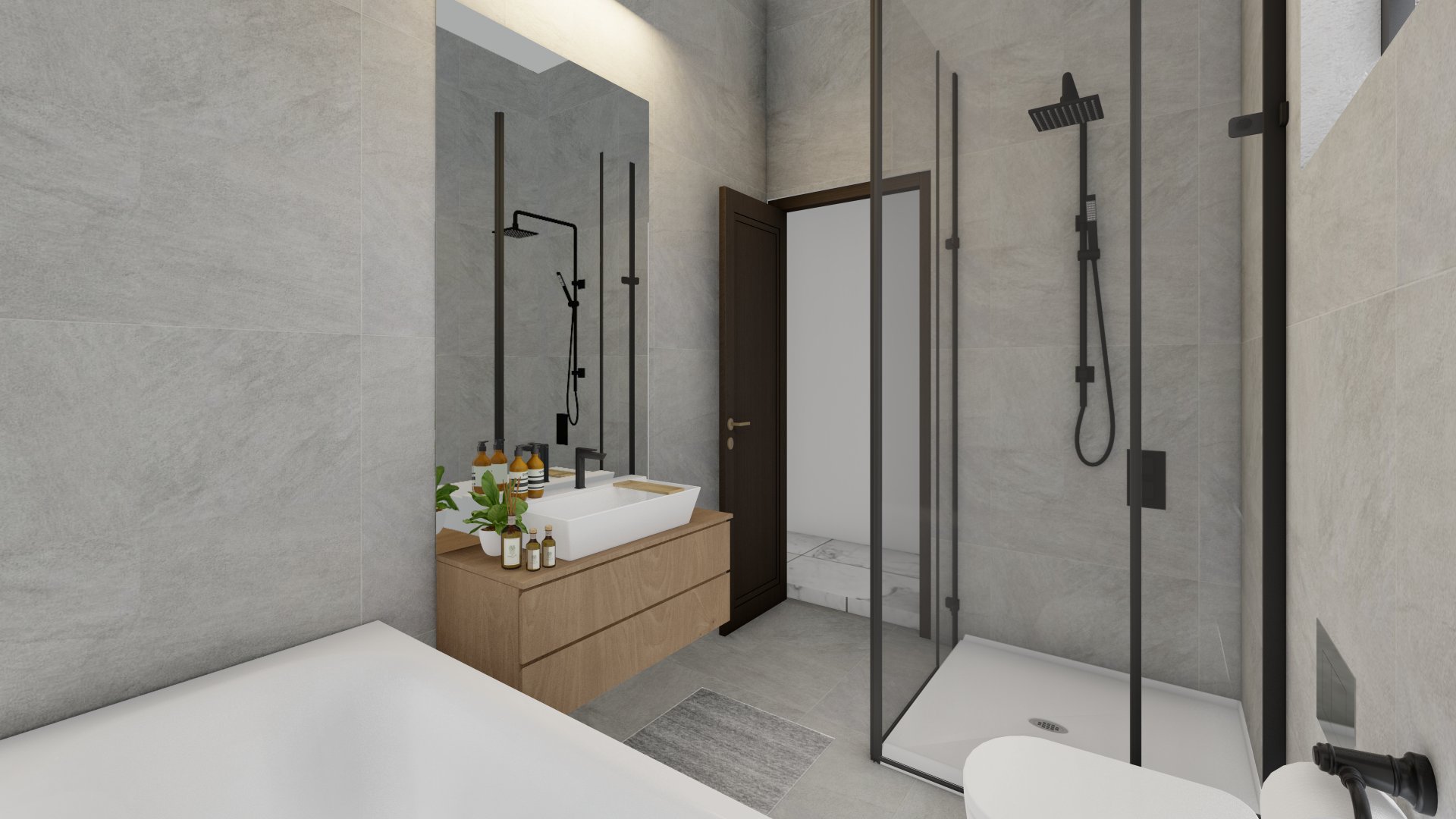 Anti-fog LED mirrors in the imported bathrooms for a sleek, modern finish