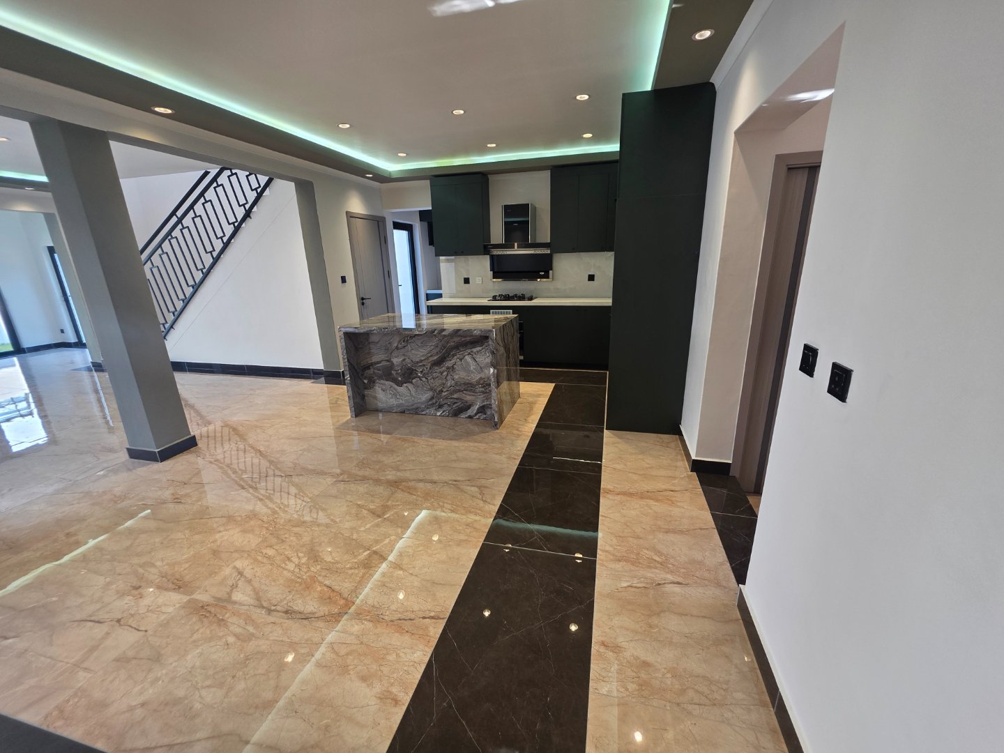 Step inside to find an expansive open-plan layout where the large kitchen takes center stage. Thoughtfully appointed with imported finishes, it boasts a generous centre island, a separate scullery, and a pantry cupboard — ideal for keeping everything organized and accessible. The imported kitchen appliances seamlessly combine functionality and elegance, ensuring every culinary adventure is a pleasure.