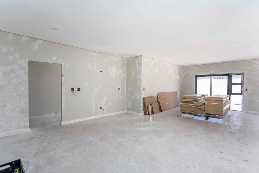 The home features four generously sized bedrooms and four stylish bathrooms, all finished with sleek, modern fittings. The open-plan lounge, kitchen, and dining area forms the heart of the home, designed for both comfortable family living and effortless entertaining. This expansive space includes a built-in braai, creating a seamless indoor entertainment area ideal for year-round enjoyment.