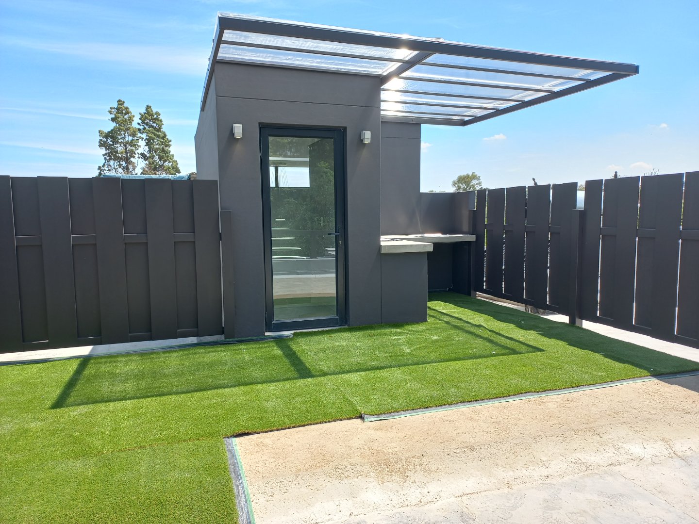 Dining area flowing onto a covered entertainer’s terrace with gas braai