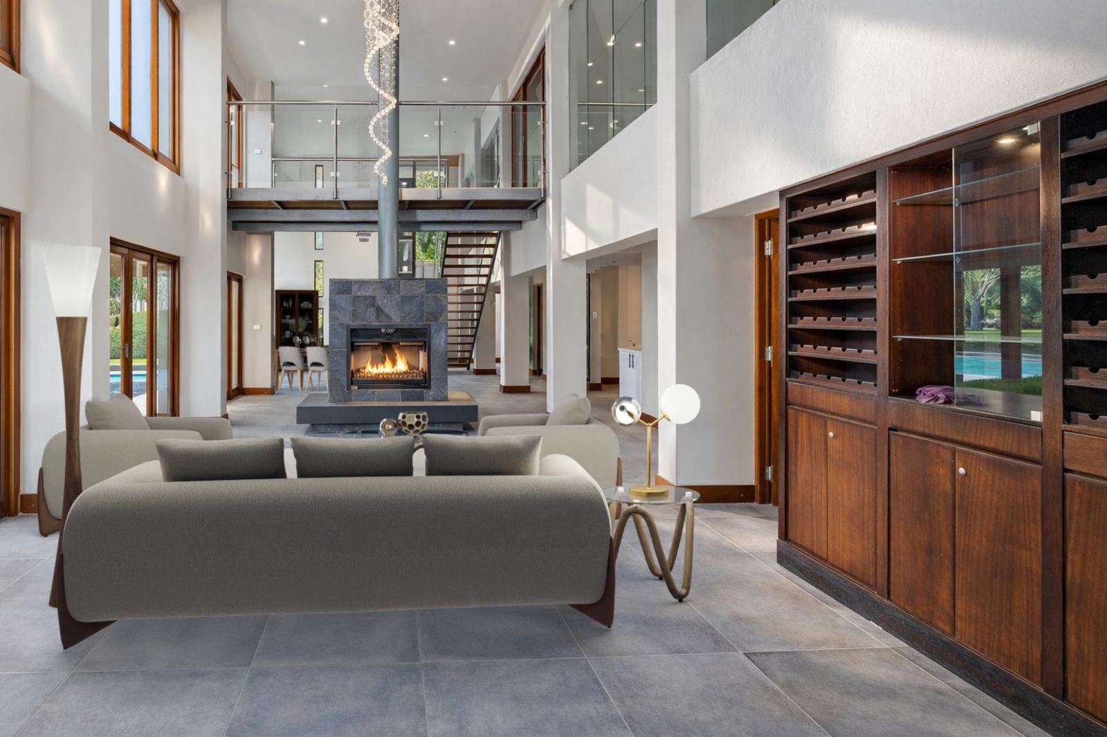Two spacious lounges, a formal dining room, a private office and a dedicated entertainment area create versatile spaces for everyday living and hosting. The covered patio extends the living areas outdoors and overlooks a swimming pool, making it the perfect setting for year-round entertaining.