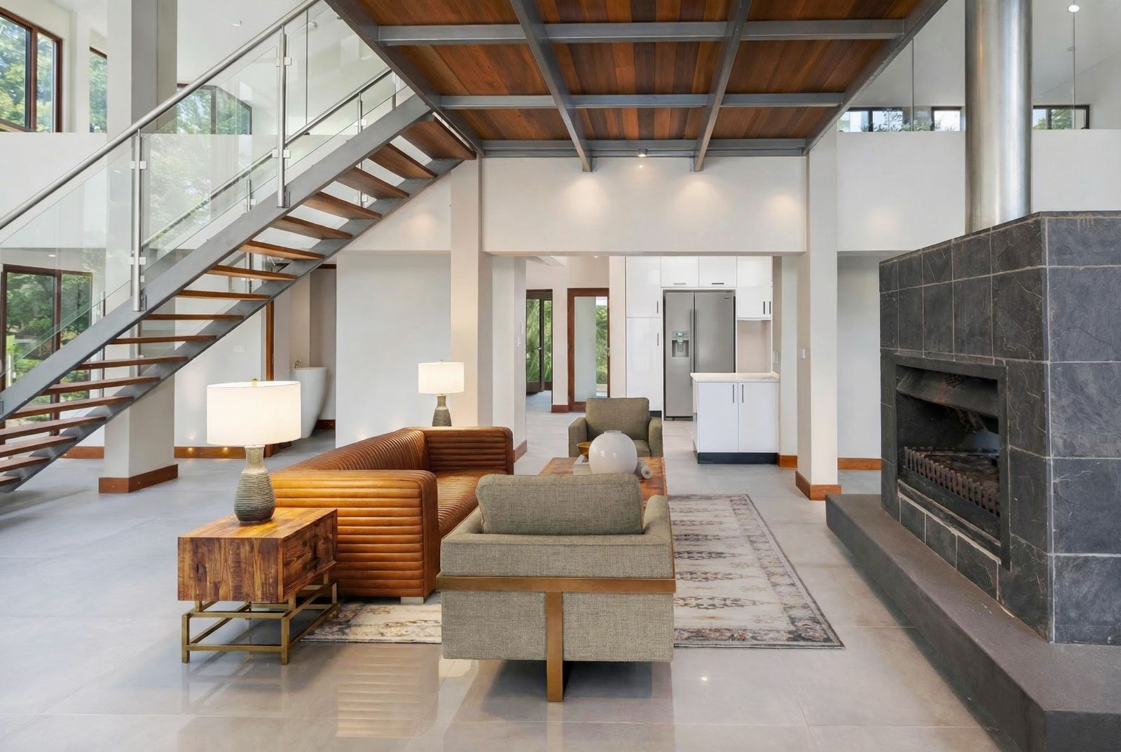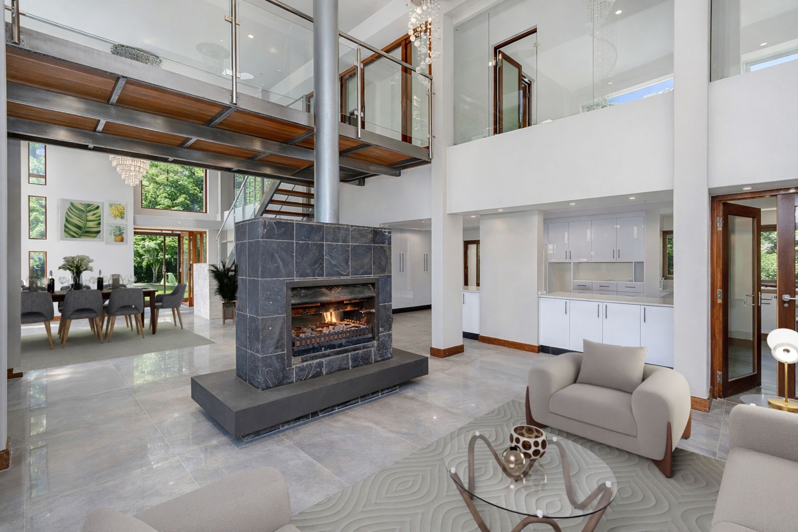 The home features four generously sized bedrooms and three-and-a-half bathrooms, providing ample space and privacy for the whole family. Multiple living areas are well defined yet flow effortlessly, anchored by a welcoming fireplace that adds warmth and character.