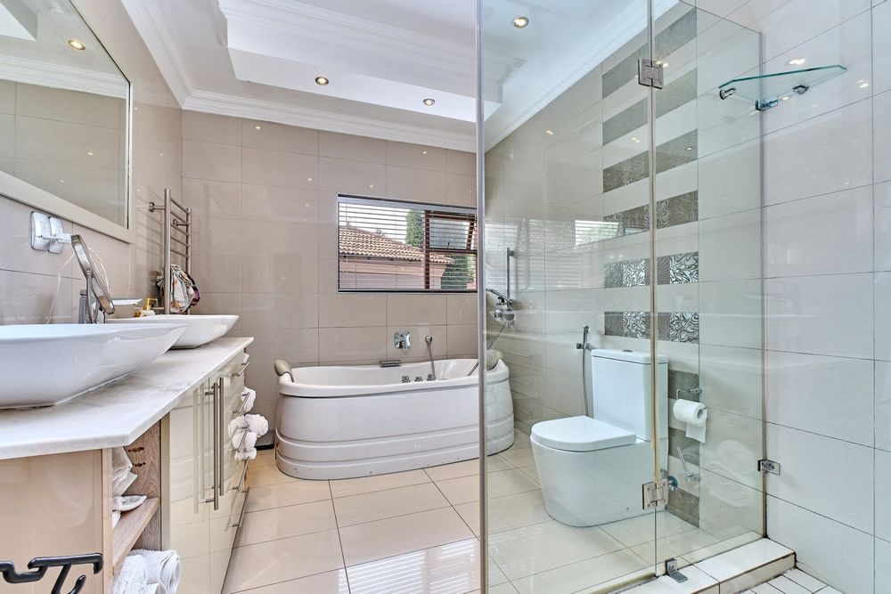 It comprises a welcoming entrance, 4 living areas, 2 dining rooms, home cinema and a patio with braai and a projector, enclosed with stacking doors, that lead to the pool and low maintenance garden.