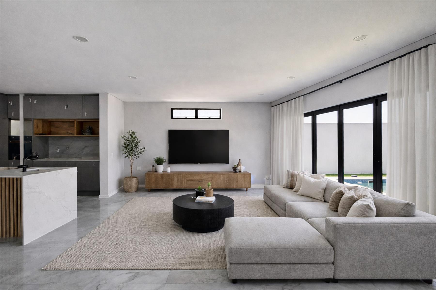 Please note that this is a newly built home and that the last bits of finishing is being wrapped up, see video to experience the flow of the home and also note that as per the pics the curtains and rails, furniture and decorative items, pot plants and plants in front wall and even the chandelier at the staircase are used purely for staging and illustrative purposes to help viewers visualise the space and design potential, and do not form part of the sale nor represent standard finishes of the home.