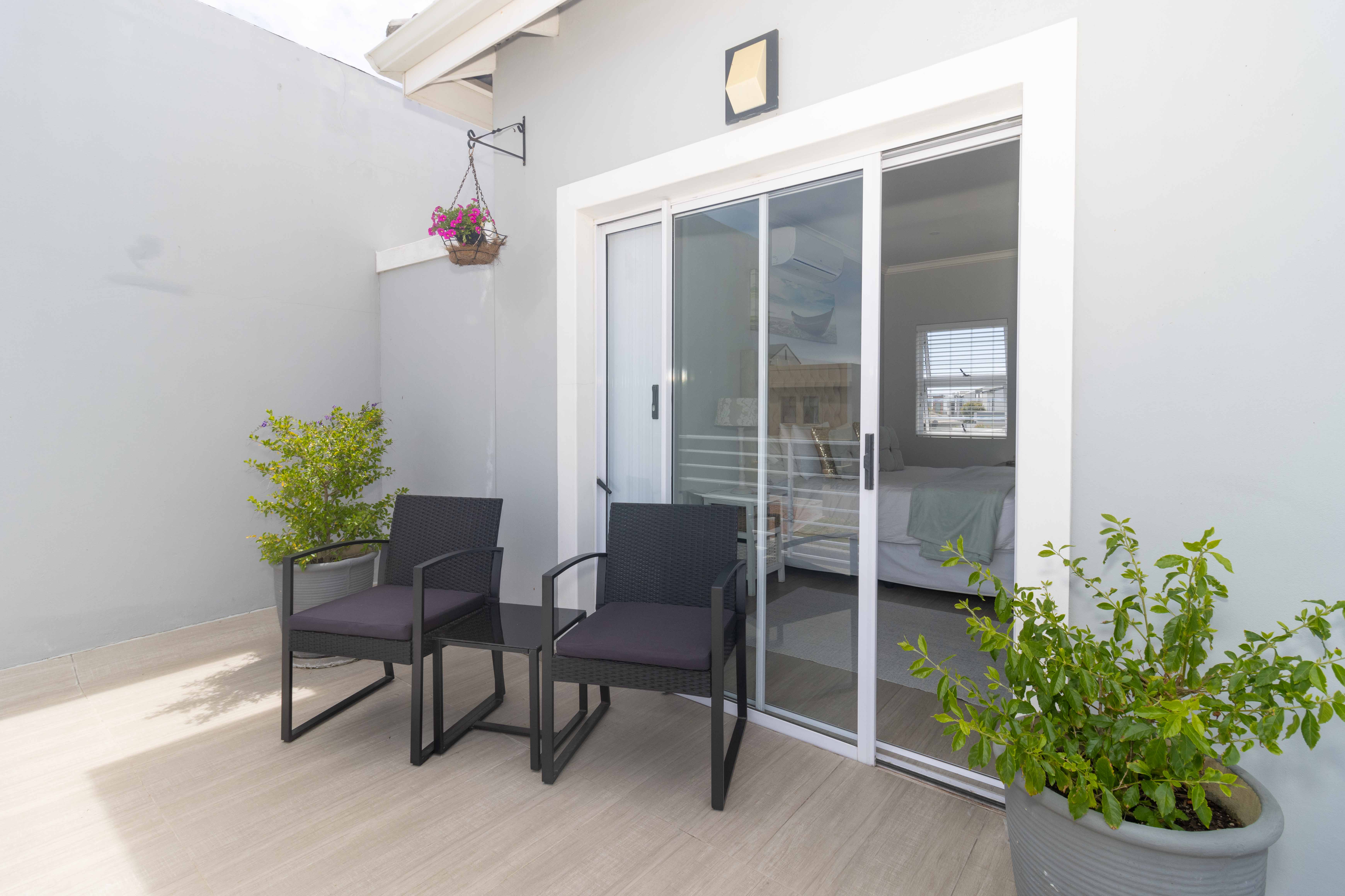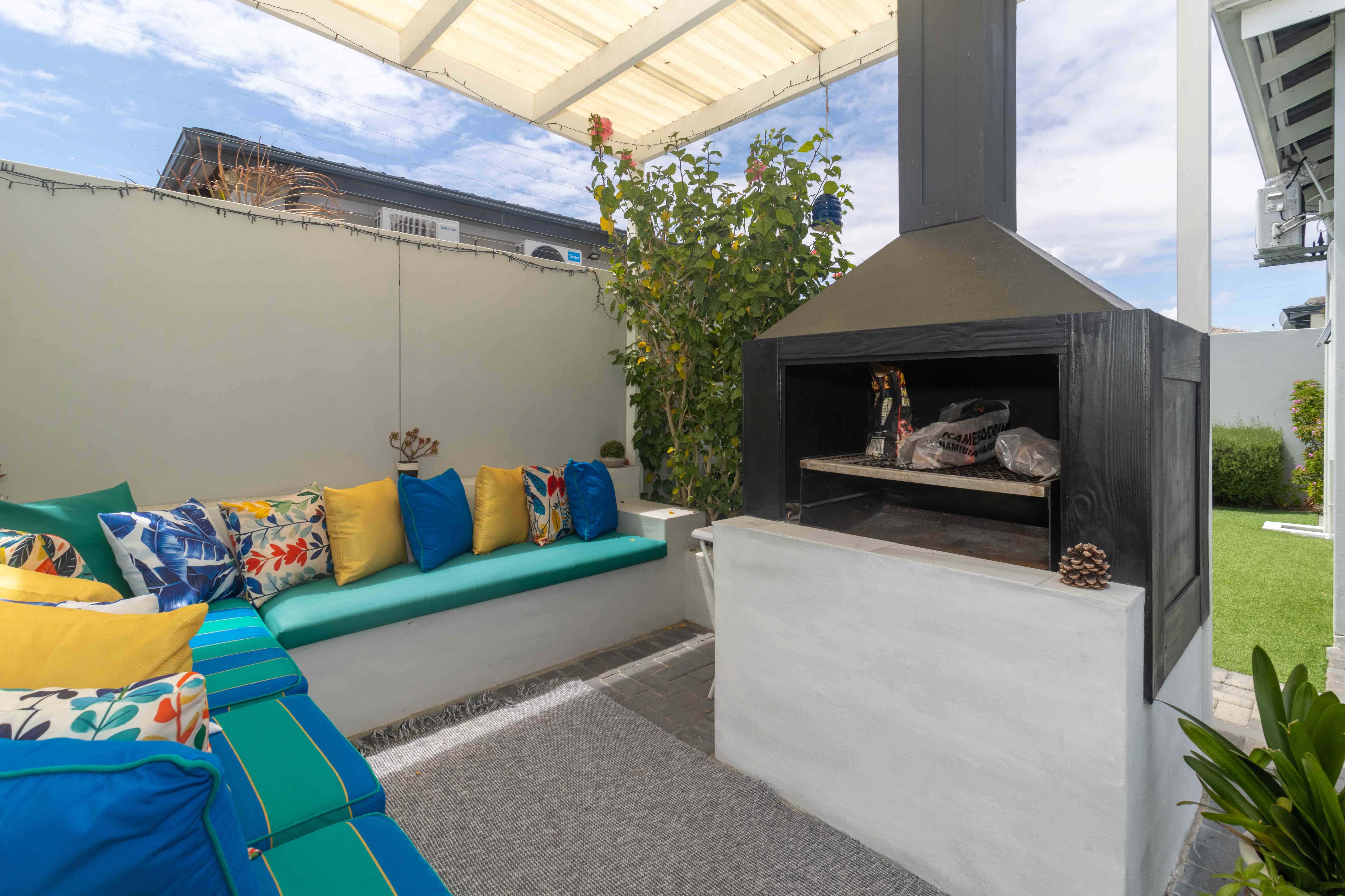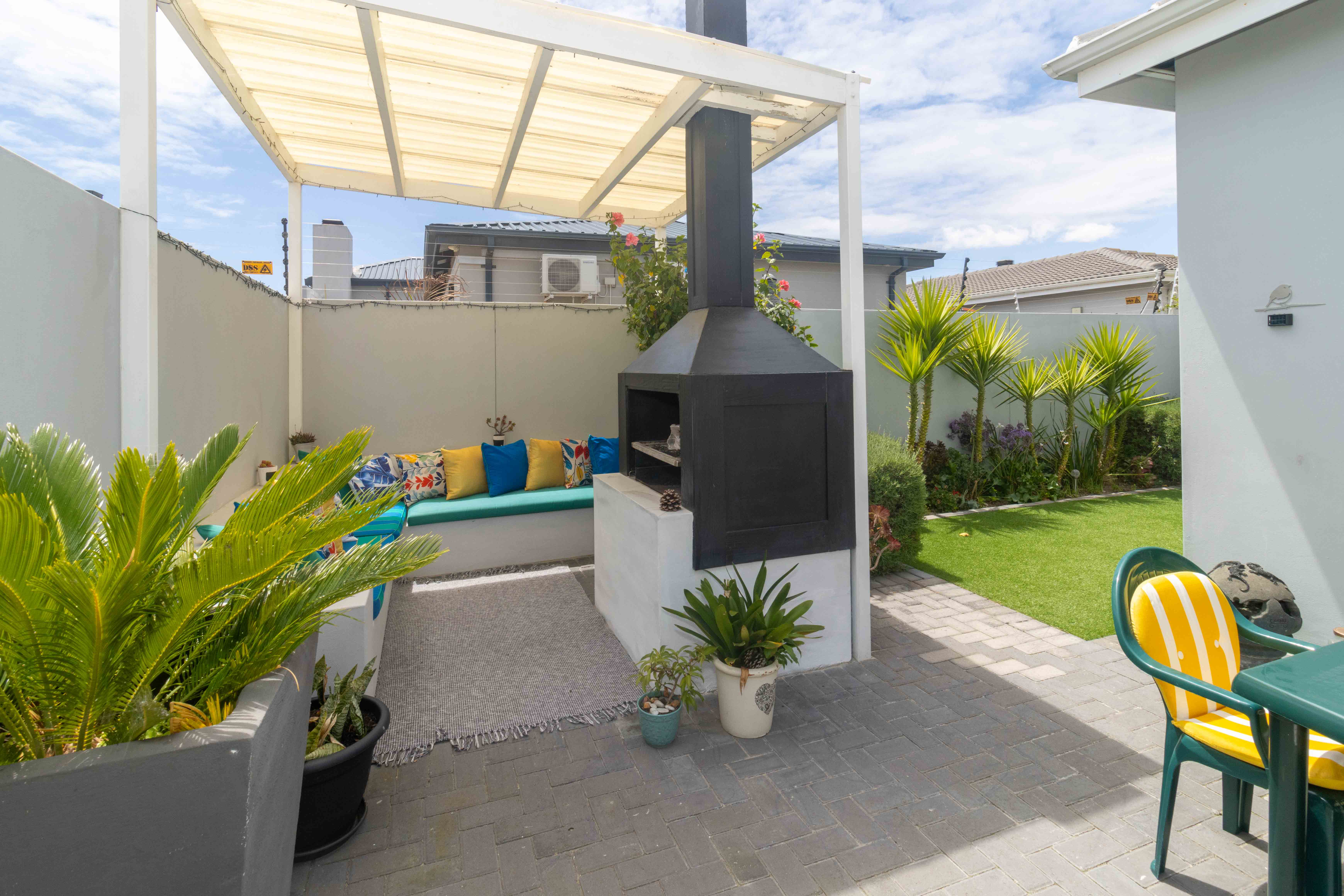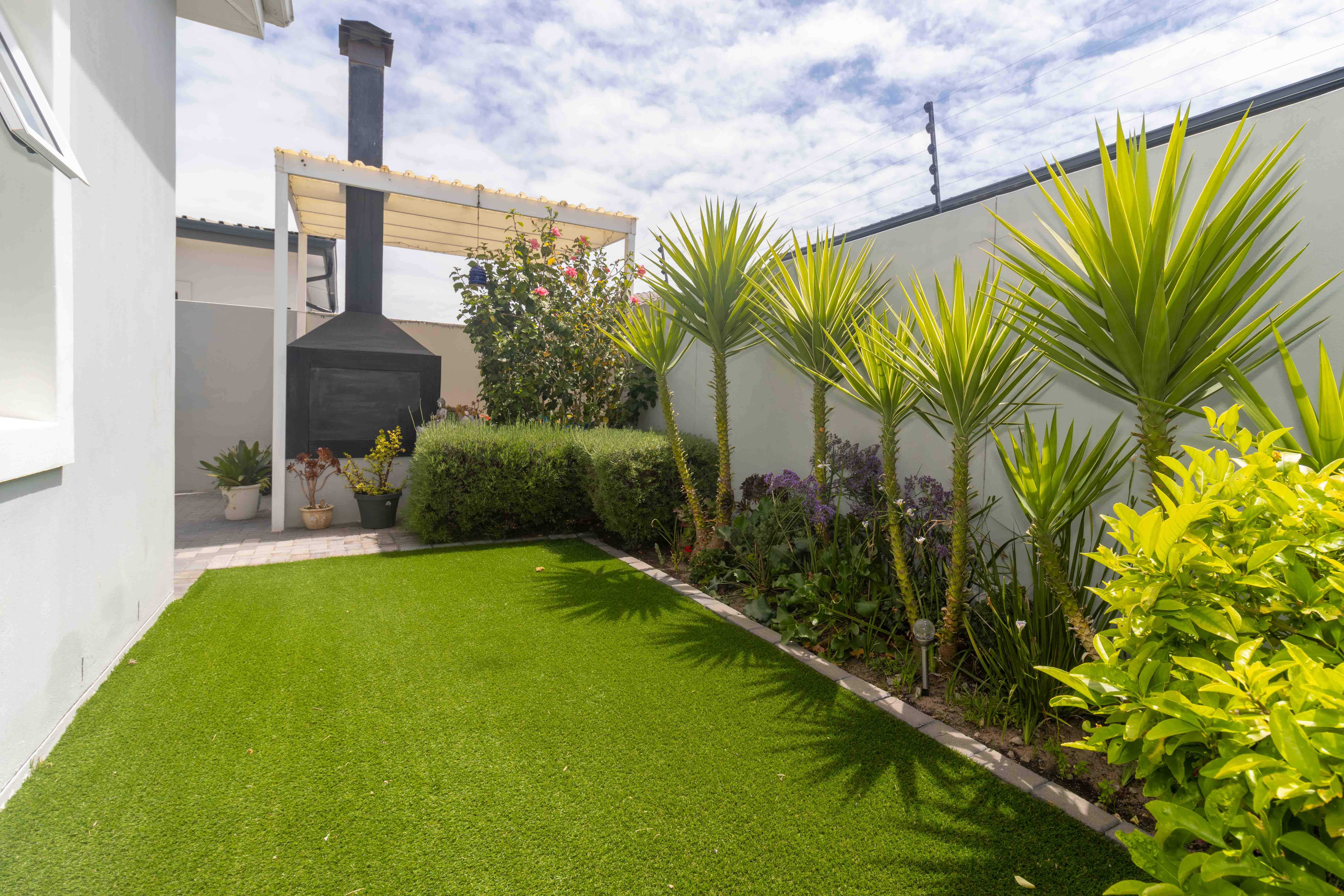 Step outside to enjoy a beautifully kept private front garden and a shaded, low-maintenance backyard with Astro turf, a cozy braai/tea area, and outdoor seating, your own tranquil escape.