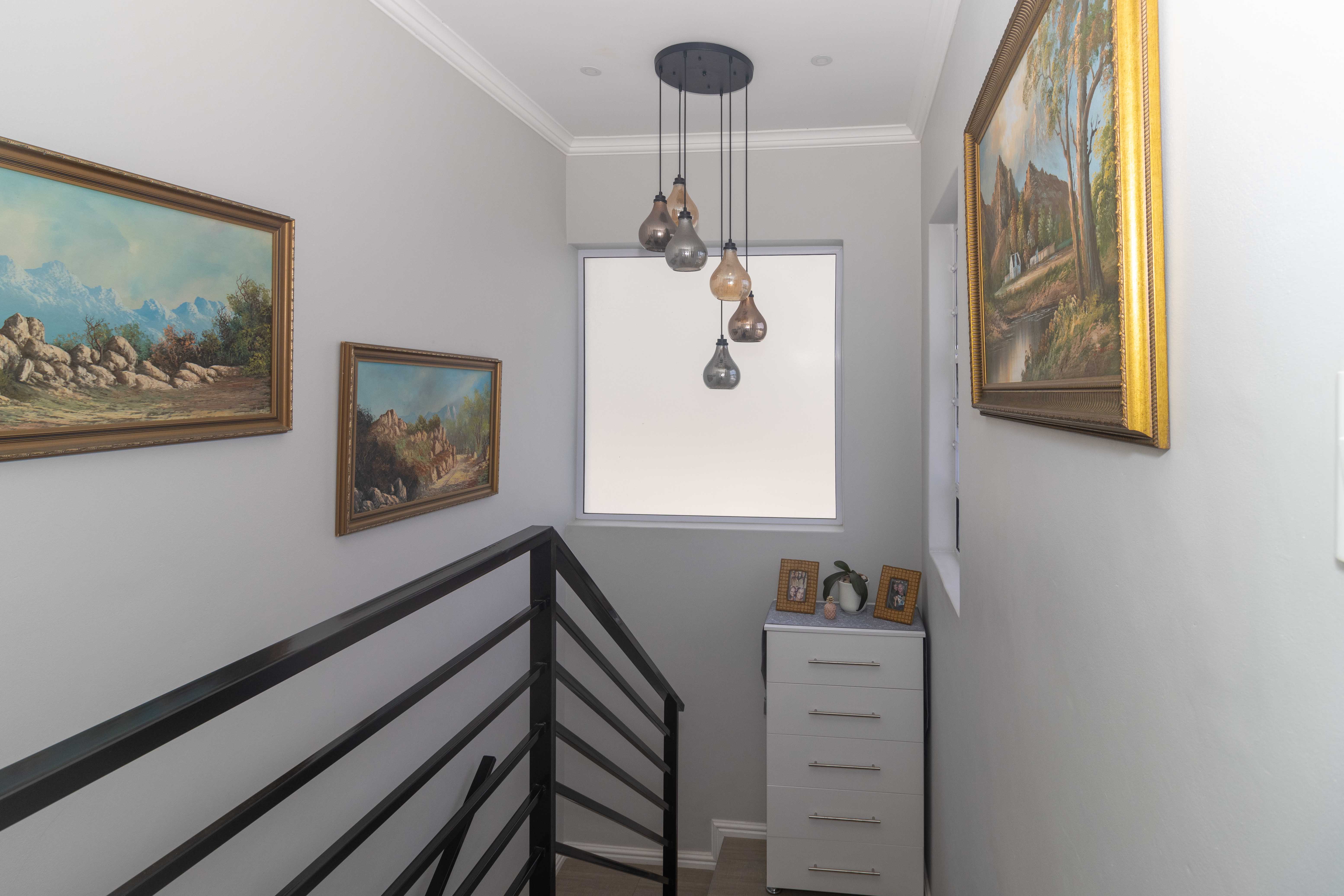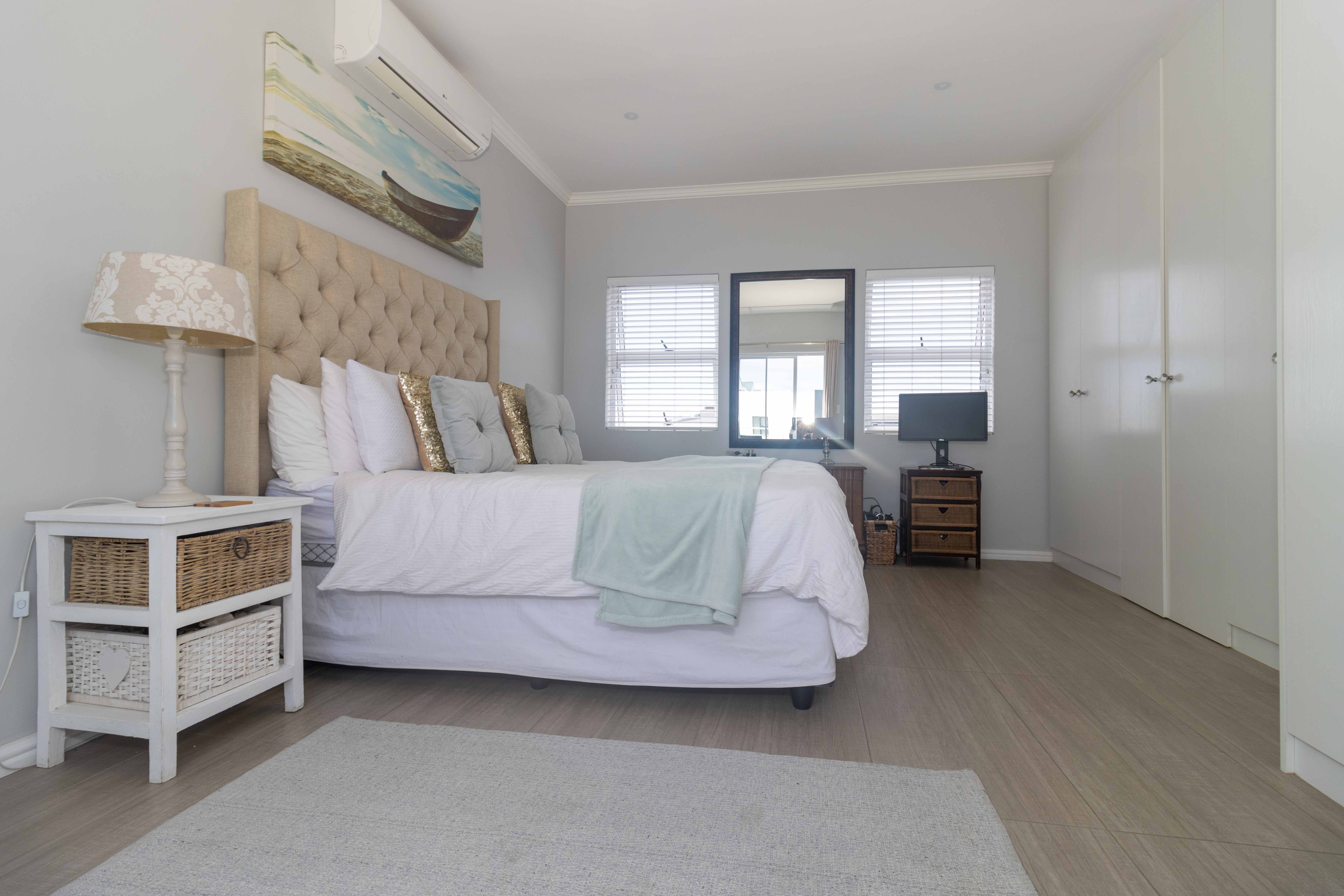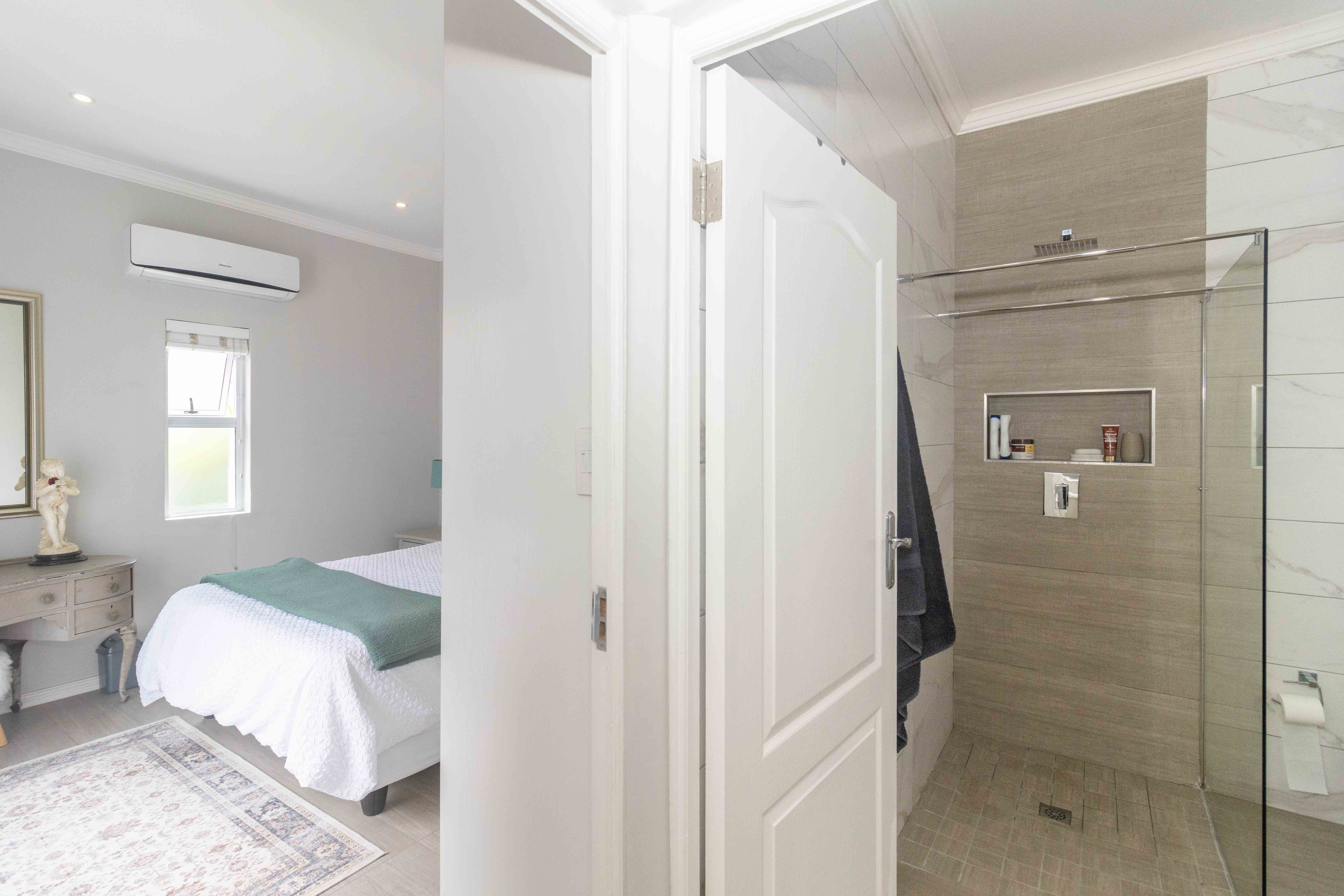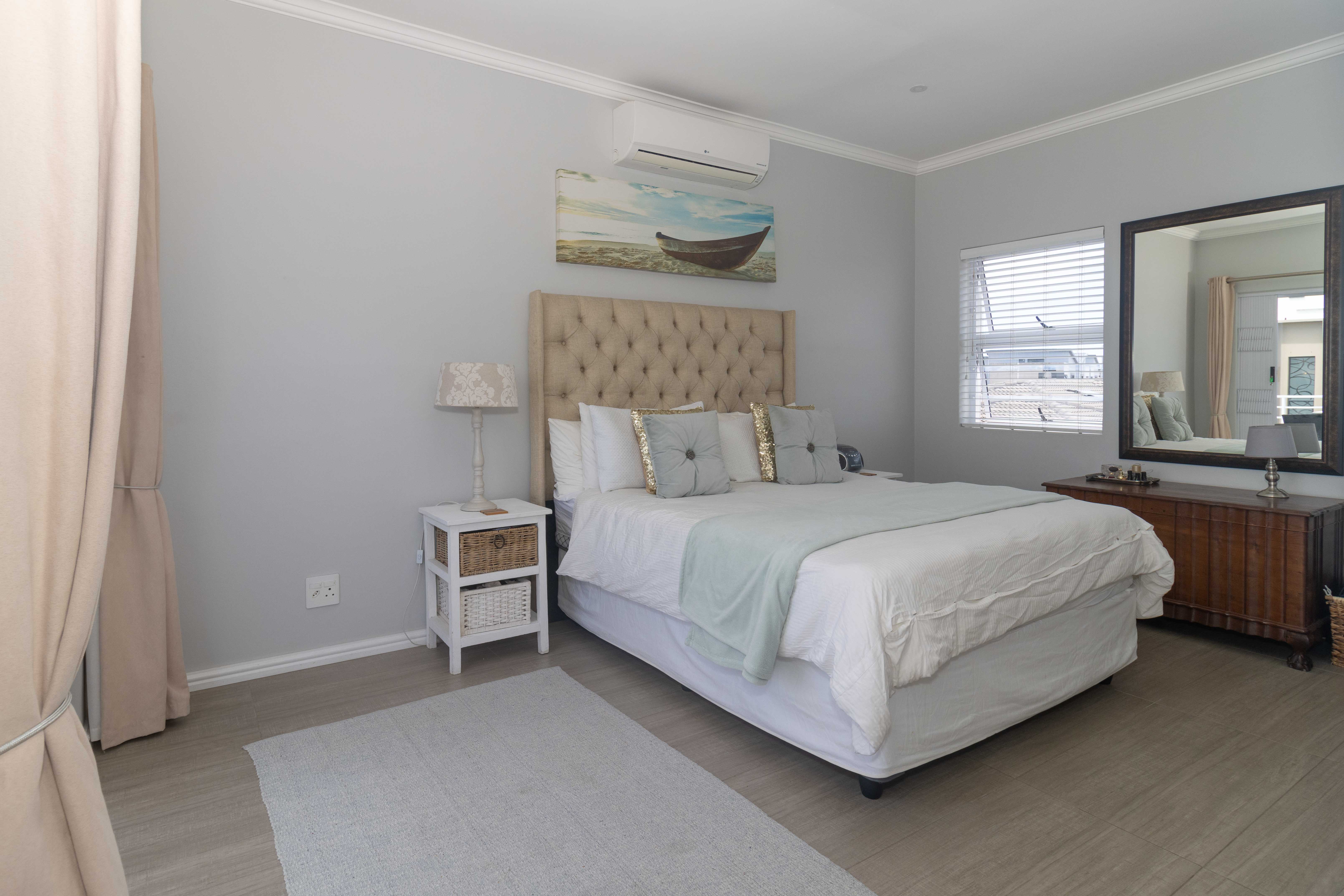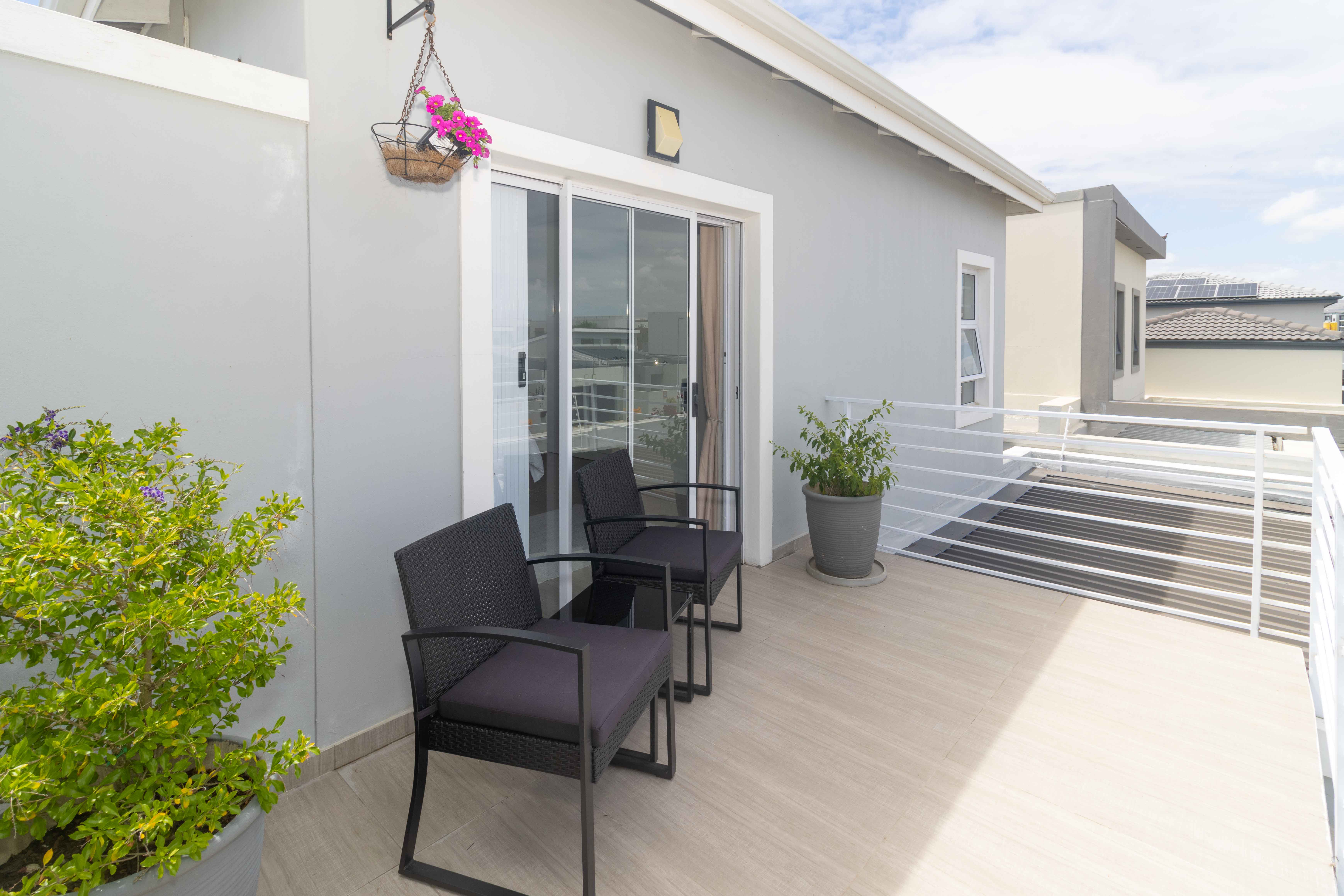 Upstairs features a third bedroom with a private balcony and full bathroom, offering a peaceful and private retreat. The room is air conditioned and ensures comfort all year round. The property also has a solar geyser with pump and geyser device.