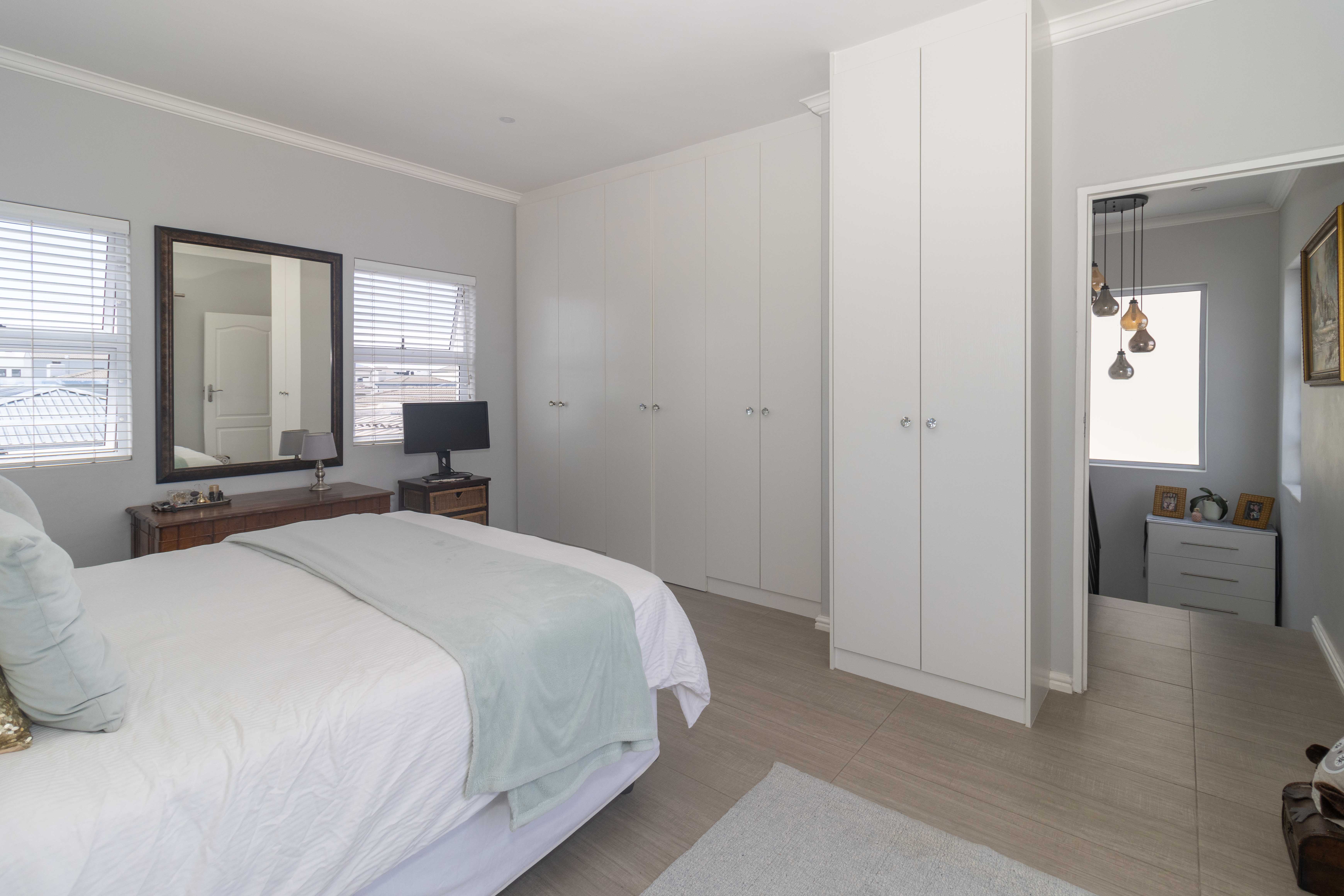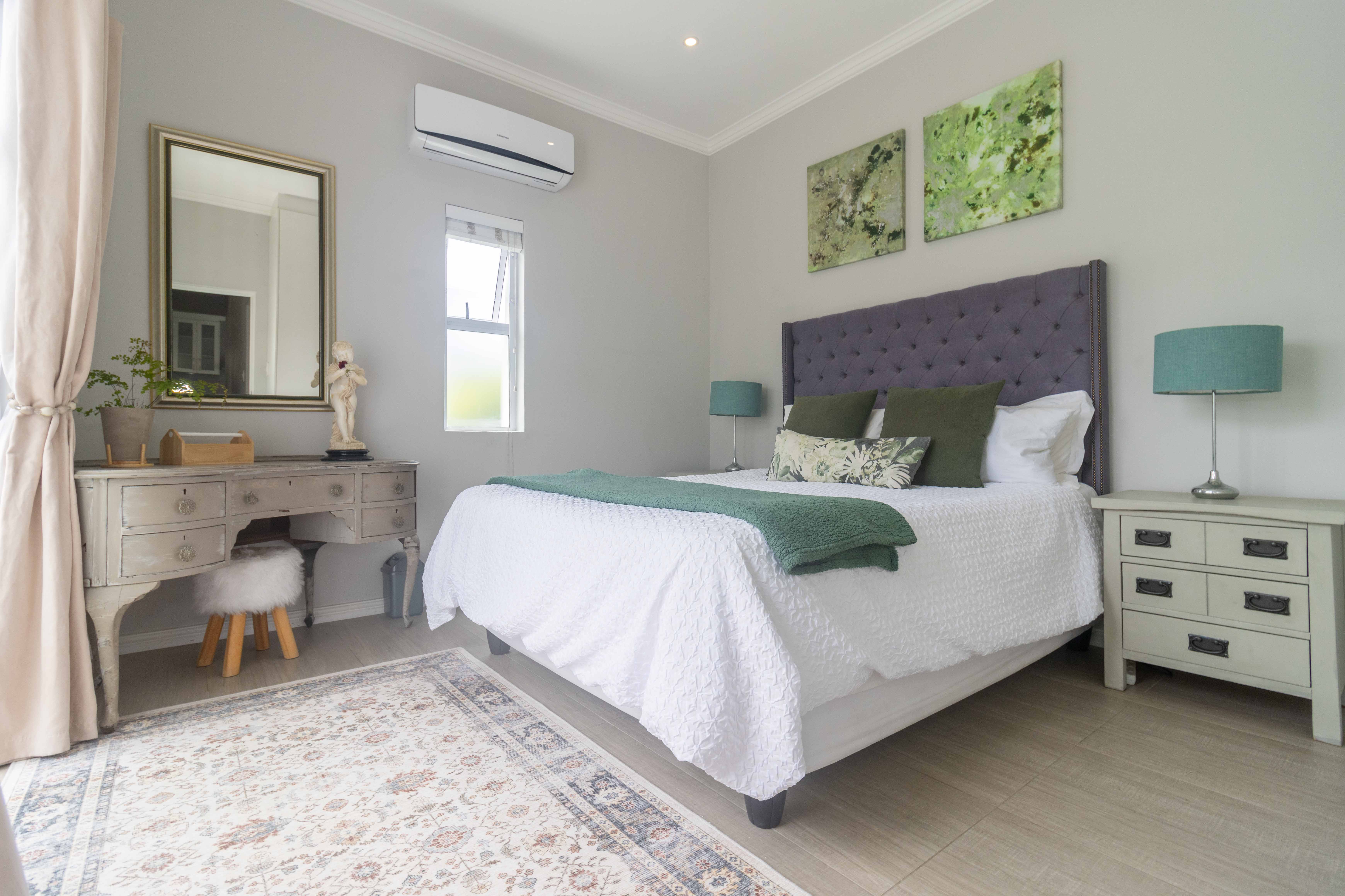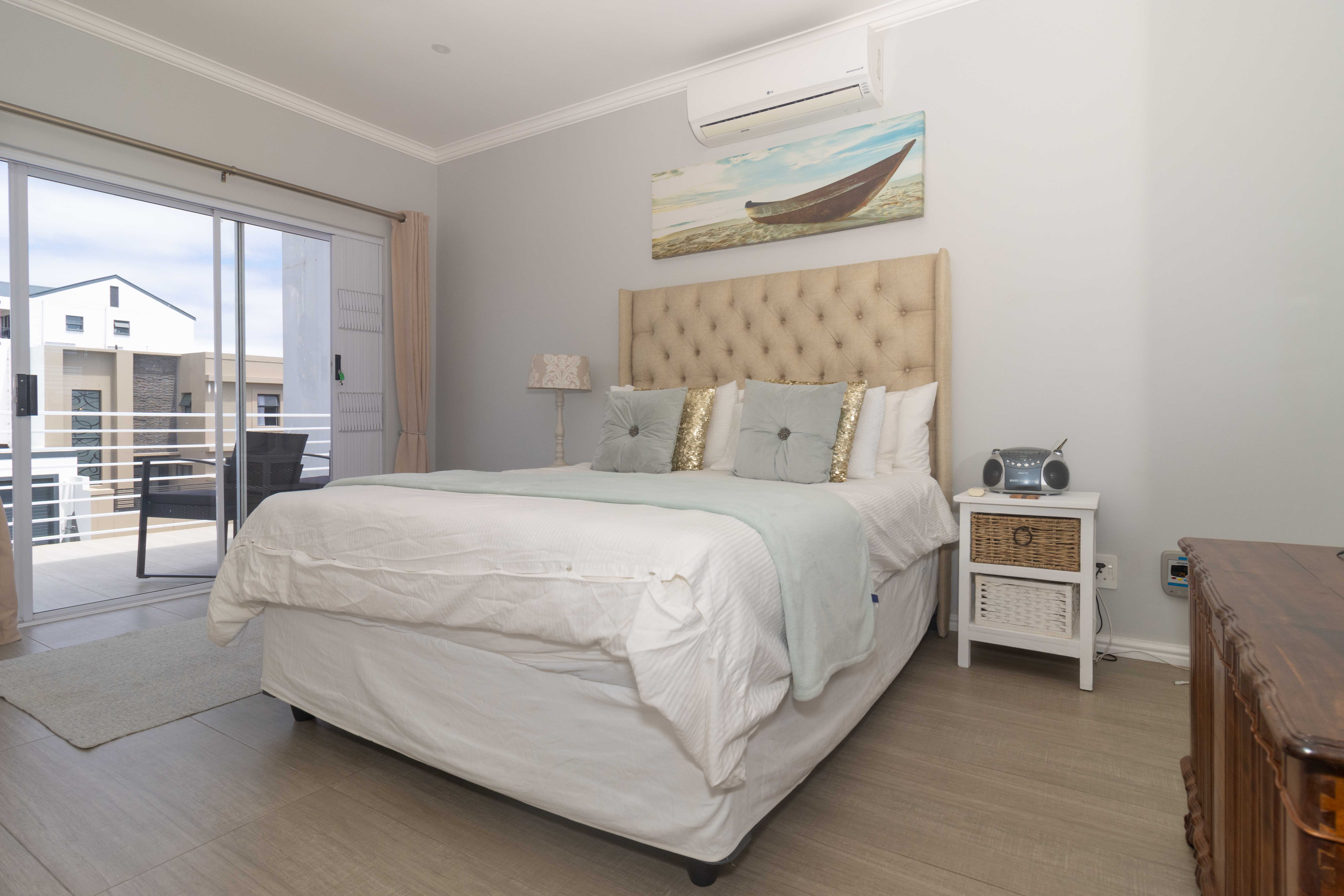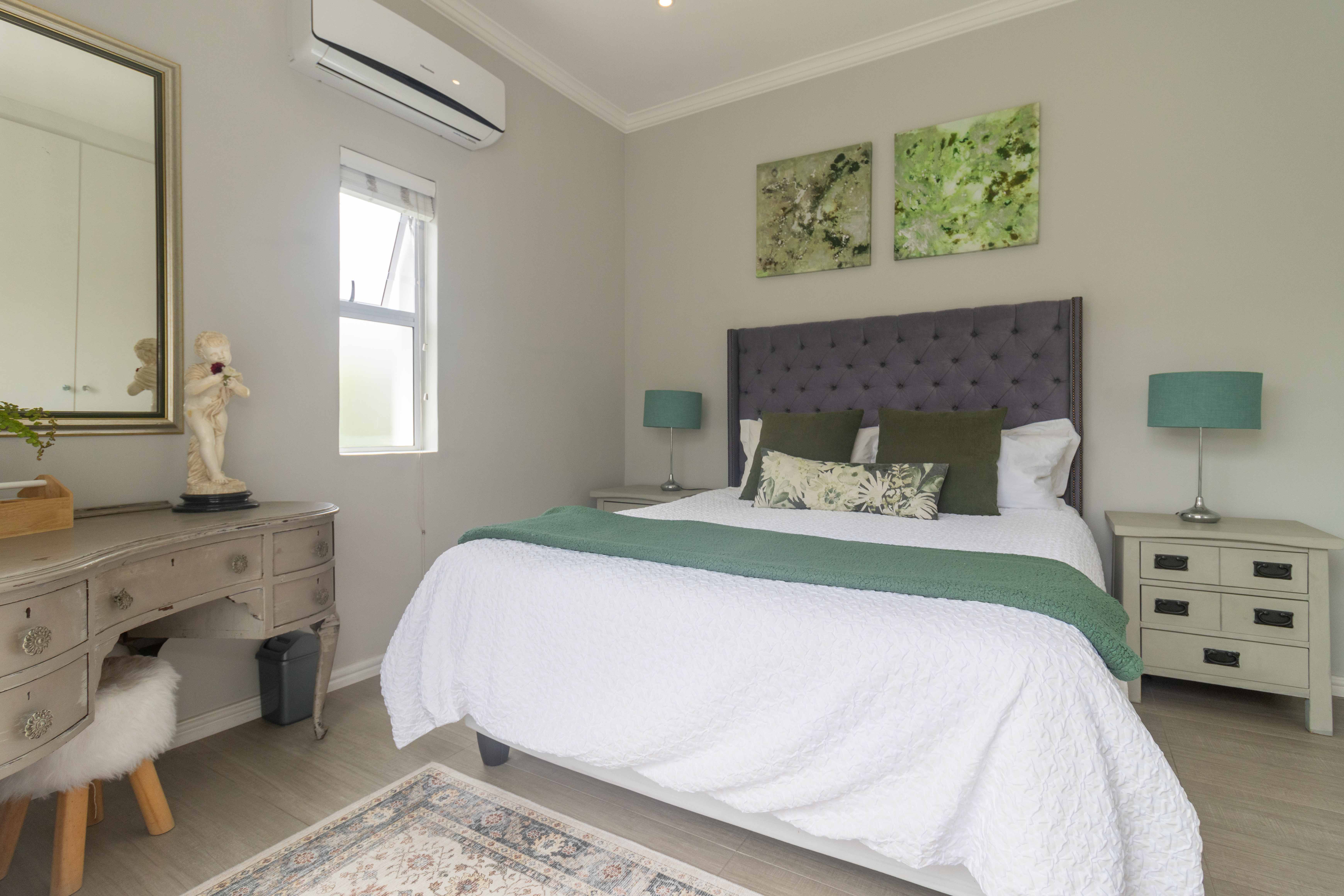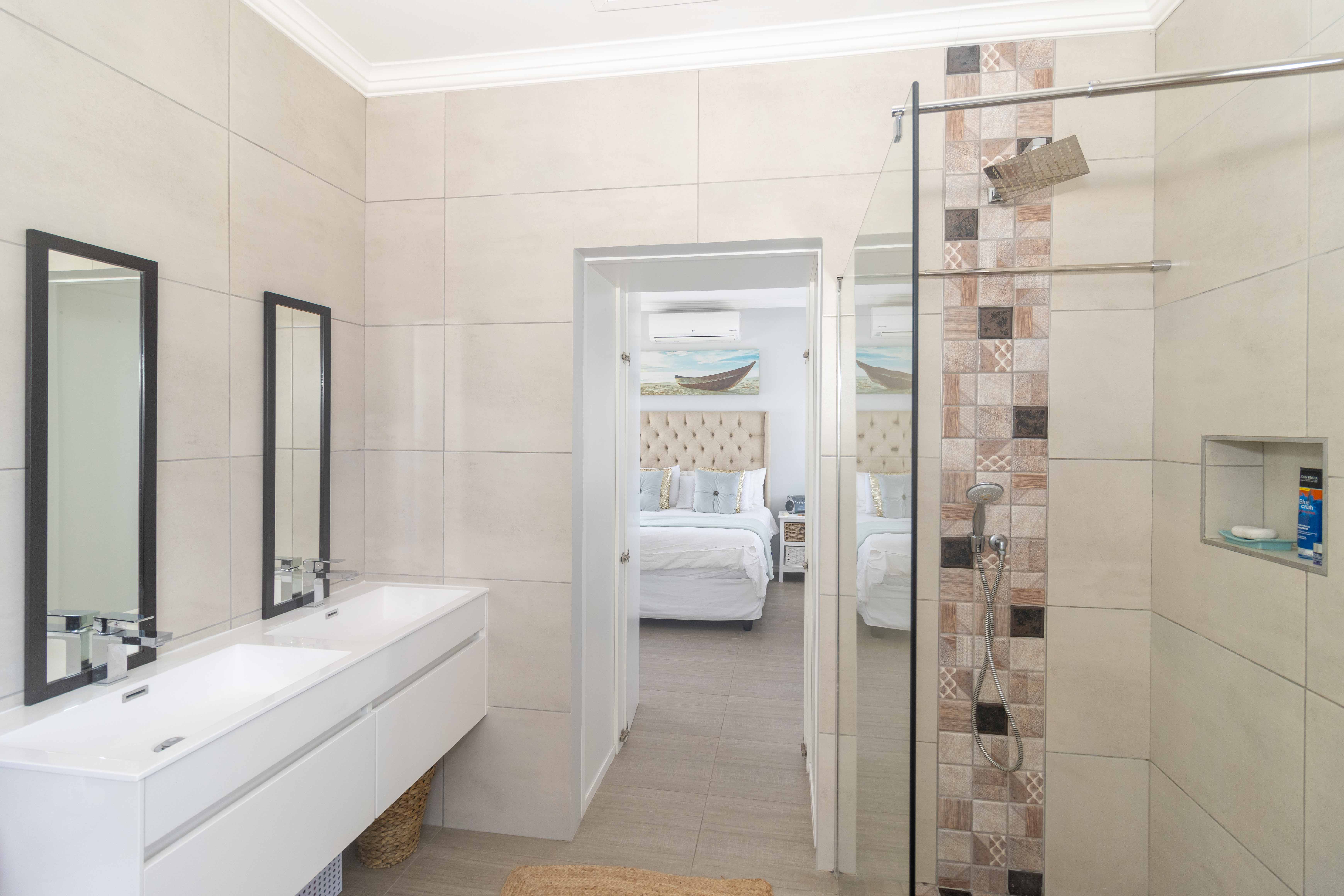 Upstairs features a third bedroom with a private balcony and full bathroom, offering a peaceful and private retreat. The room is air conditioned and ensures comfort all year round. The property also has a solar geyser with pump and geyser device.