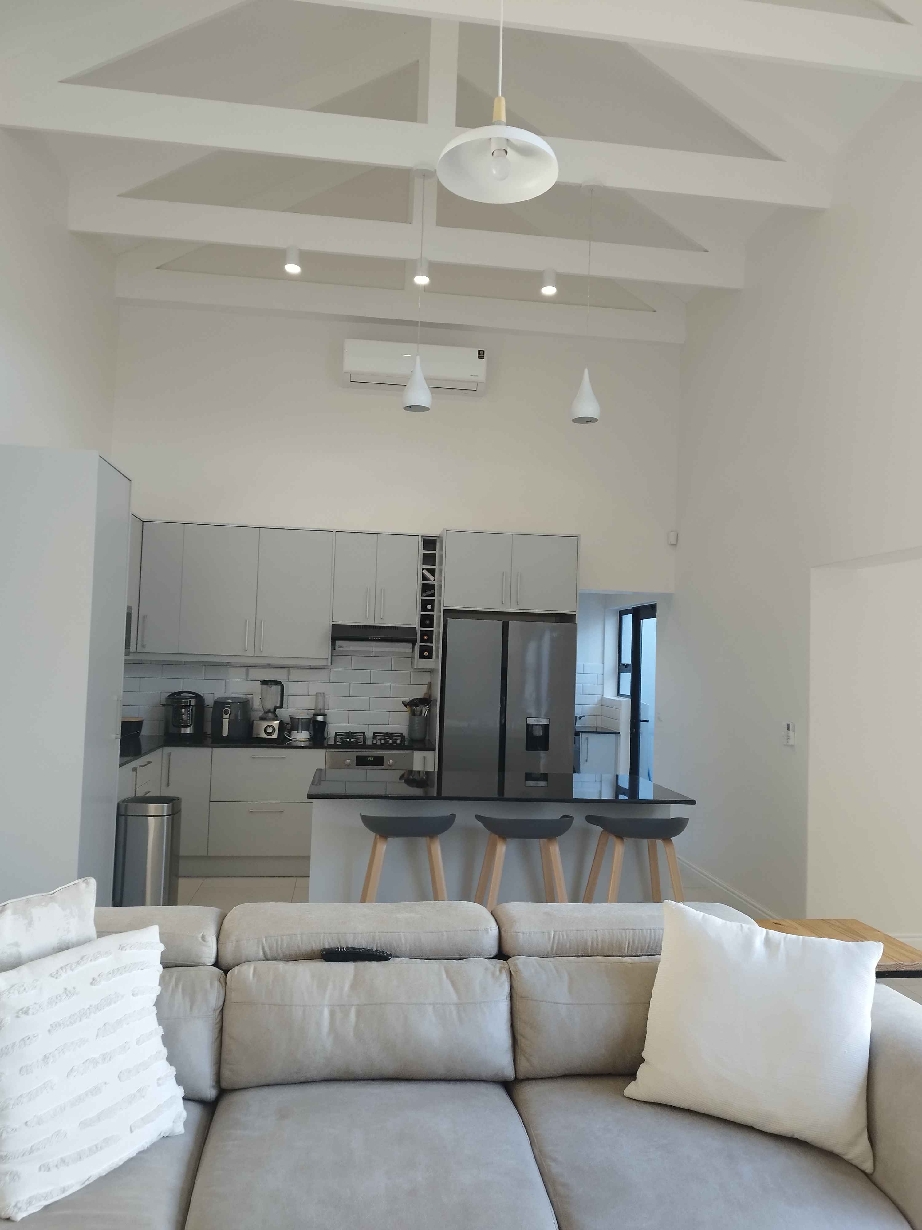 Energy efficiency – ESKOM independent, Solar panels to charge the house and a solar geyser to warm the water, Gas cooking, Stormwater harvesting, Low water consumption, Fibre Internet (excl. from the rent price), Energy-saving appliances still in warranty, Luxury finishes that connect functionality and style in every aspect.