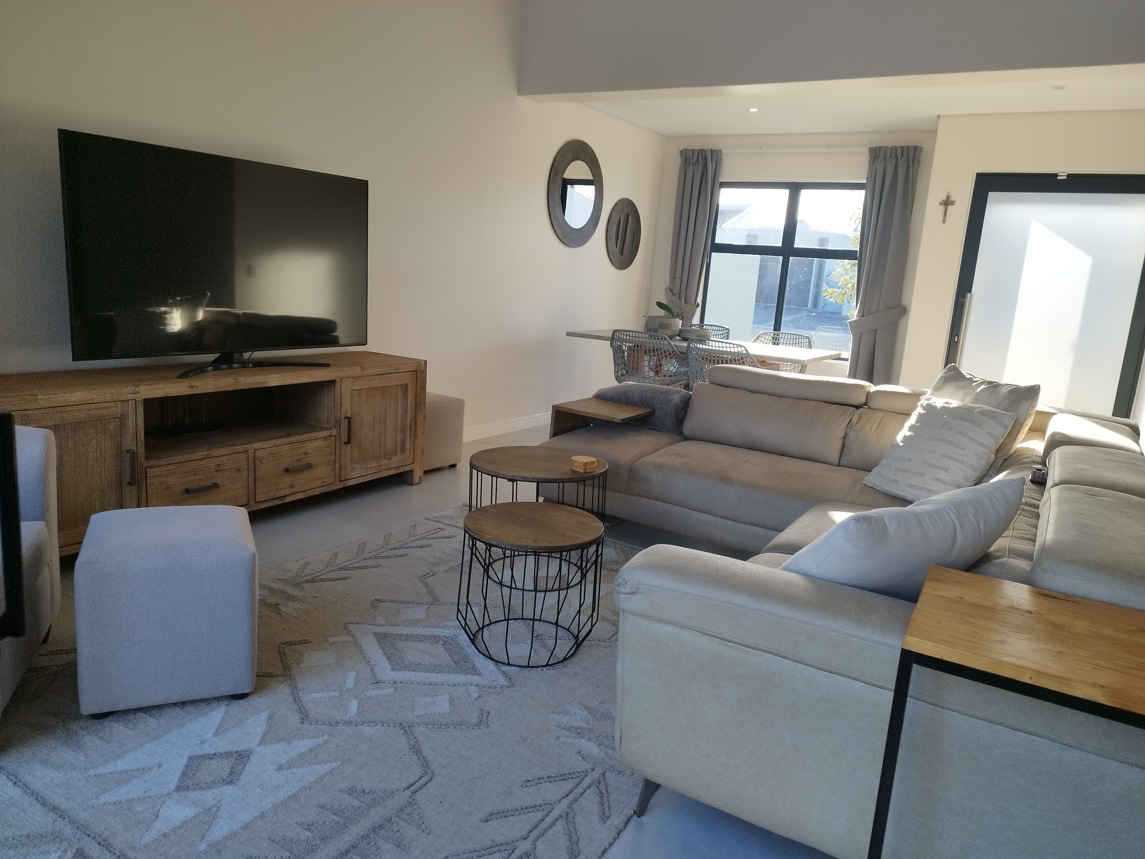 This brand-new house was built 2 years ago and is located in the beautiful, clean neighbourhood of Sandown, where location is prime, and convenience is unrivalled. This neighbourhood of Blaauwberg is full of new developments and young families. 2 playgrounds are within a 2-minute walking distance, and Sandown Shopping Centre is within a 5-minute walking distance. An immediate neighbour is Parklands Secondary School, which makes the house location extra safe. The AVID security station is right next to the street and the house, so the street and the house are super-safe at all times. Yet an optional security system is installed at the property, costing R400/month. All the neighbours are very welcoming, kind and helpful. Quiet, calm and safe environment. Public transportation is available within a 5-minute walking distance. The ocean is a 7-minute drive from the property. Montessori and Positive Discipline-based private schools are available for children aged 6 months to 6 years within a 2 to 10 min drive. Reputable public and private schools available for 3+ children within a 10-minute drive.