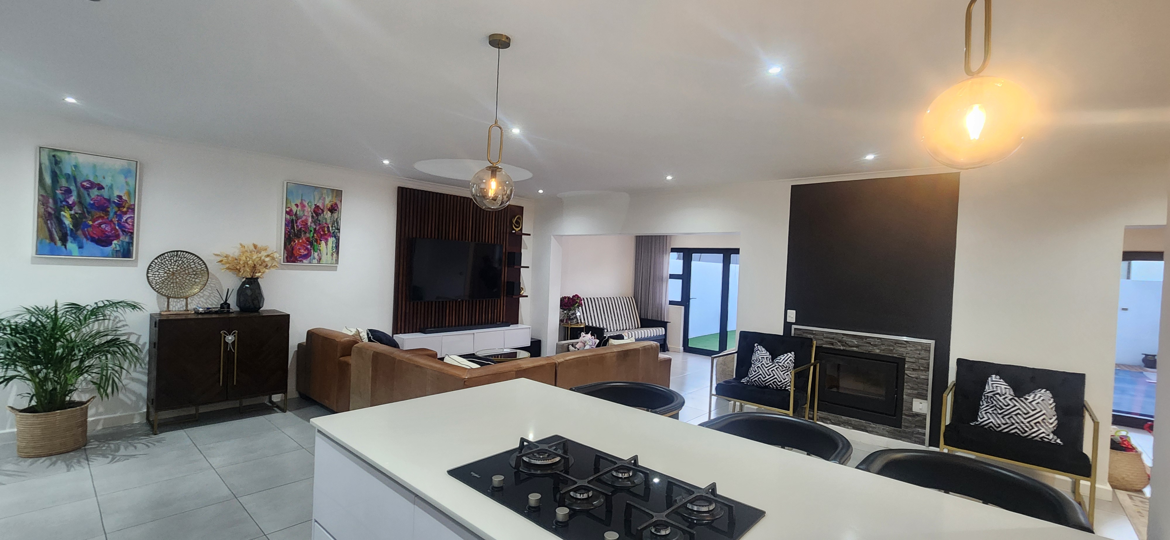 Entertain all year round in the indoor braai area, while the cozy firewood fireplace adds warmth and charm to the main living space. Upstairs, the luxurious main bedroom offers a private sanctuary with its own electric fireplace and a beautifully appointed ensuite bathroom.
