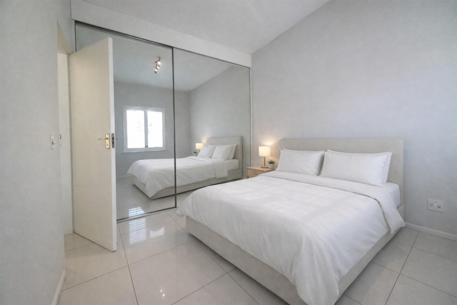 Accommodation includes well-proportioned bedrooms with generous built-in cupboards, finished with sleek sliding mirrored doors, offering excellent storage while enhancing the sense of space.