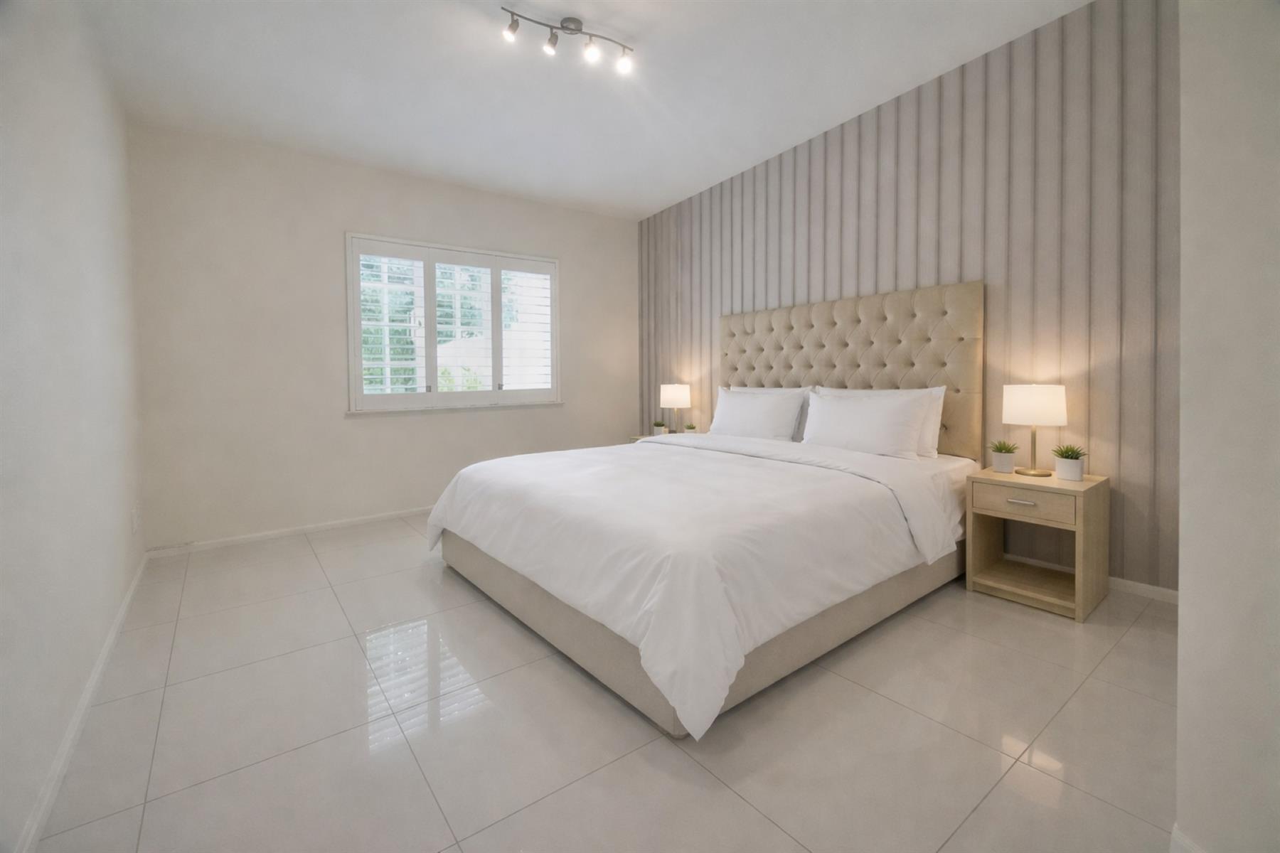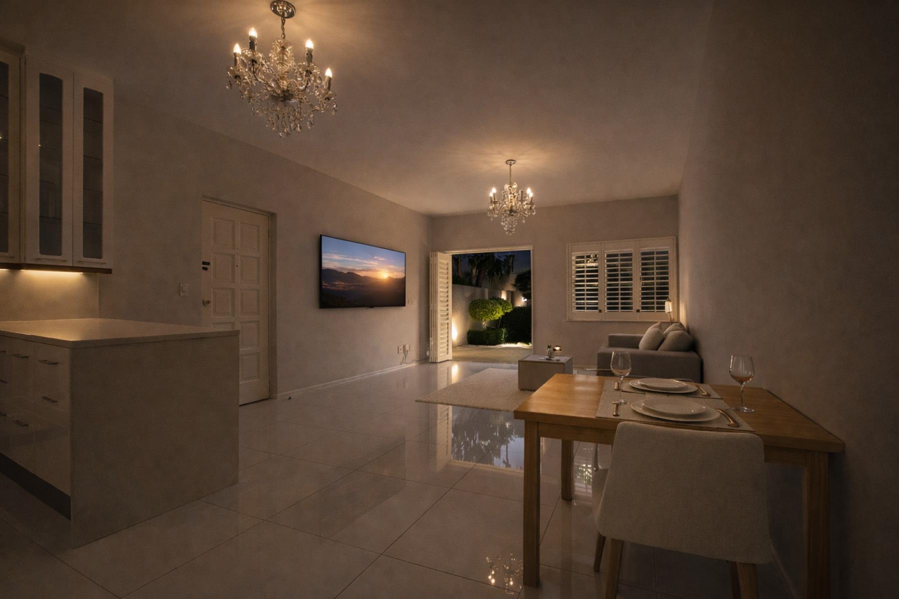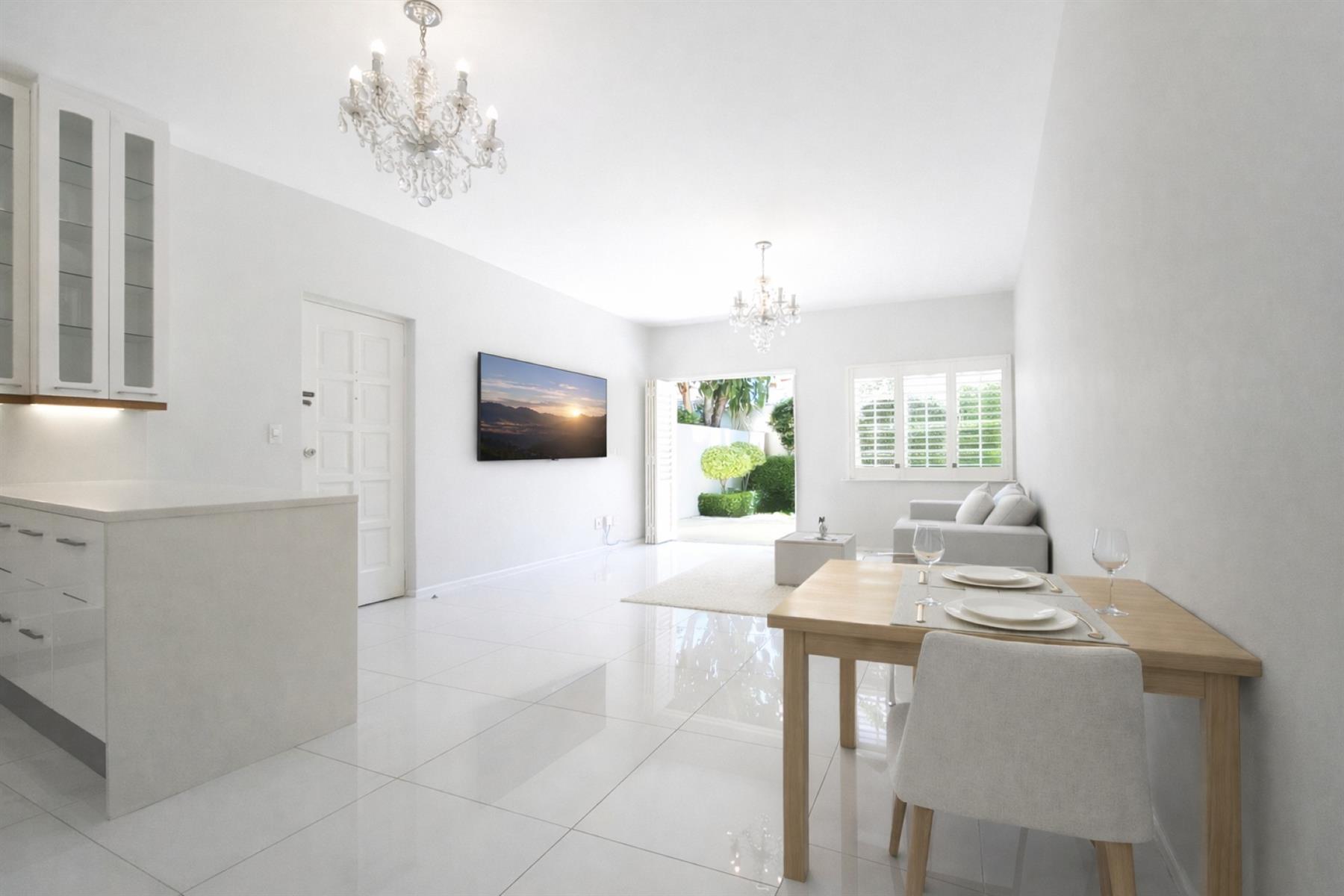 Set in the heart of Sandown, Sandton on sought-after Linden street this beautifully renovated sectional title garden unit offers refined, lock-up-and-go living in one of Johannesburg’s most prestigious suburbs. The apartment has been fully renovated throughout and is presented in spotless, move-in-ready condition. standing vacant and ready for immediate occupation by the discerning buyer. The light-filled open-plan living area flows seamlessly onto a private garden, ideal for relaxed indoor-outdoor living. The home is finished with elegant large-format tiling and features plantation shutters, enhancing both style and privacy while allowing excellent natural light.The modern kitchen is thoughtfully designed and well appointed, featuring: