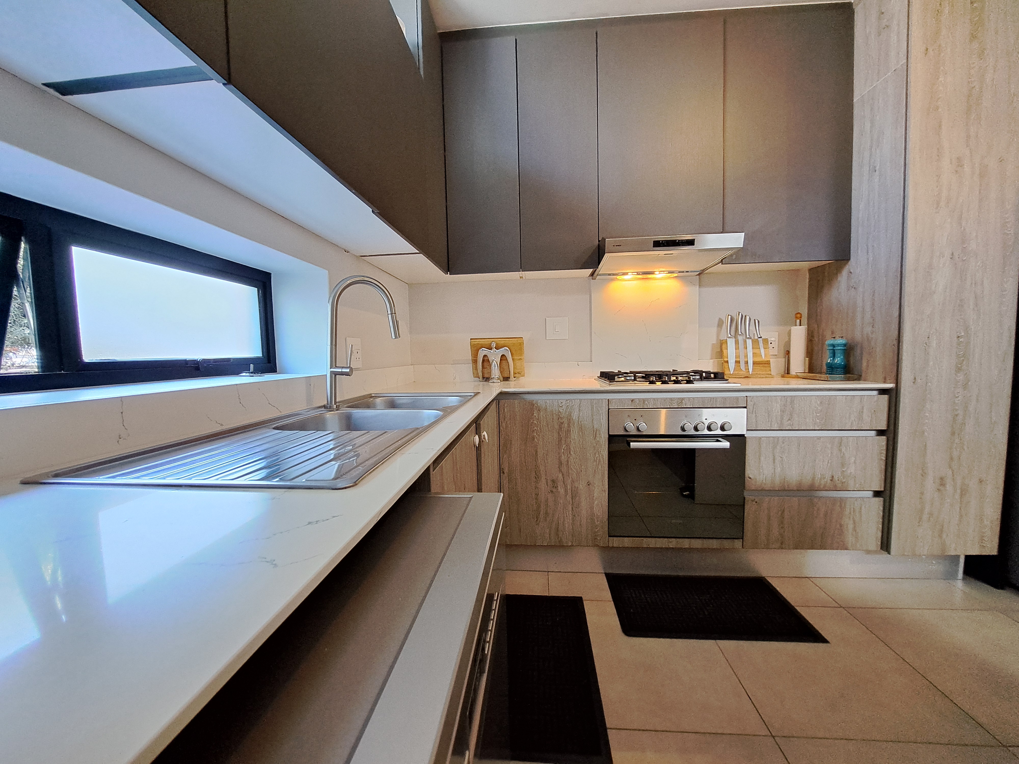 The modern kitchen is a culinary enthusiast's dream, complete with a gas hob that promises quick and efficient cooking. Whether you’re preparing a quiet dinner or hosting a lively gathering, this kitchen is designed for convenience and functionality.