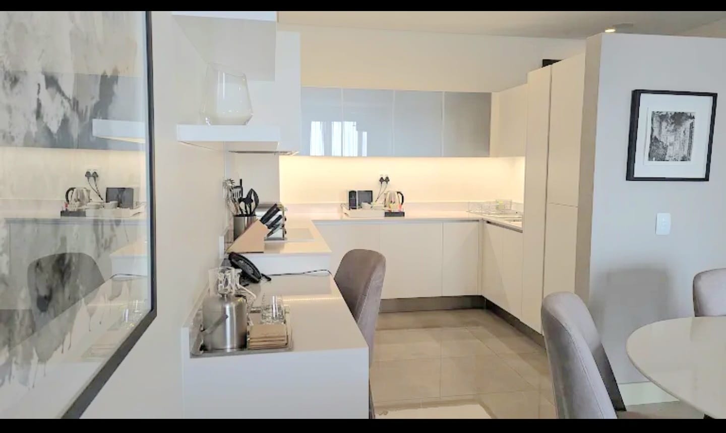 Open-plan Kitchen, Dining, and Lounge, seamlessly lead to a vast balcony with mesmerizing views from the 29th floor.