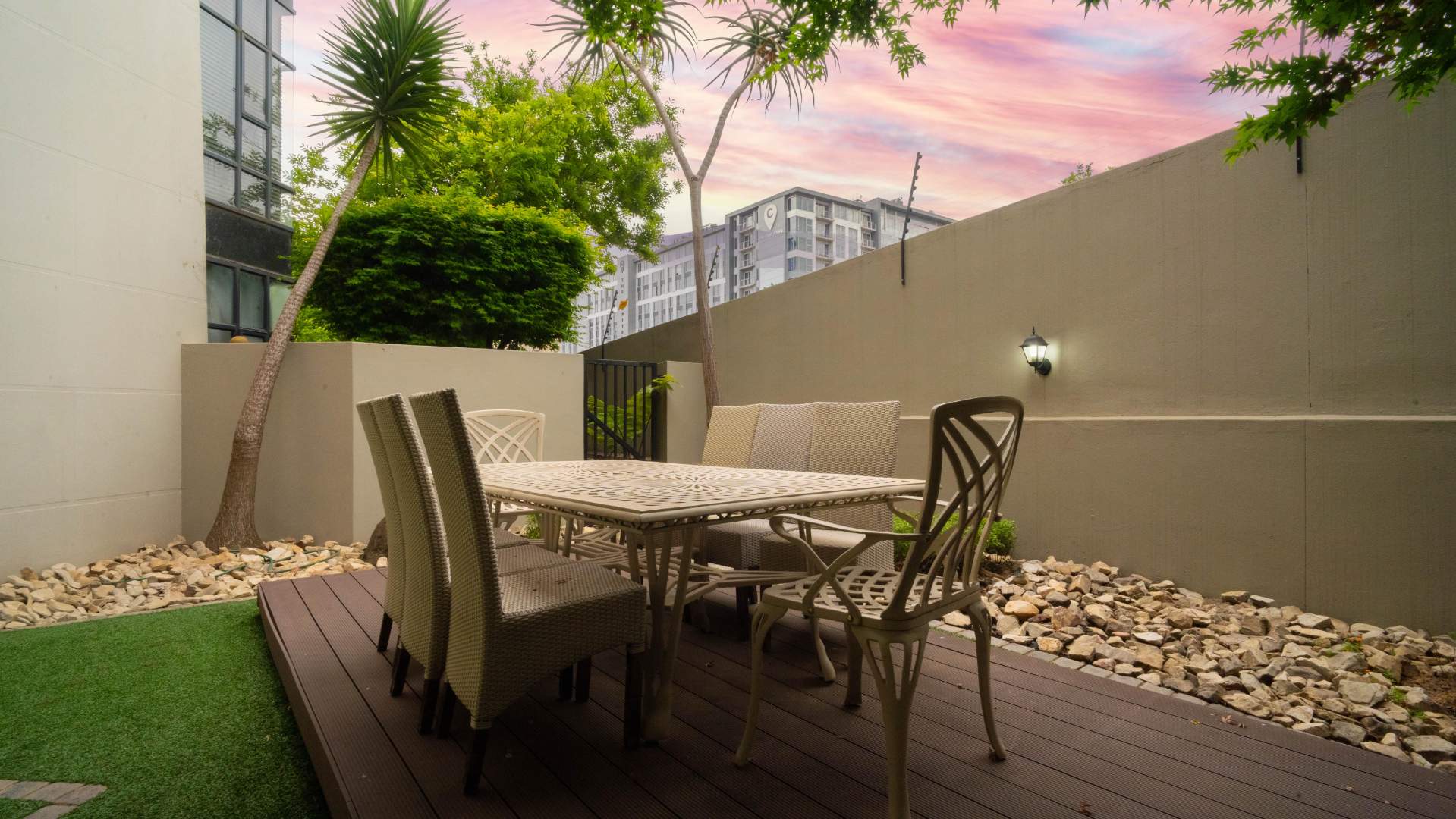 Step outside to enjoy low maintenance living with astroturf lawn, a private patio with outdoor furniture and a raised deck complete with dining set, ideal for relaxed meals or entertaining.
