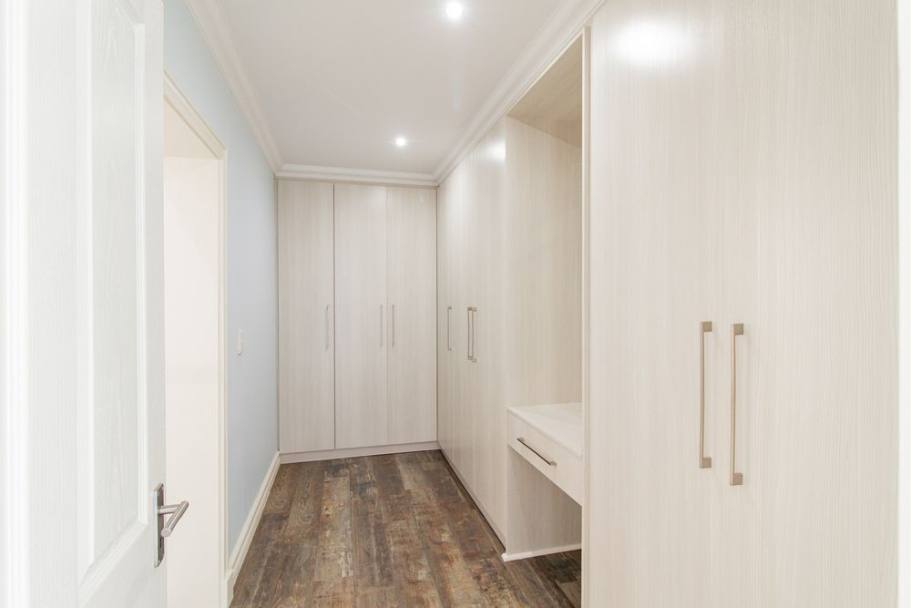 Enter through glass double doors into an open-plan dining and living space flowing into a beautifully designed kitchen featuring a SMEG oven, granite countertops, ample built-in cupboards, and a large scullery. A guest toilet and under-stair storeroom offer additional convenience.