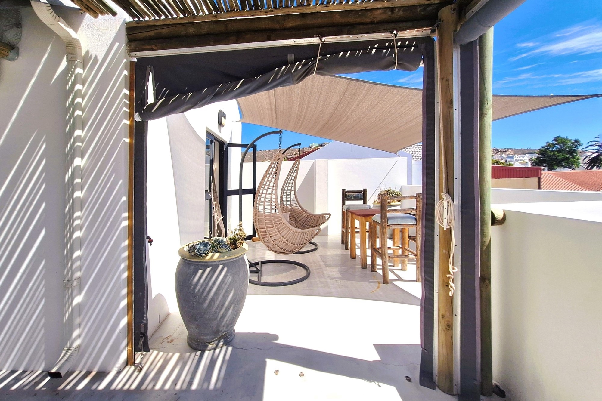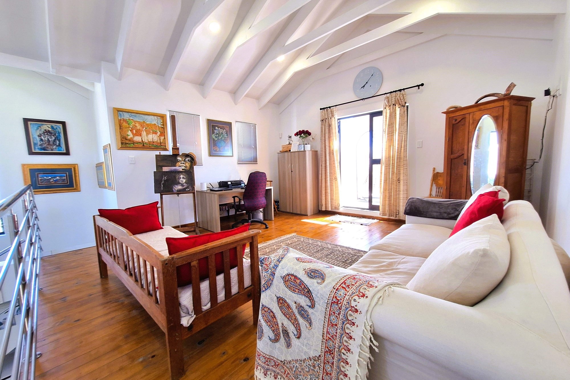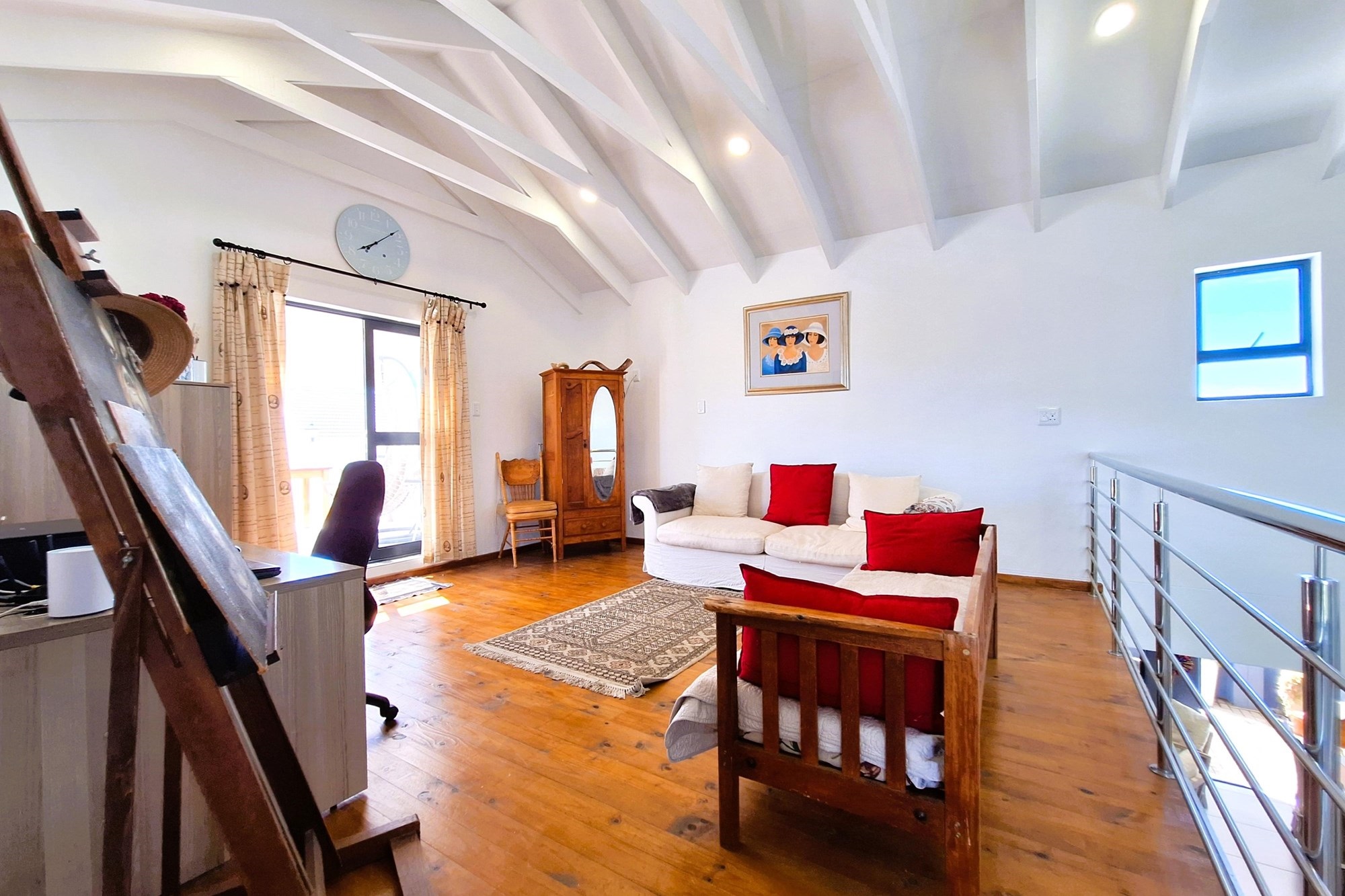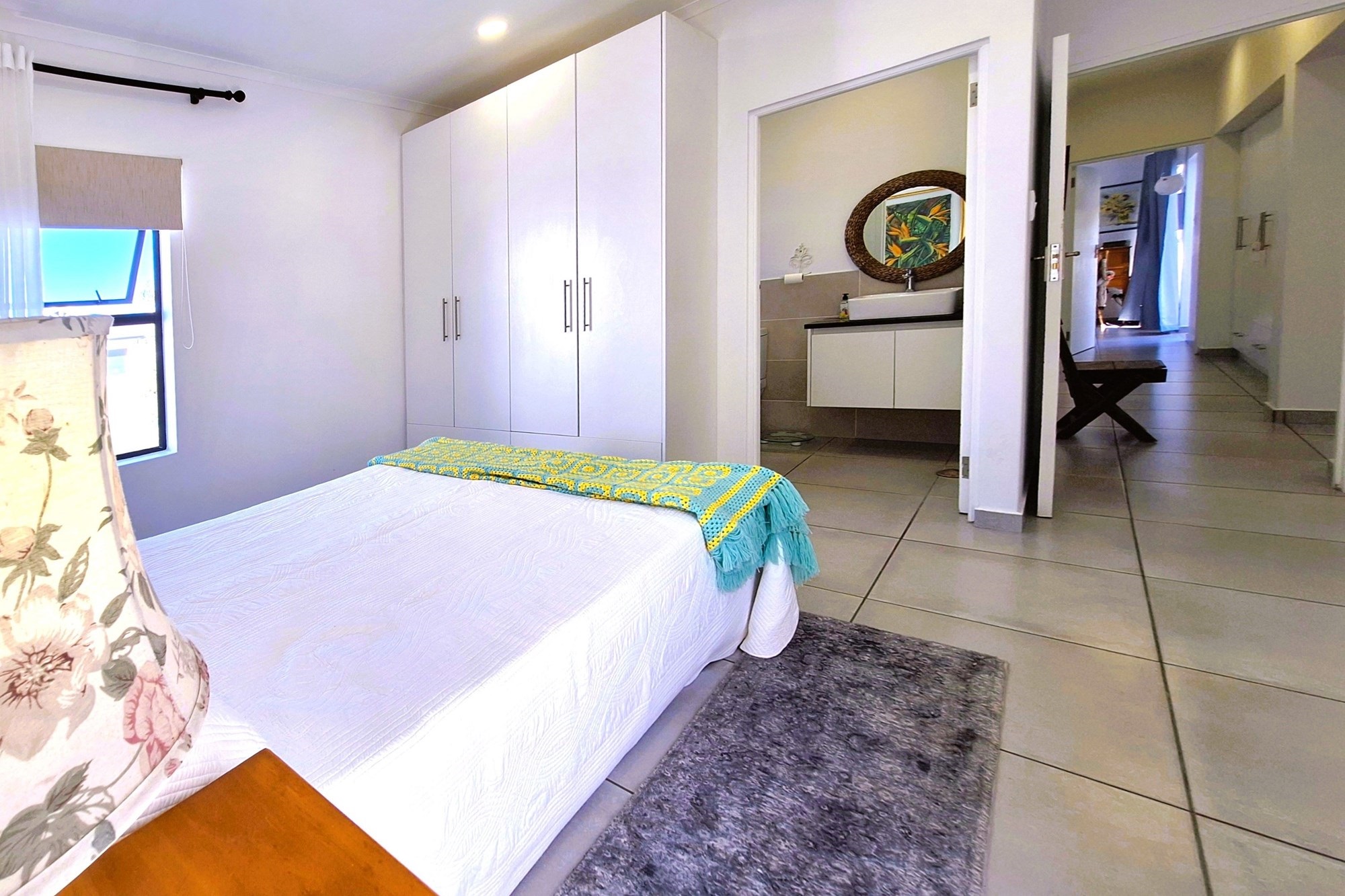 Ascend to the upper level to discover a versatile loft area, a flexible space that can adapt to your every need. Sliding doors lead to a private balcony, where a built-in braai and panoramic sea views create an island-like atmosphere, ideal for relaxing with sunset sundowners.