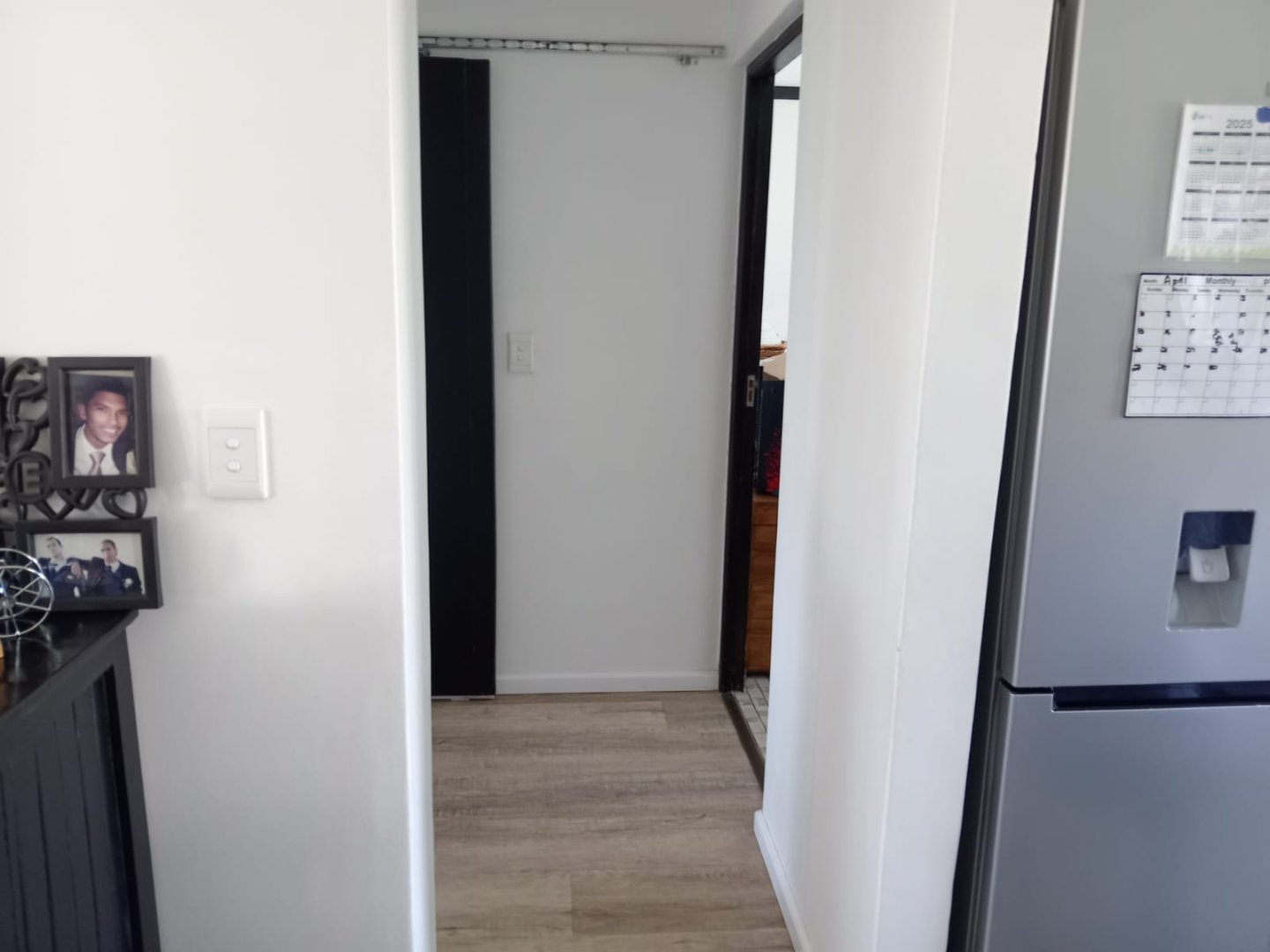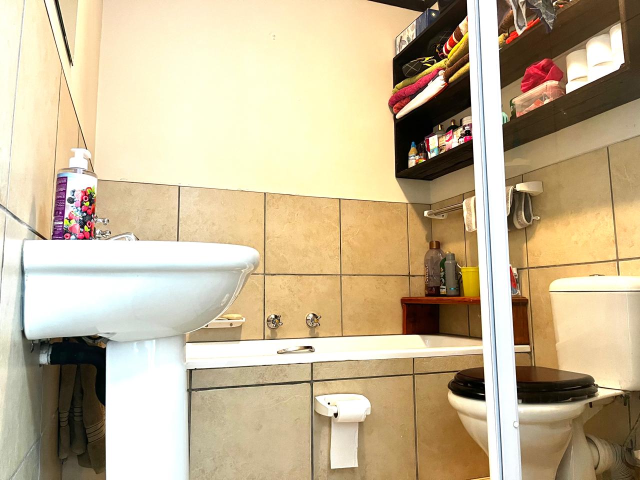 Both bedrooms are generously sized with built-in wardrobes. The bathroom is neat and functional, with a bath and shower combo.