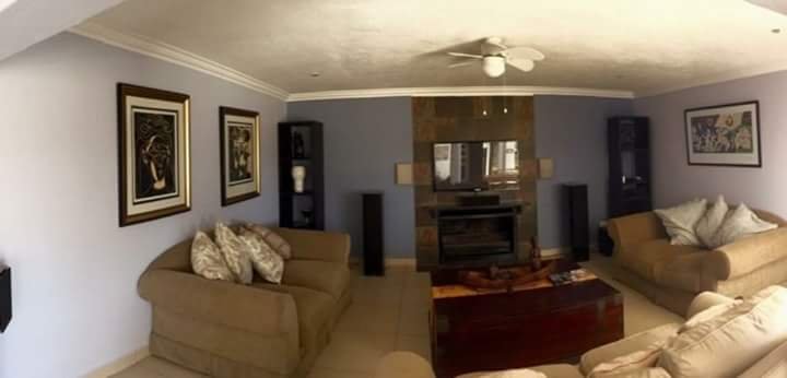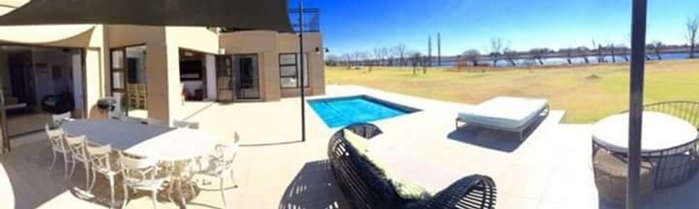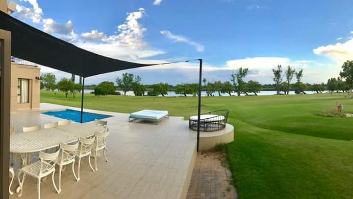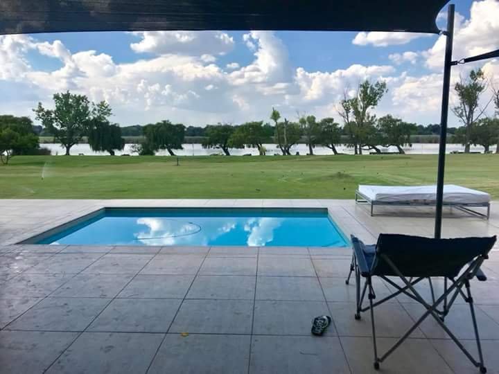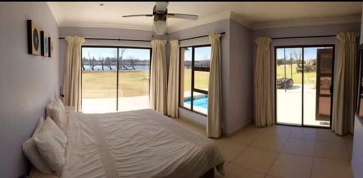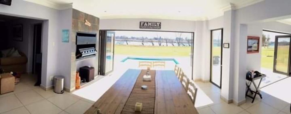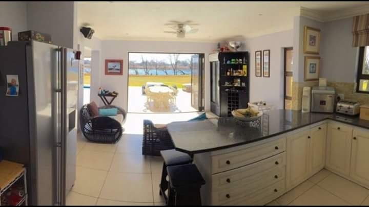 This home boost lush gardens, a sparkling salt swimming pool. Lovely big patio's overlooking the Vaal river as well as 24 hour security.