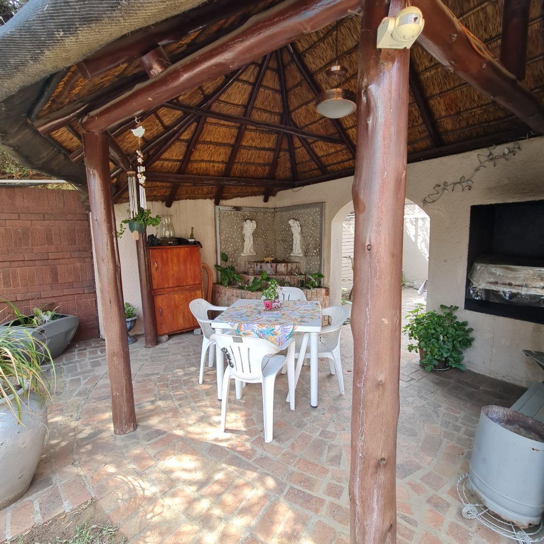outside you get a patio with braai area, sparkling heated swimming pool. Boma, solar geyser with booster.