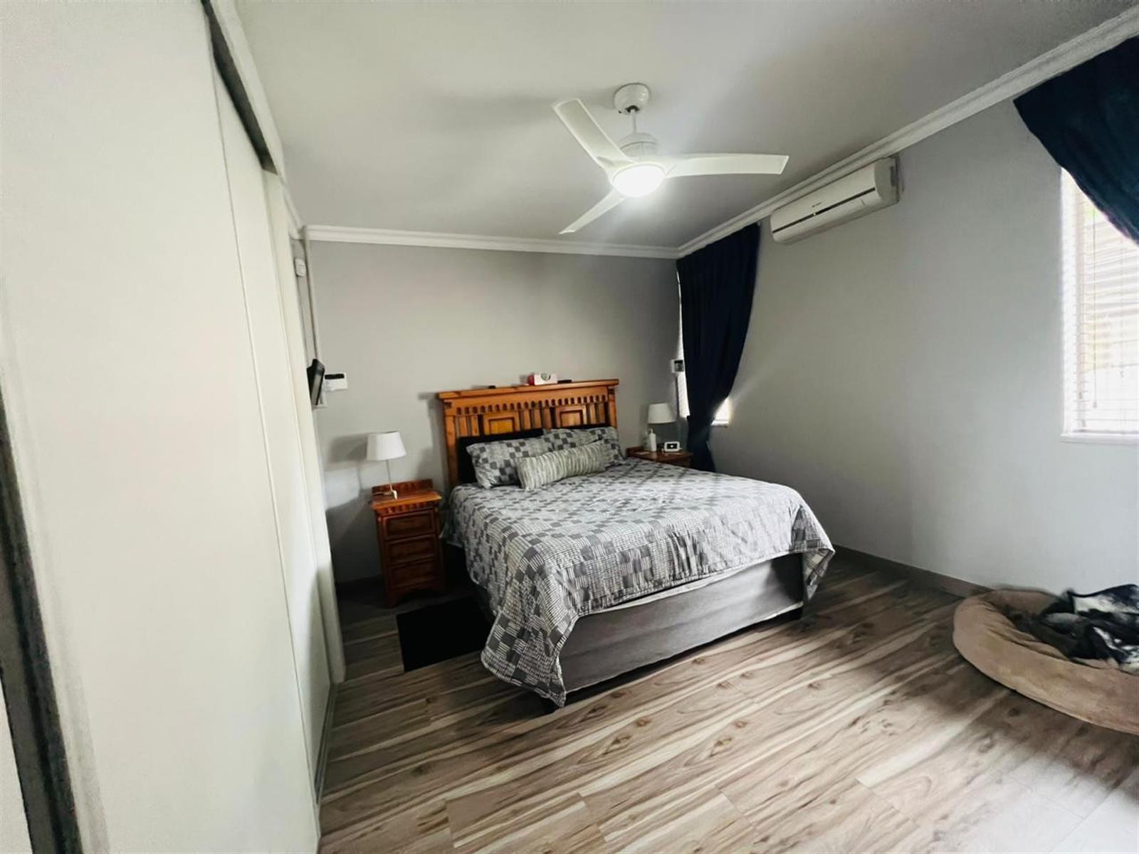 Energy efficiency is prioritized with solar panels and a backup battery, while fast internet ensures connectivity for work or leisure. Additional features include built-in cupboards, laminated floors, burglar bars, and curtain rails throughout the home.