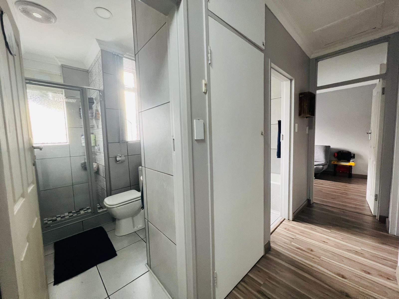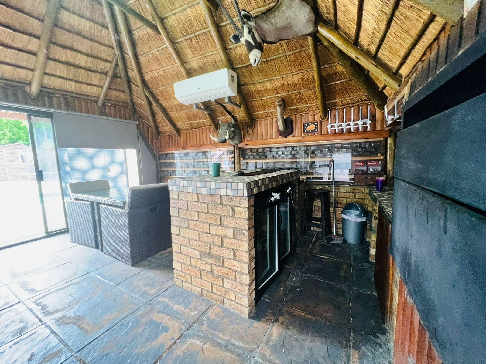 Step outside to find a beautifully maintained garden, enclosed within a totally fenced yard, ensuring safety for children and pets. The outdoor features include a spacious patio, a lapa for outdoor gatherings, and a pool shed, perfect for storing pool equipment. The property also boasts handy features like an outside toilet, storeroom, and water tank for added convenience.