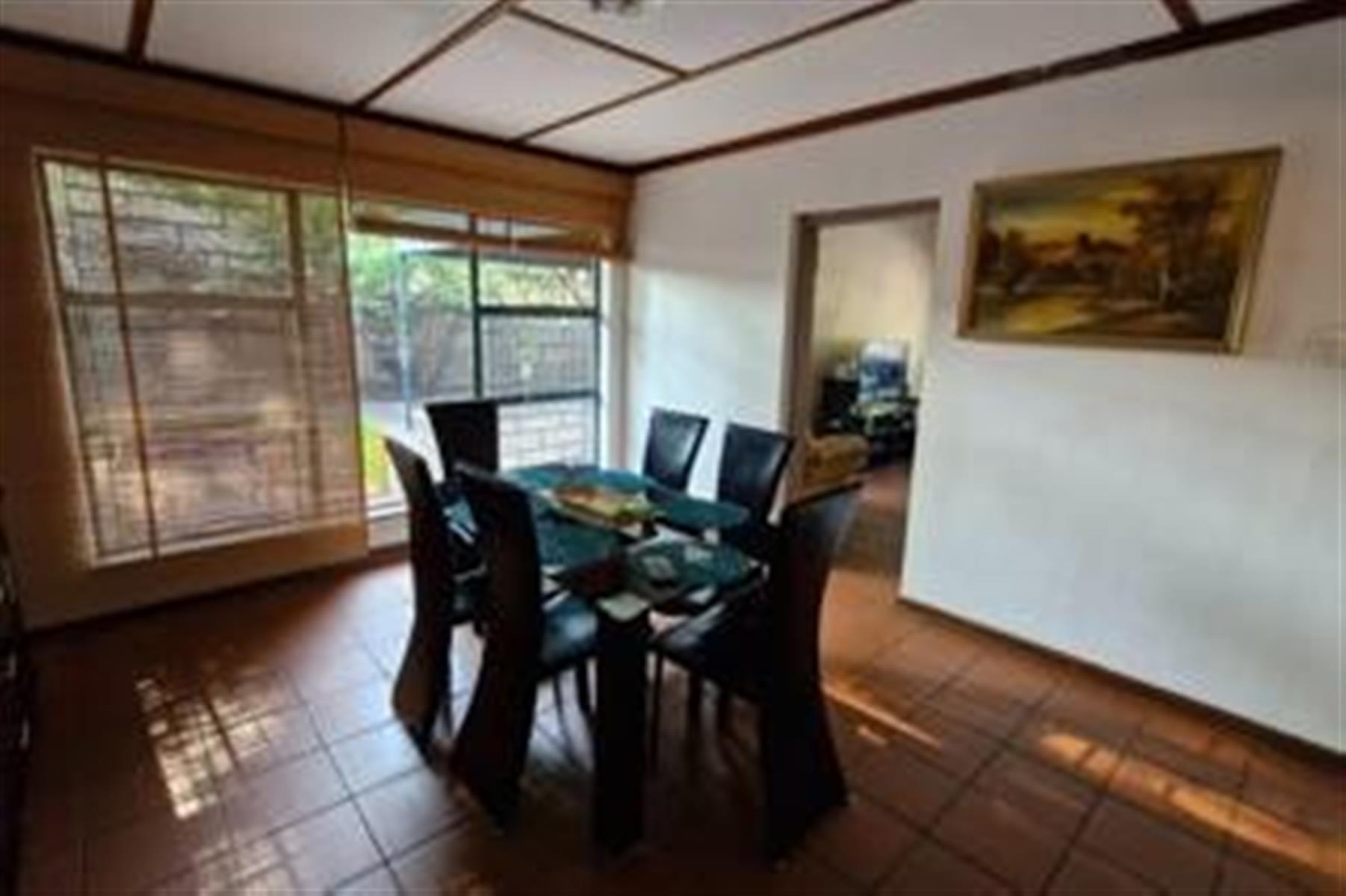 The heart of the home is the inviting kitchen, complete with a scullery for additional functionality. Adjacent to the kitchen, you`ll find two dining rooms, perfect for hosting family meals or entertaining guests. The lounge and TV room provide comfortable spaces for relaxation, while the air conditioning ensures a cool atmosphere during warm summer months.