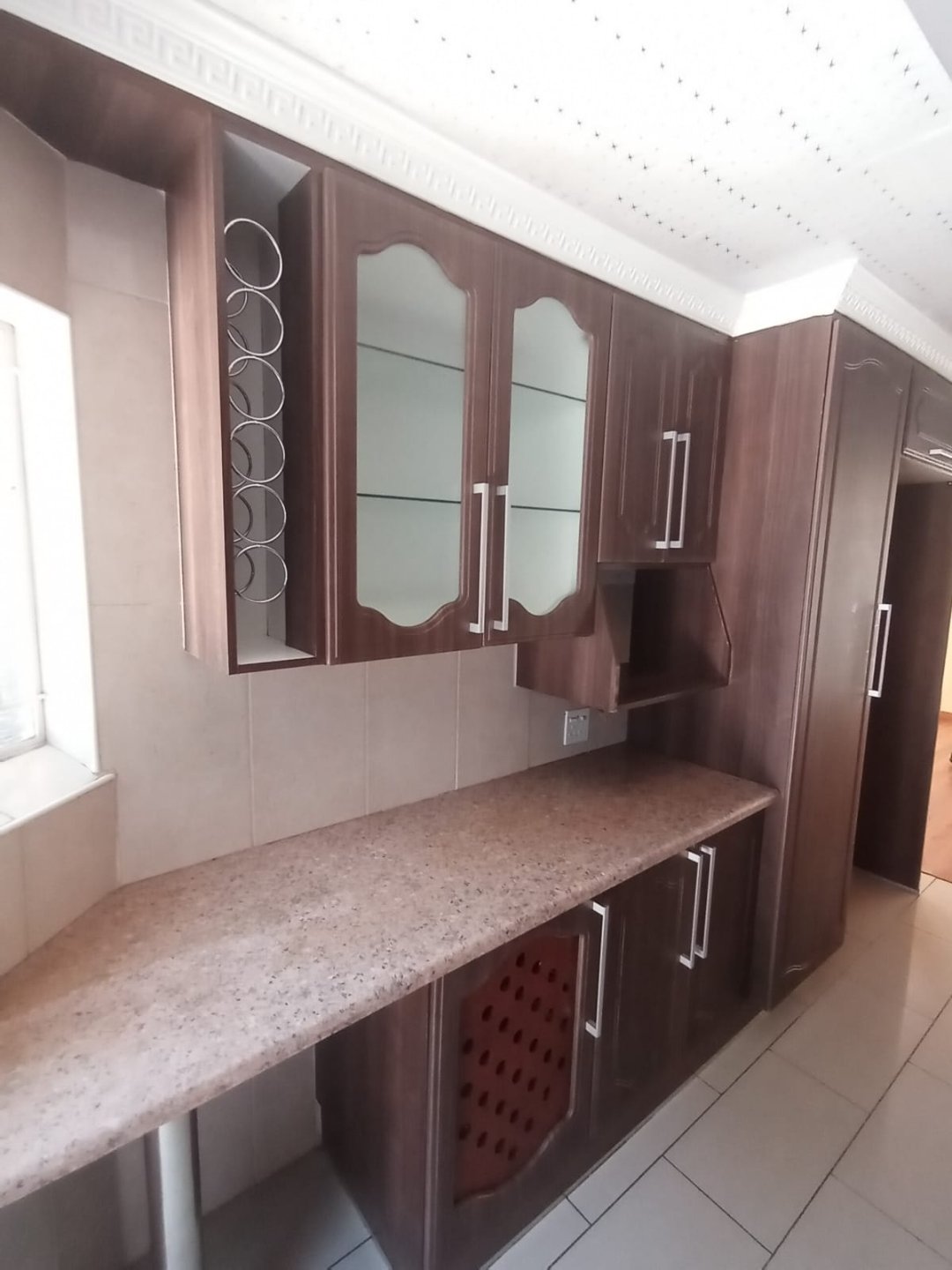 Beautiful kitchen with wooden cupboards, semi open plan with the living areas.