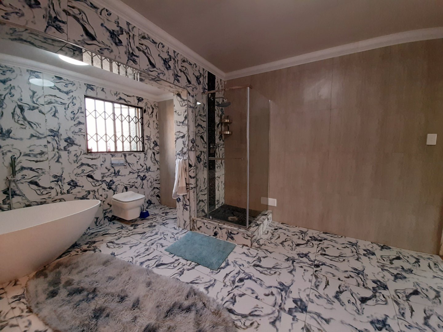 Five good size bedrooms, 4 modern bathrooms form which 2 is en-suite. House is safely secured with an alarm system, electric fencing and cctv cameras.
