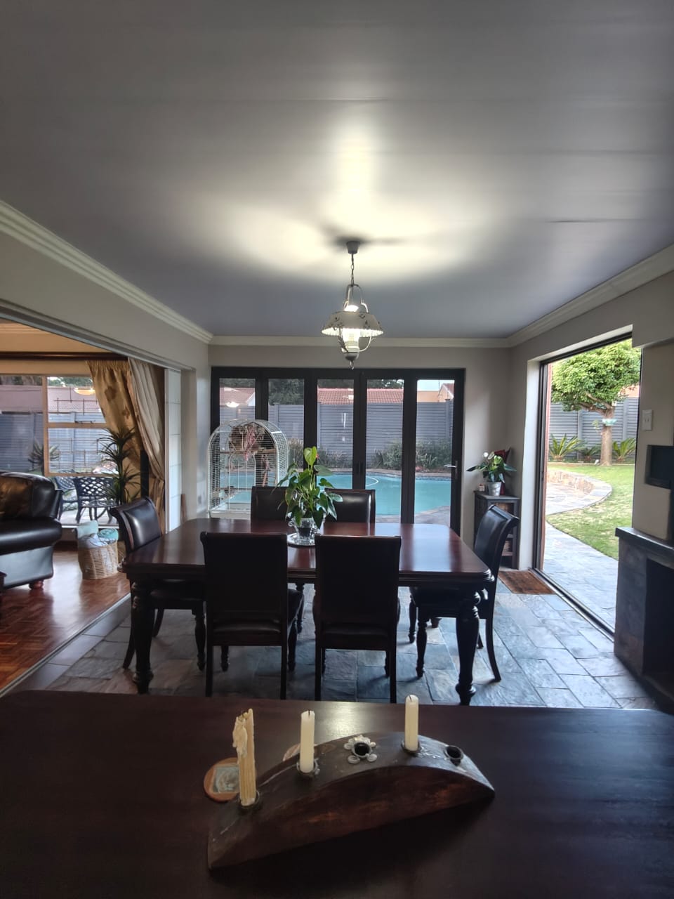living areas, an entertainment room with an indoor braai area, a lounge, lovely spacious kitchen with Caesar stone tops, gas stove and dining area, this property offers plenty of room for