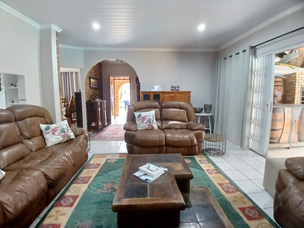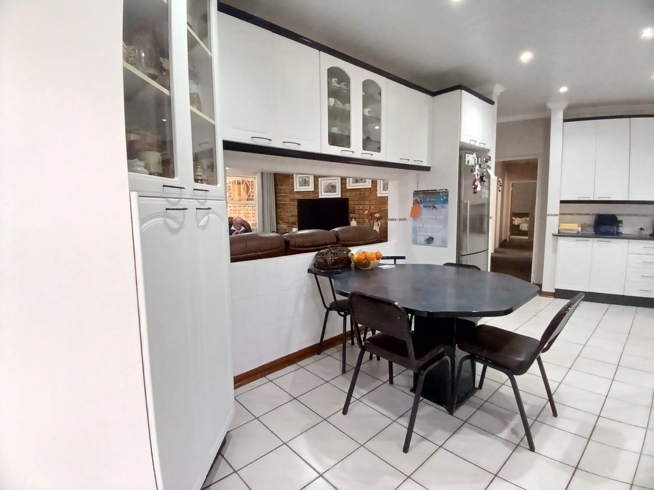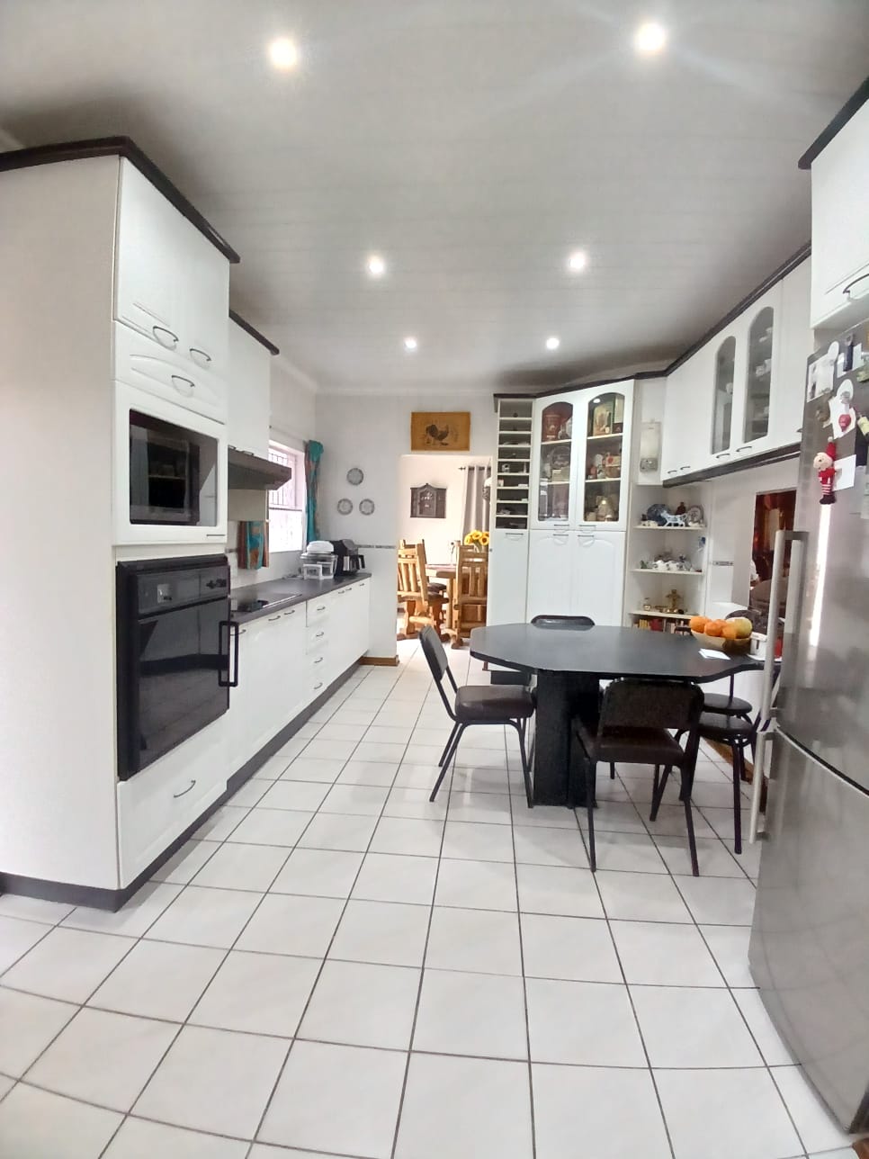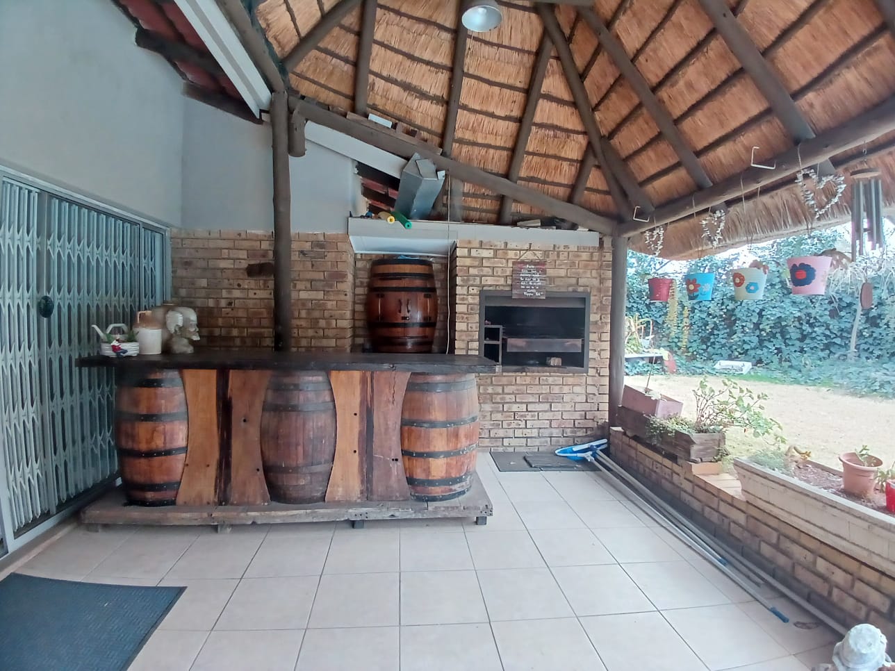 Three living areas, lounge, dining room, and tv room. Beautiful kitchen with ample cupboard space, a breakfast nook, scullery, and a laundry. The TV room is flowing out to the entertainment area consisting of a lapa with braai and a bar, as well as the heated, sparkling swimming pool.