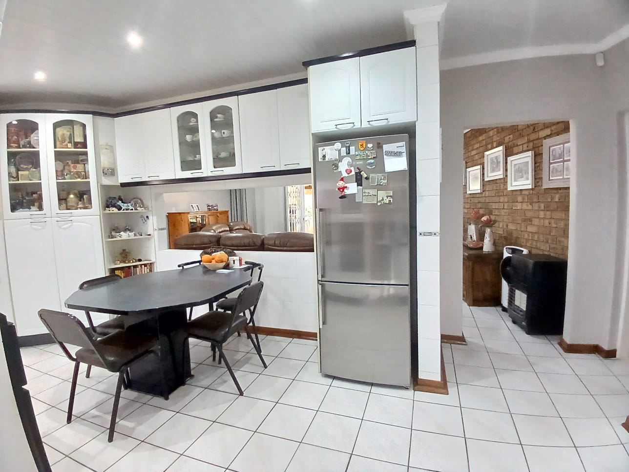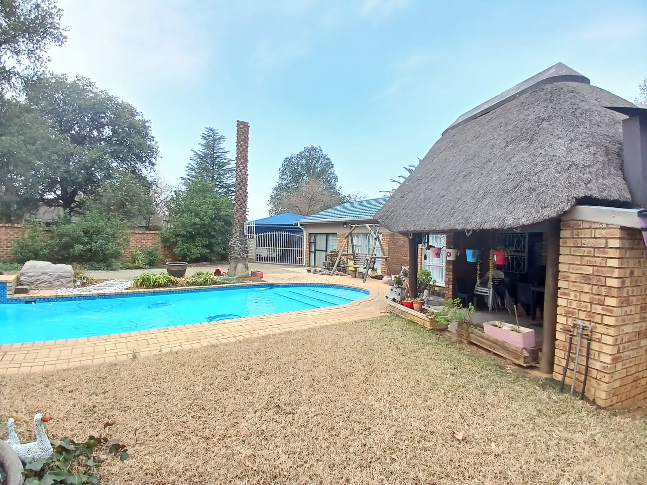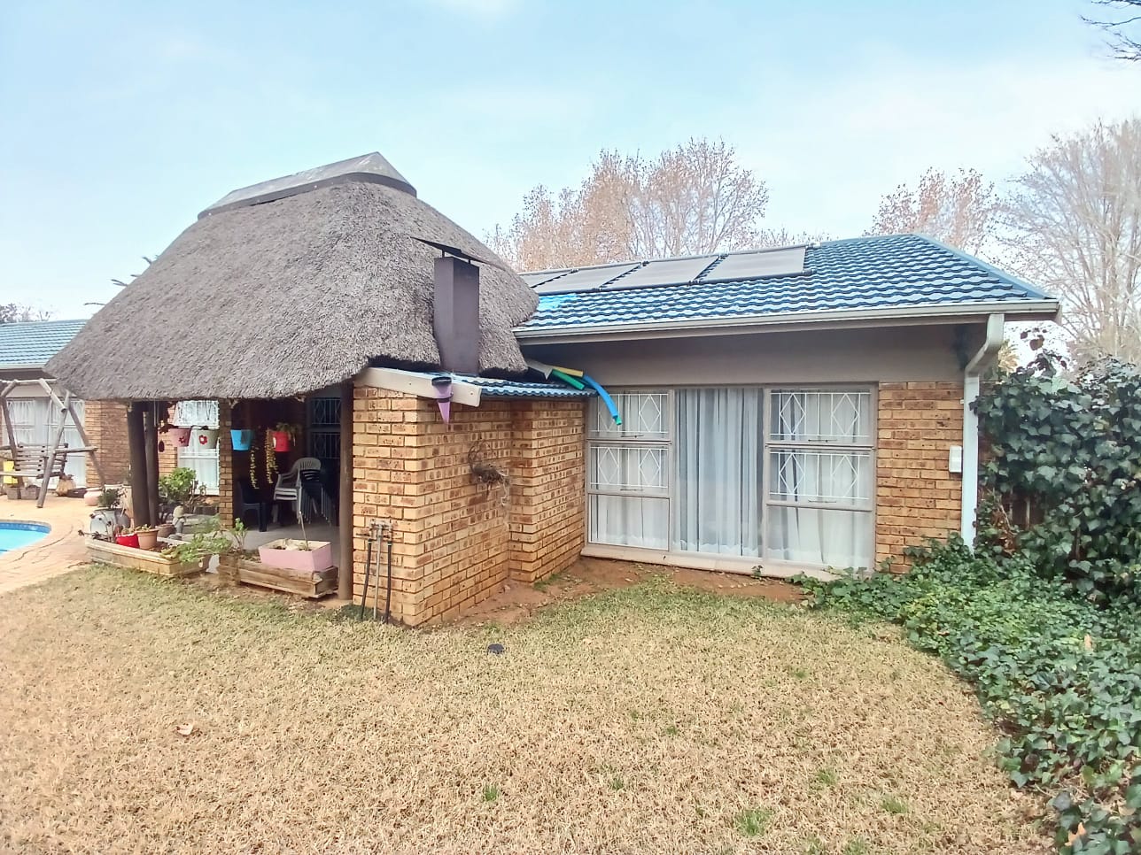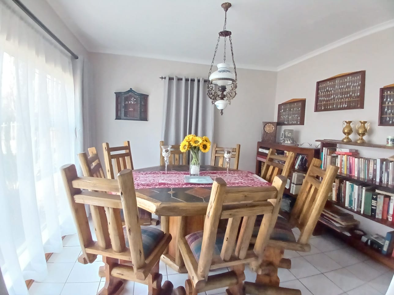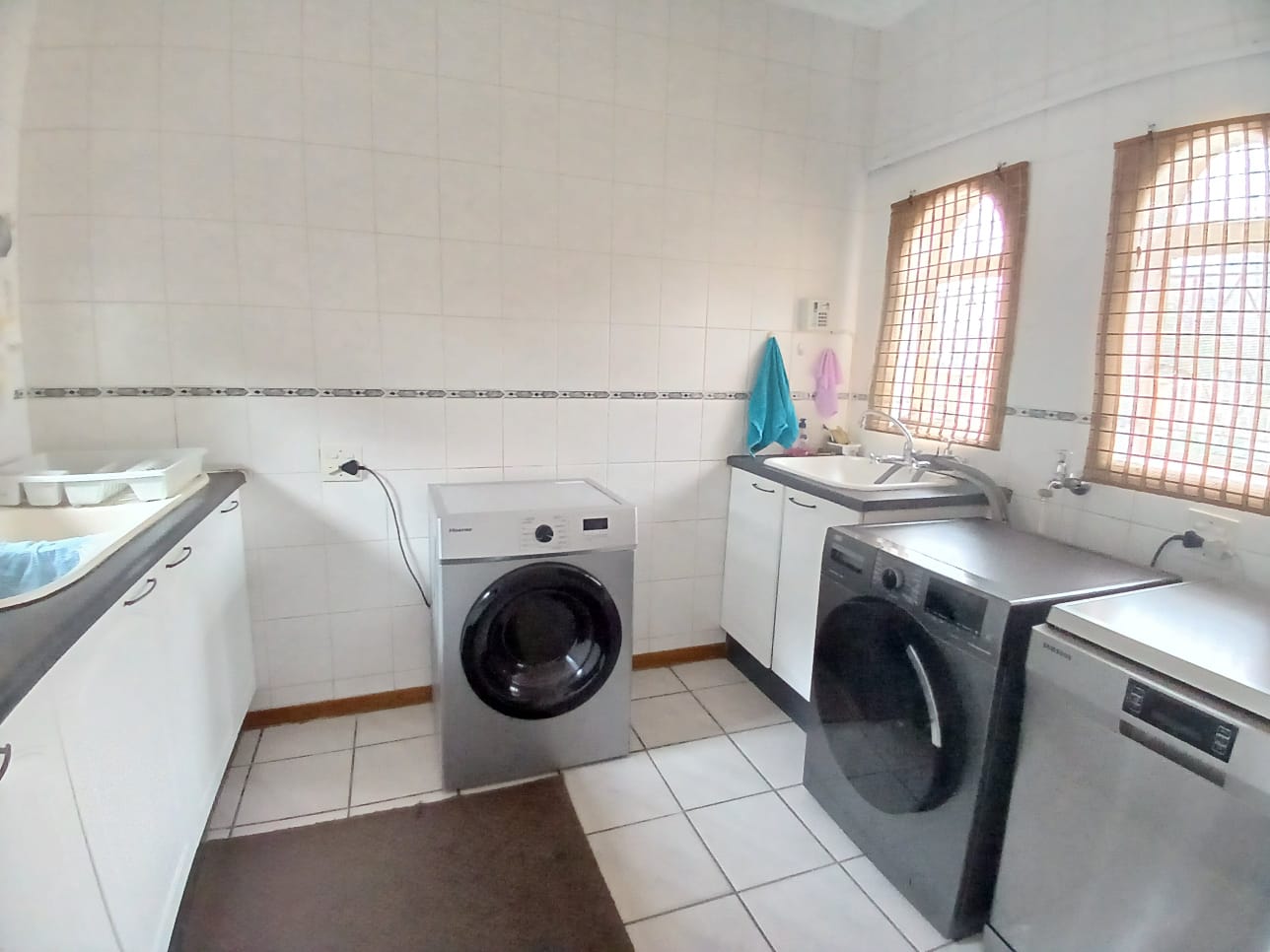 Three living areas, lounge, dining room, and tv room. Beautiful kitchen with ample cupboard space, a breakfast nook, scullery, and a laundry. The TV room is flowing out to the entertainment area consisting of a lapa with braai and a bar, as well as the heated, sparkling swimming pool.
