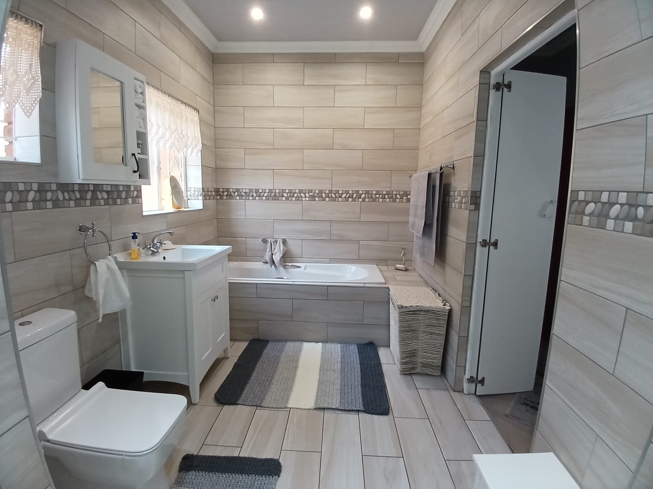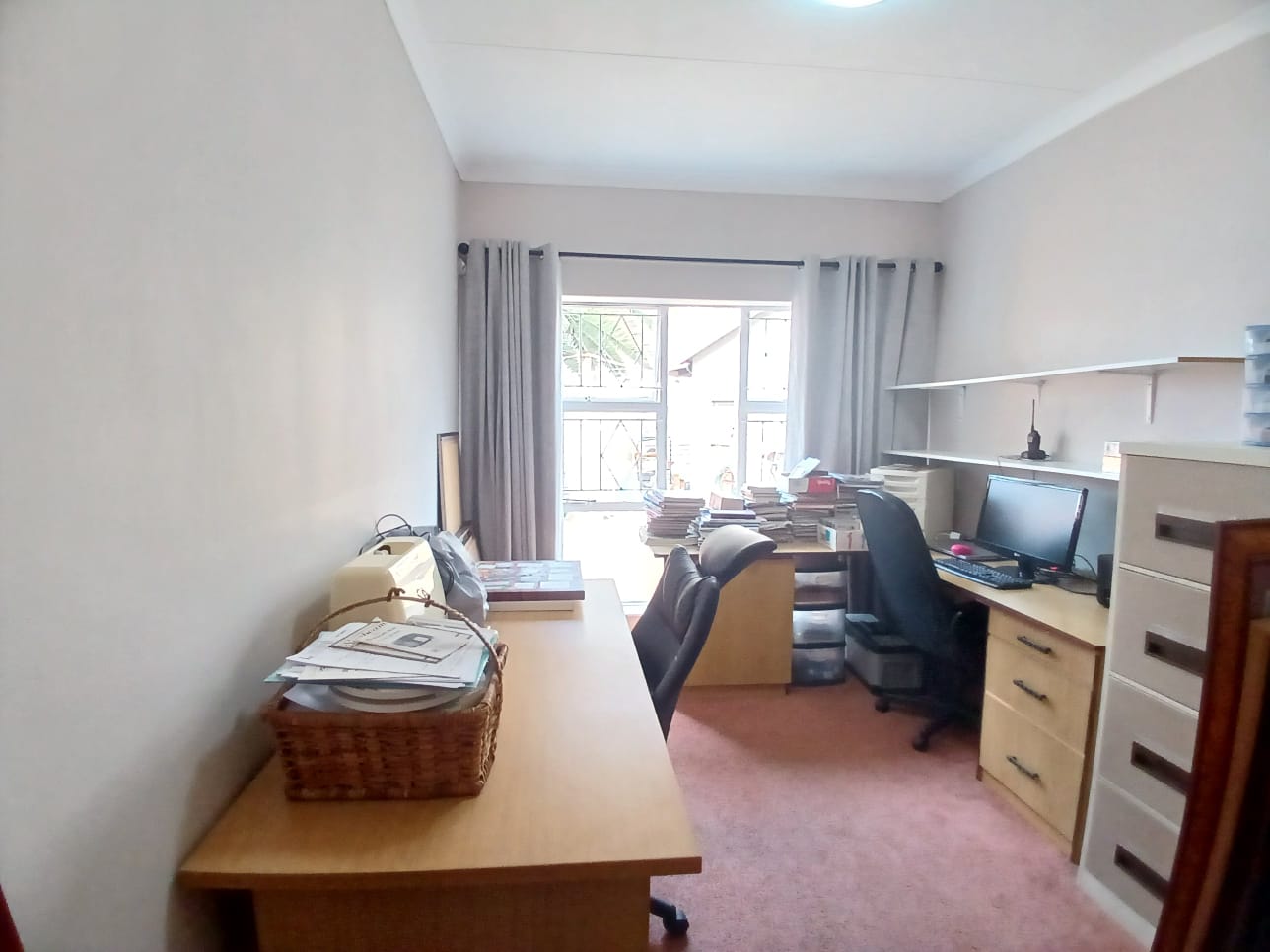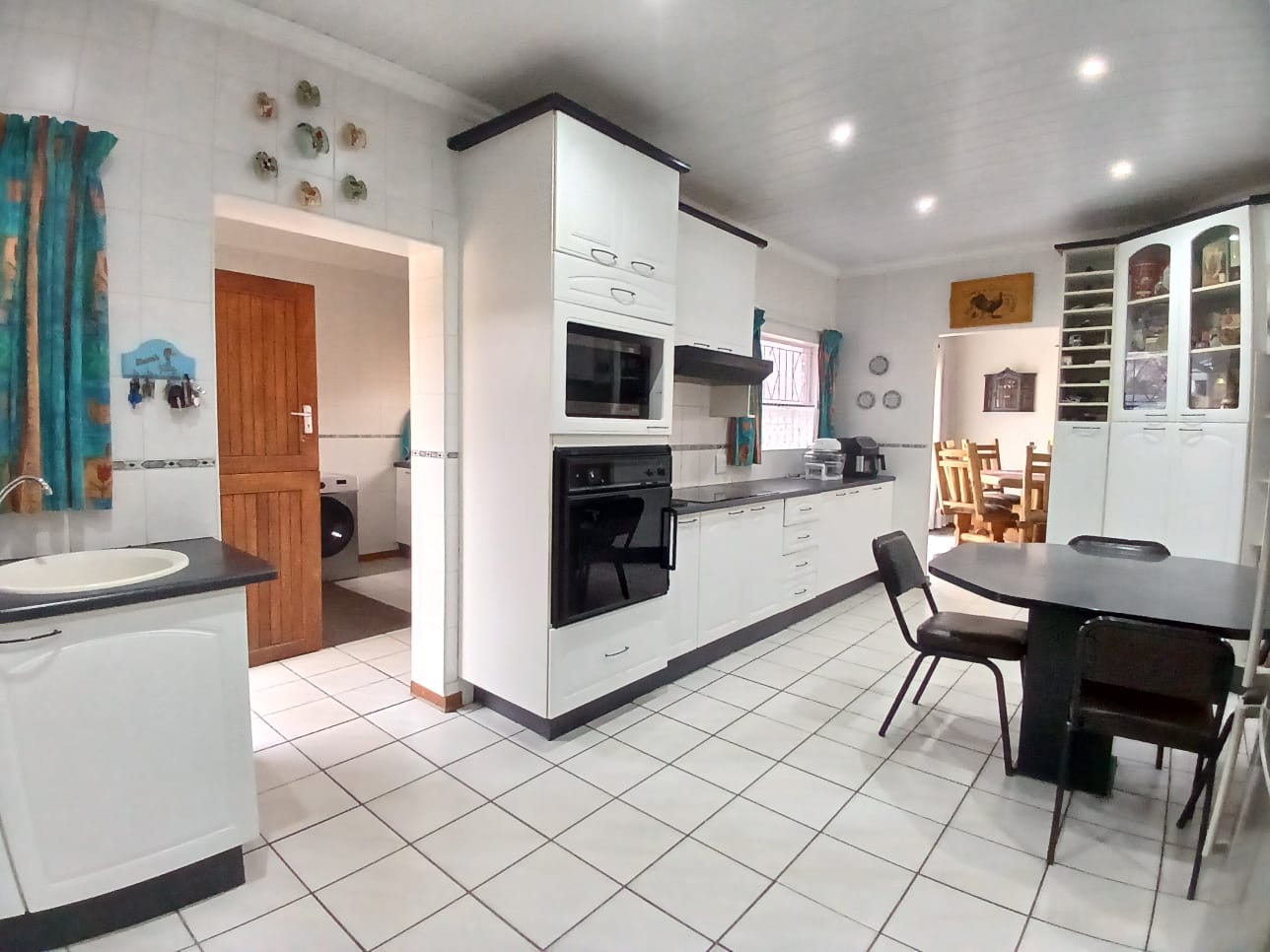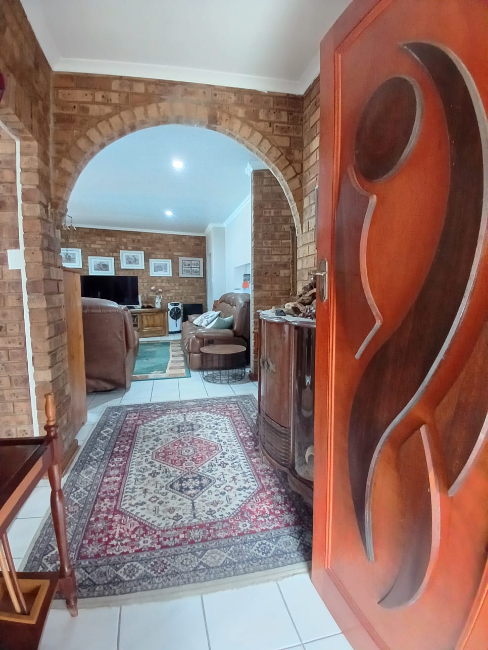 Three living areas, lounge, dining room, and tv room. Beautiful kitchen with ample cupboard space, a breakfast nook, scullery, and a laundry. The TV room is flowing out to the entertainment area consisting of a lapa with braai and a bar, as well as the heated, sparkling swimming pool.