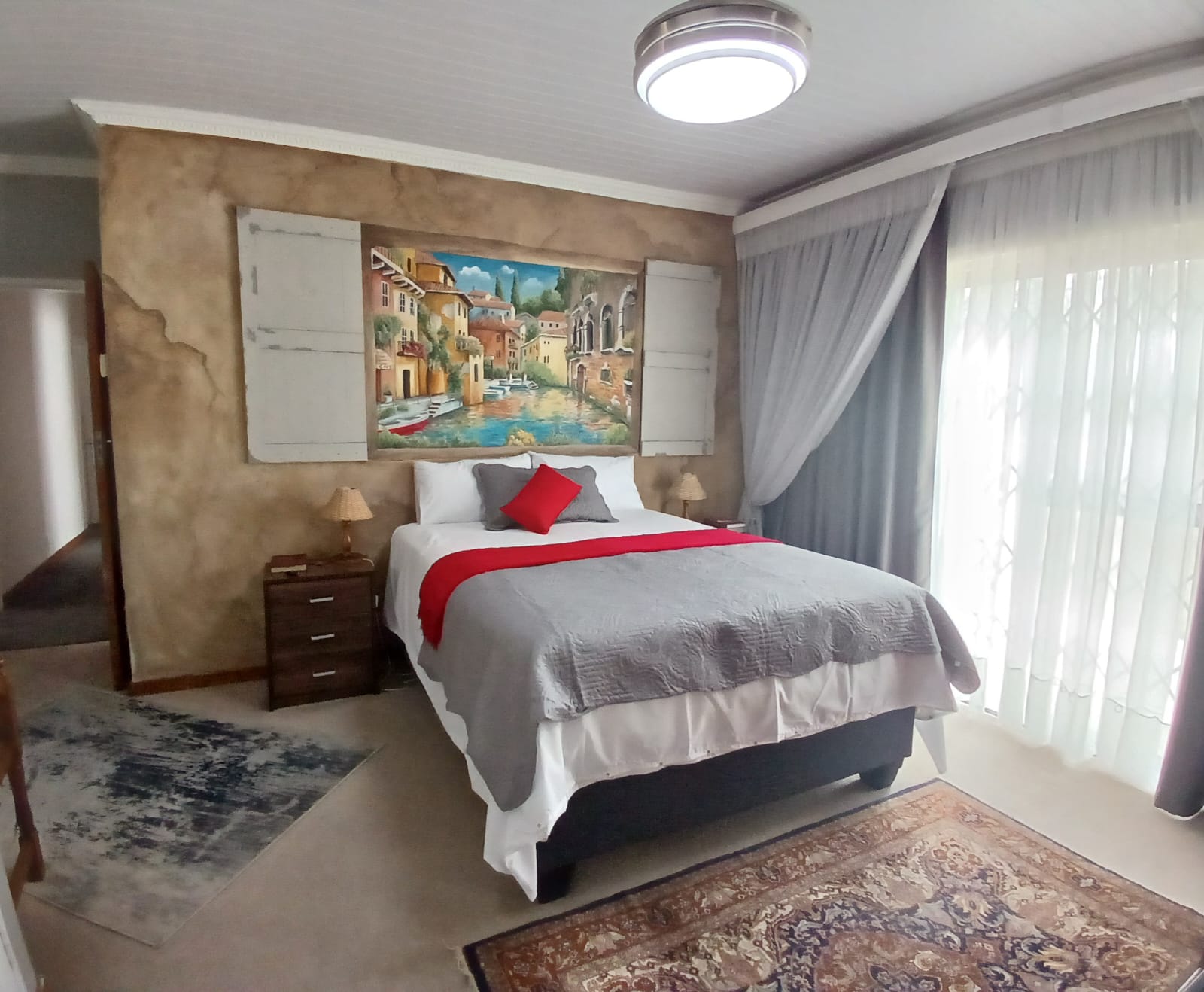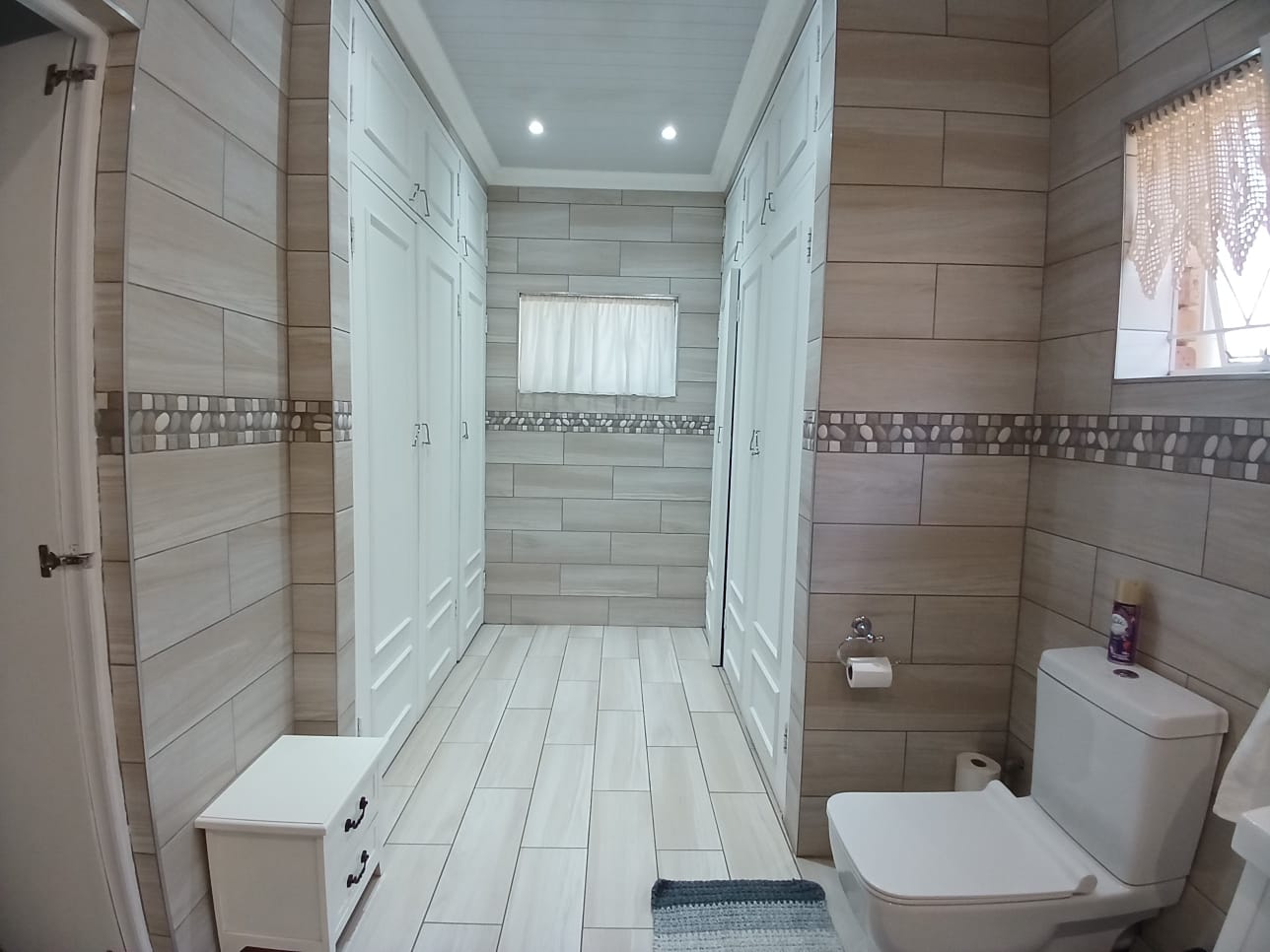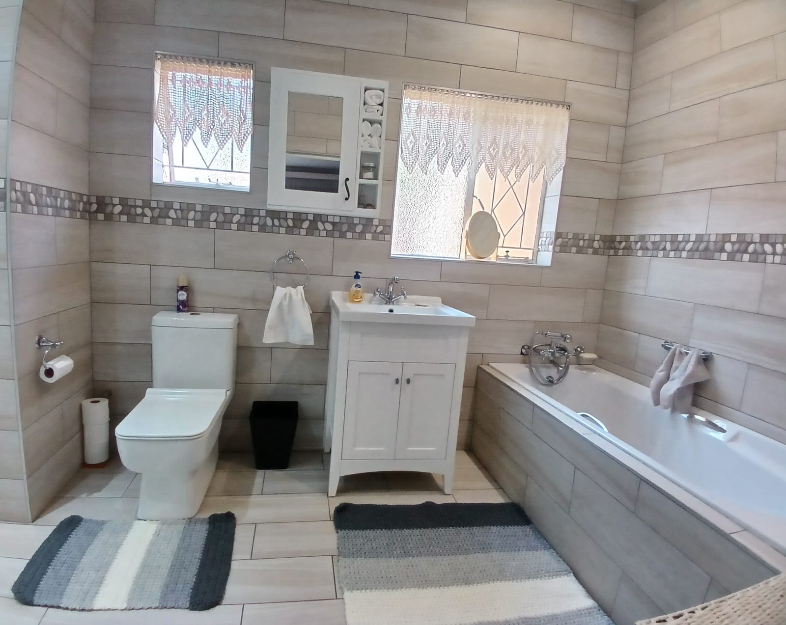 Four good size bedrooms, all with built-in closets. Two modern bathrooms from which one is en-suite, with extra closet space. The property is safe with an alarm system inside and outside.