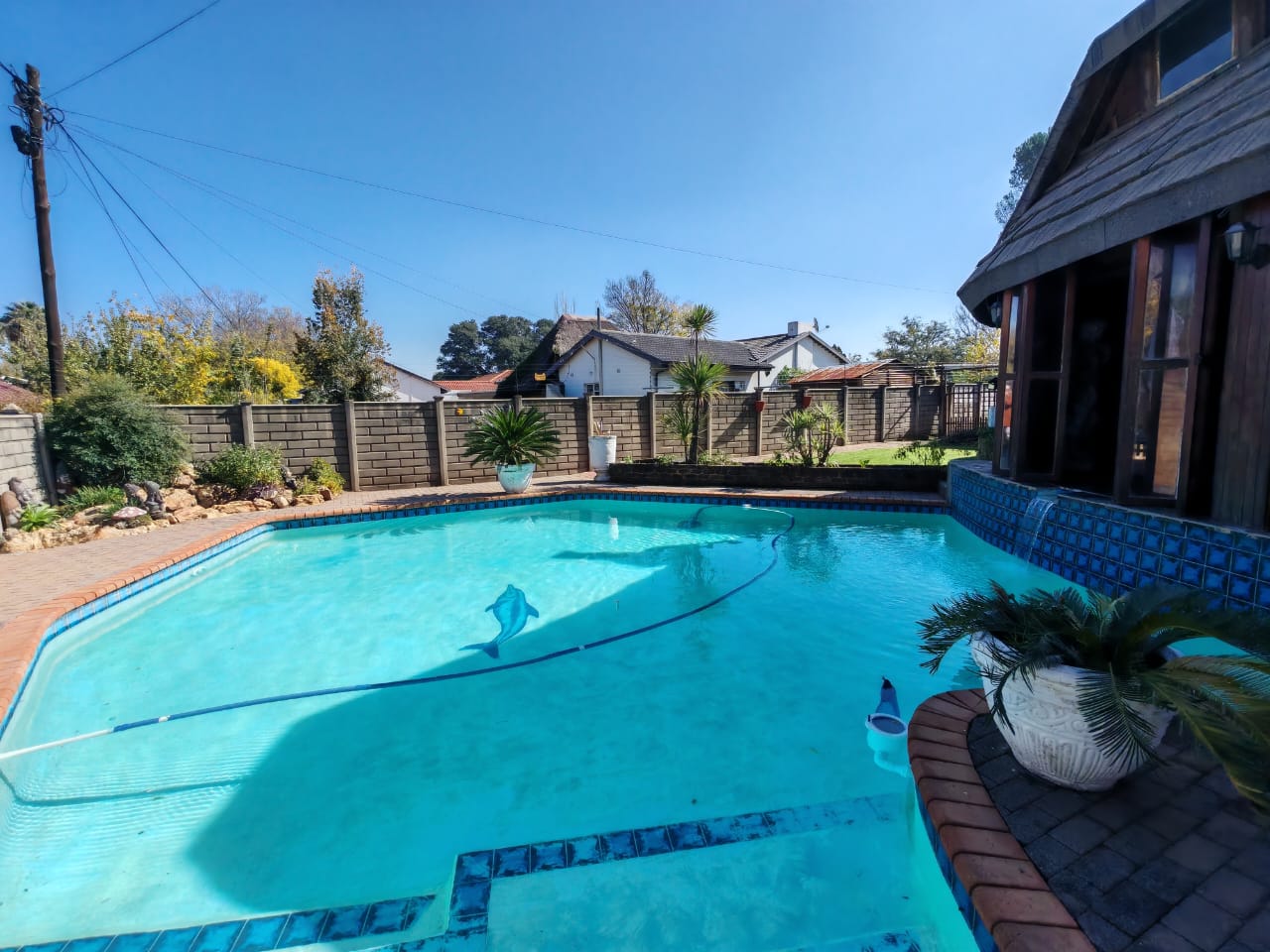 . Impressive Lapa with durable Harvey tiles roofing, built-in bar braai area and relaxing jacuzzi.