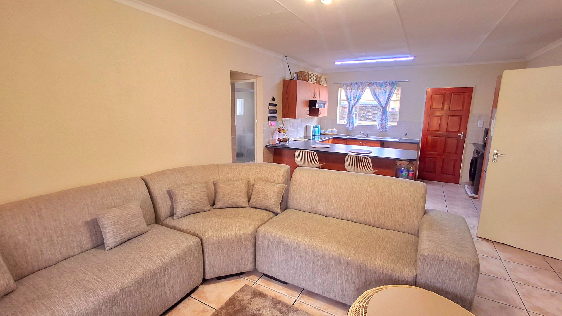 Open-Plan Lounge & Kitchen with ample cupboard space and plumbing for a washing machine
