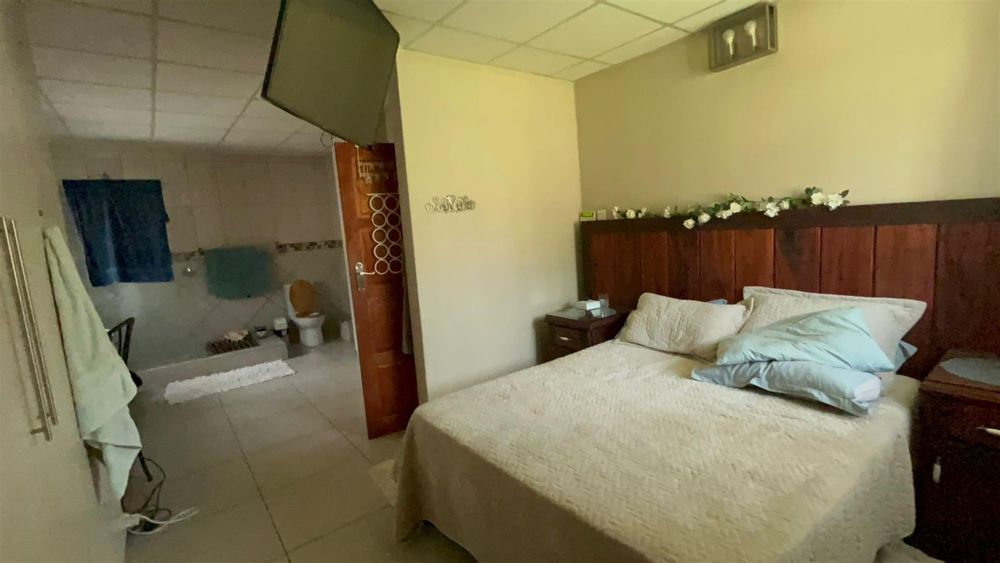 Additional features include three garages with automated doors, ensuring secure and easy access. The property is designed with safety in mind, featuring an alarm system, armed response, electric fencing, and outdoor beams for enhanced security. With a borehole and solar heating system, this home is both practical and eco-friendly, offering low utility costs and sustainable living.