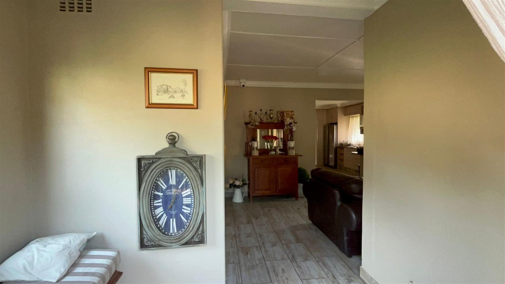 Enjoy peace of mind with a comprehensive security system, including CCTV and burglar bars. The property is totally fenced, featuring a brick wall and an electric gate, ensuring privacy and safety. The tiled floors, built-in cupboards, and curtain rails throughout the home add to its charm and functionality.