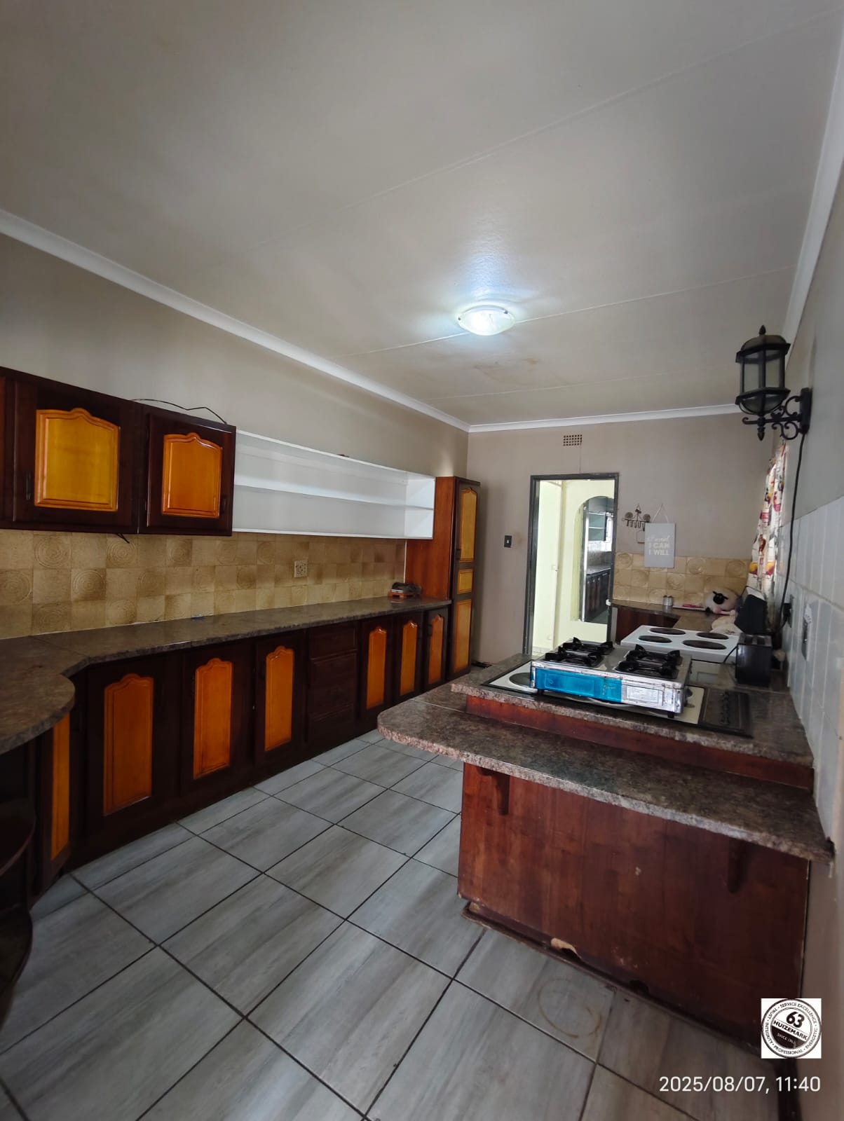 A lapa with built in braai and a big yard with lots of potential.
