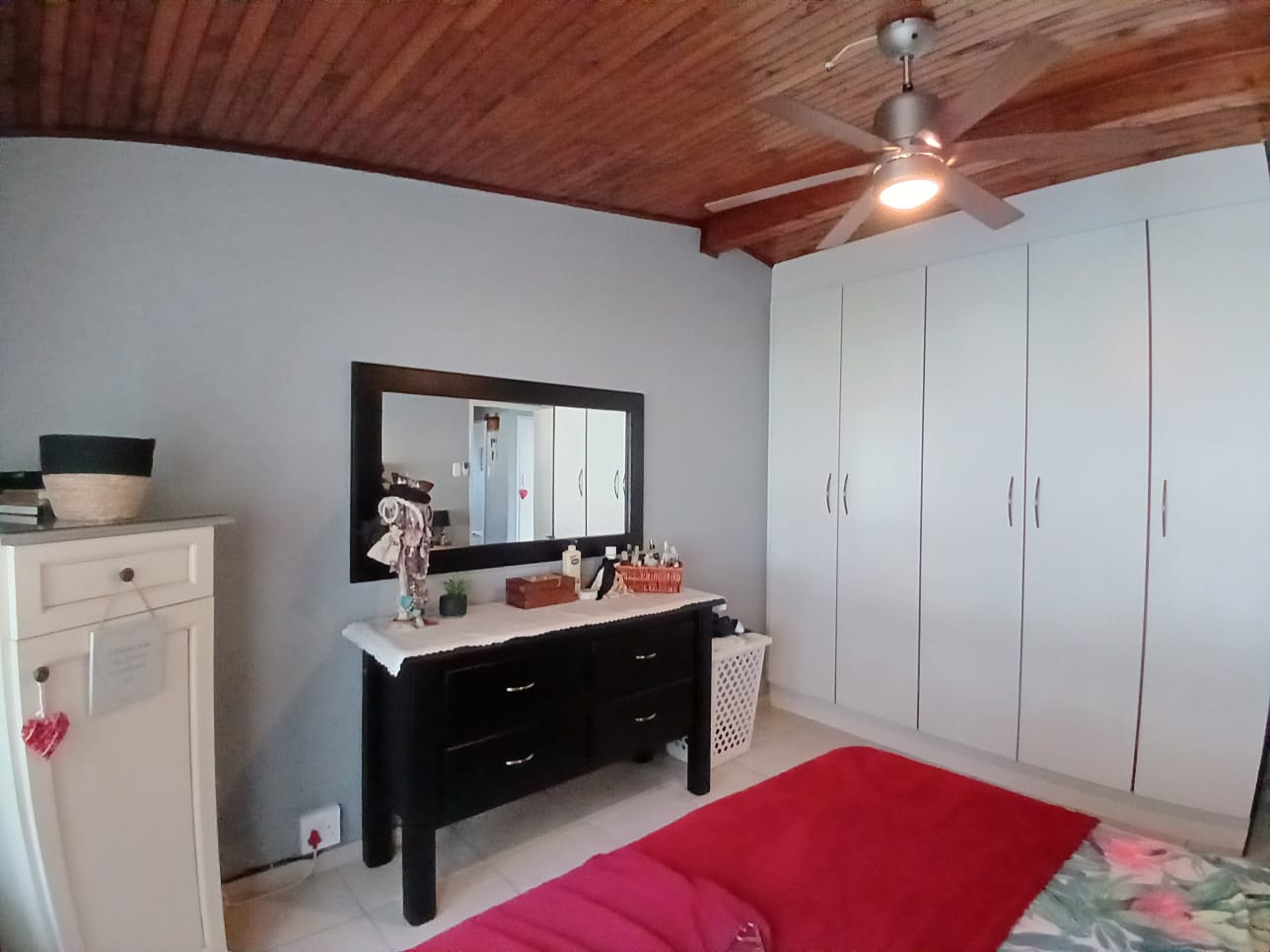 3 Spacious bedrooms, each with built-in closets. Single bathroom with a separate toilet. Gas plus electric geyser.