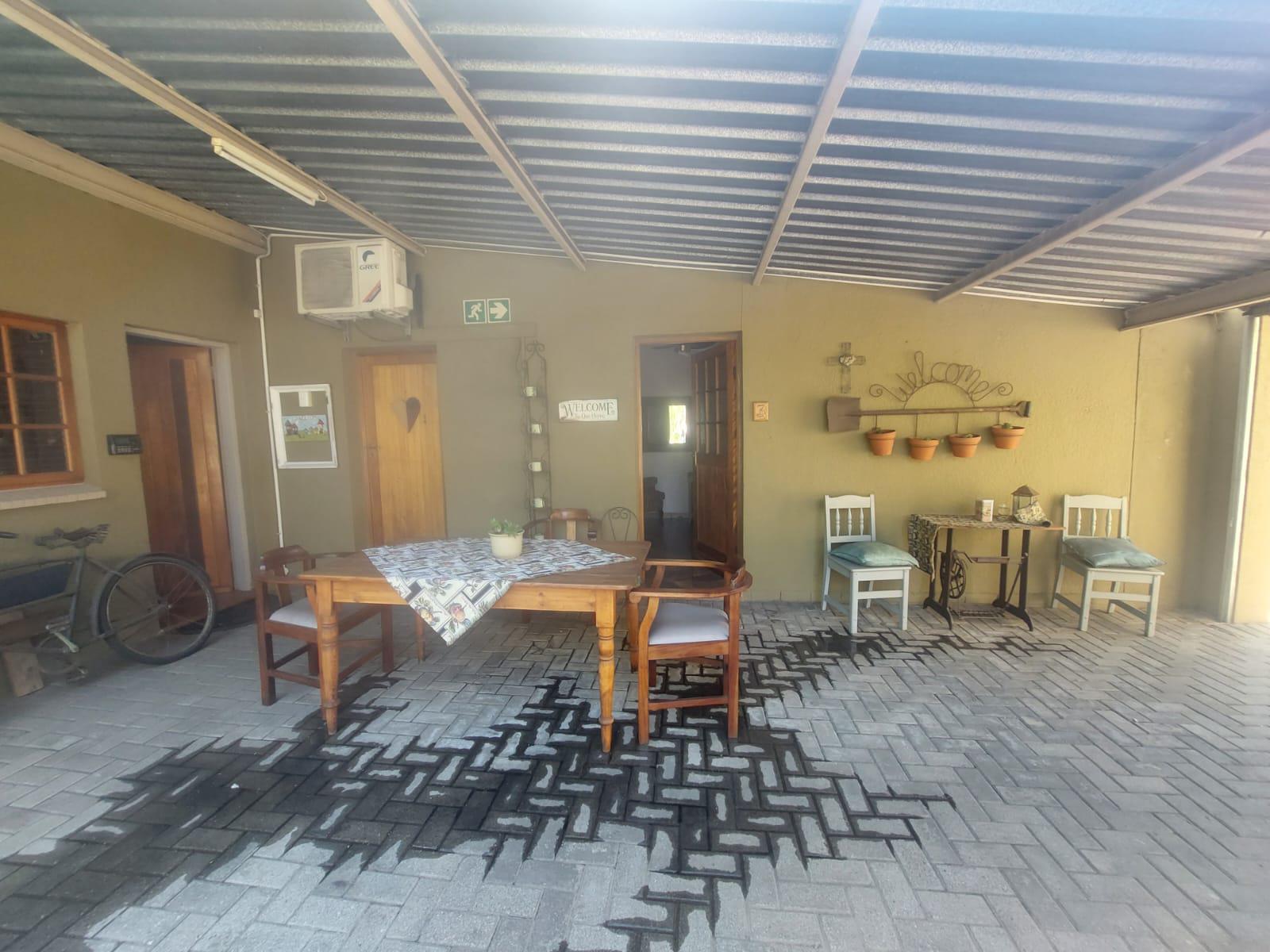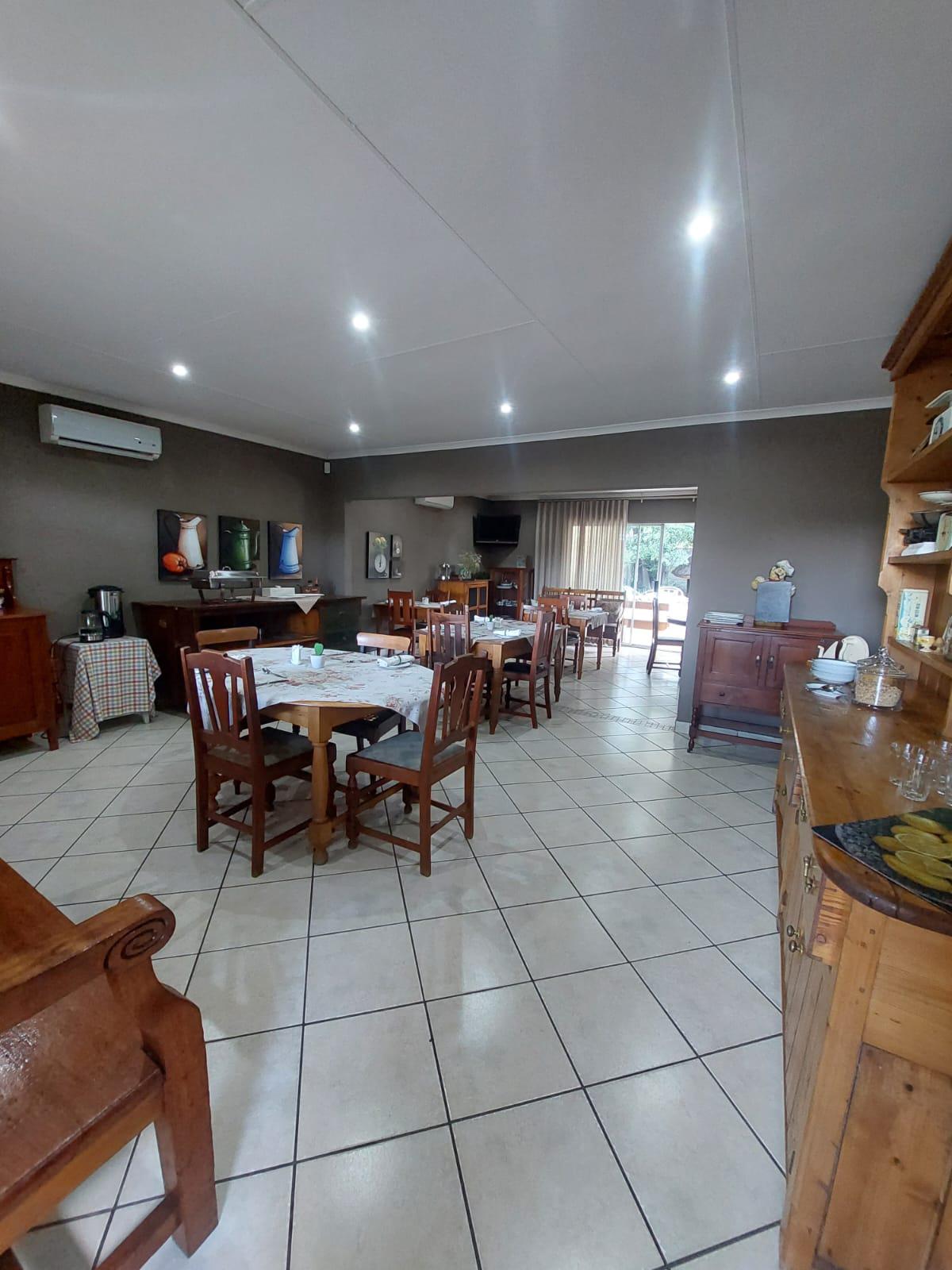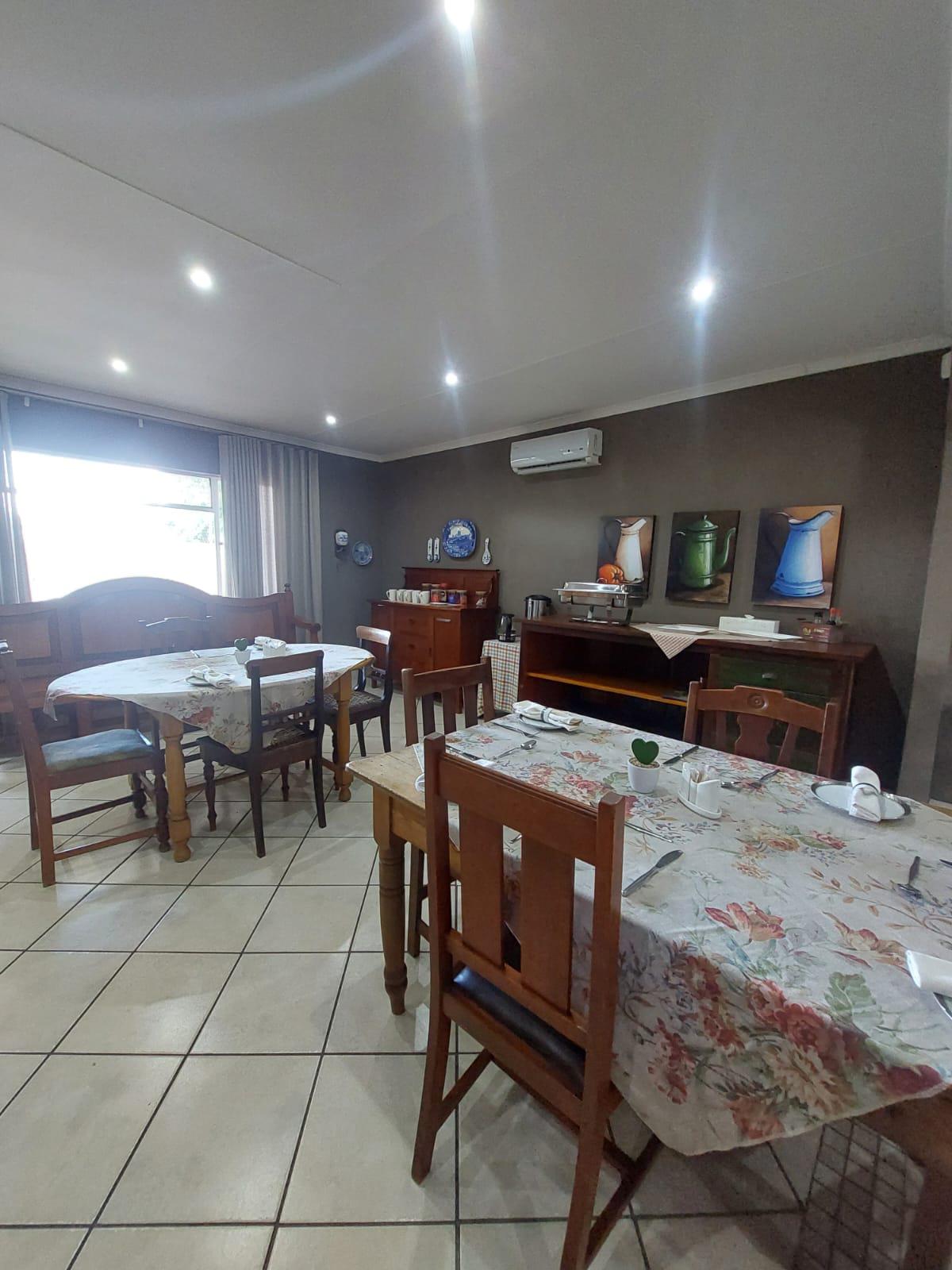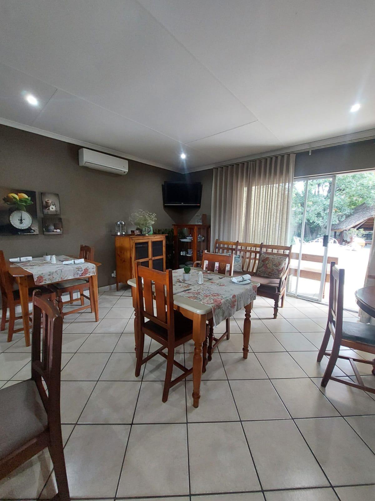 The property features two separate kitchens, allowing for efficient meal preparation and catering for guests. The dining area is spacious, providing ample space for guests to enjoy their meals together. For those looking to relax and enjoy the outdoors, a lapa with an outdoor braai area is available.